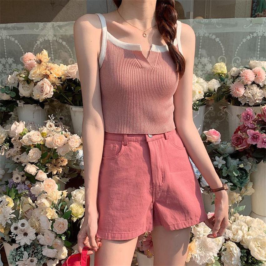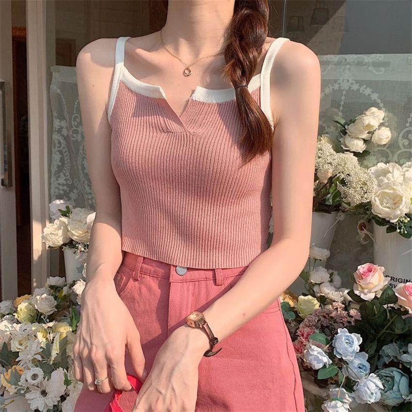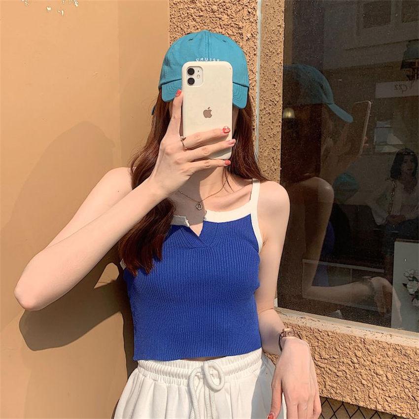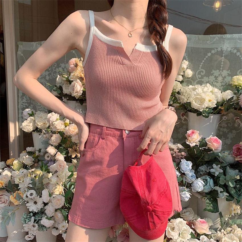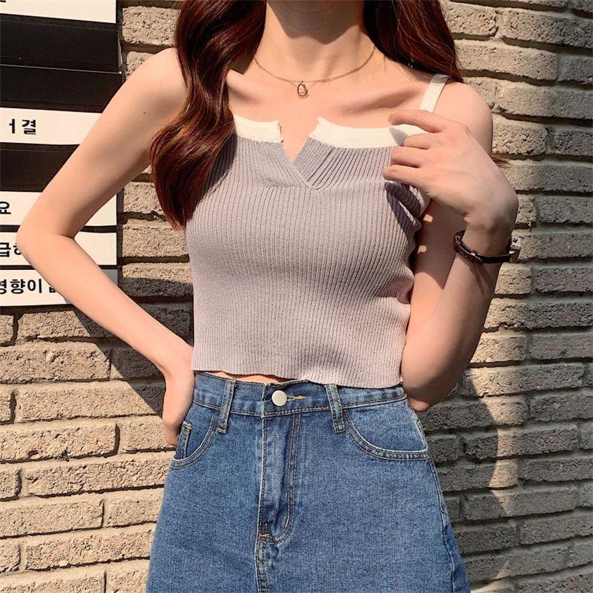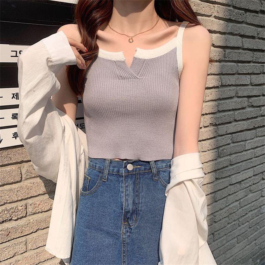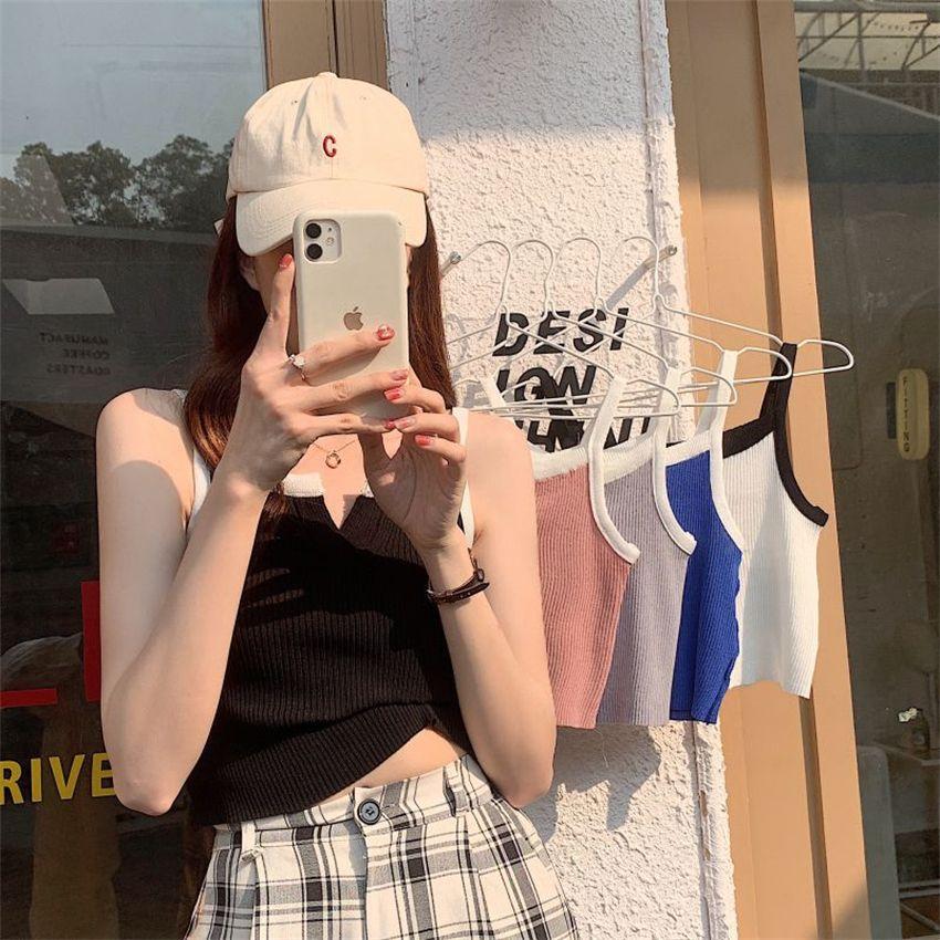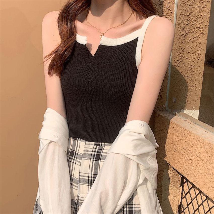 Camisola de punto de verano con diseño de nicho, sin mangas, corta, adelgazante, estilo coreano