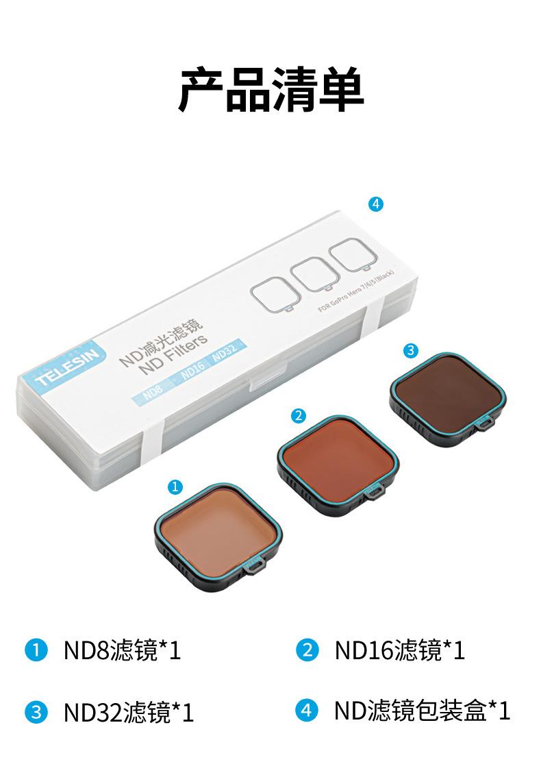 3. El conjunto incluye filtros ND8/16/32 para satisfacer las necesidades de uso en tres condiciones de luz diferentes, haciendo que las fotos sean más vívidas.