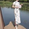 Cheongsam modificado de estilo chino europeo para mujer, nuevo vestido elegante de estilo nacional ligero de primavera y verano con jacquard amarillo ganso