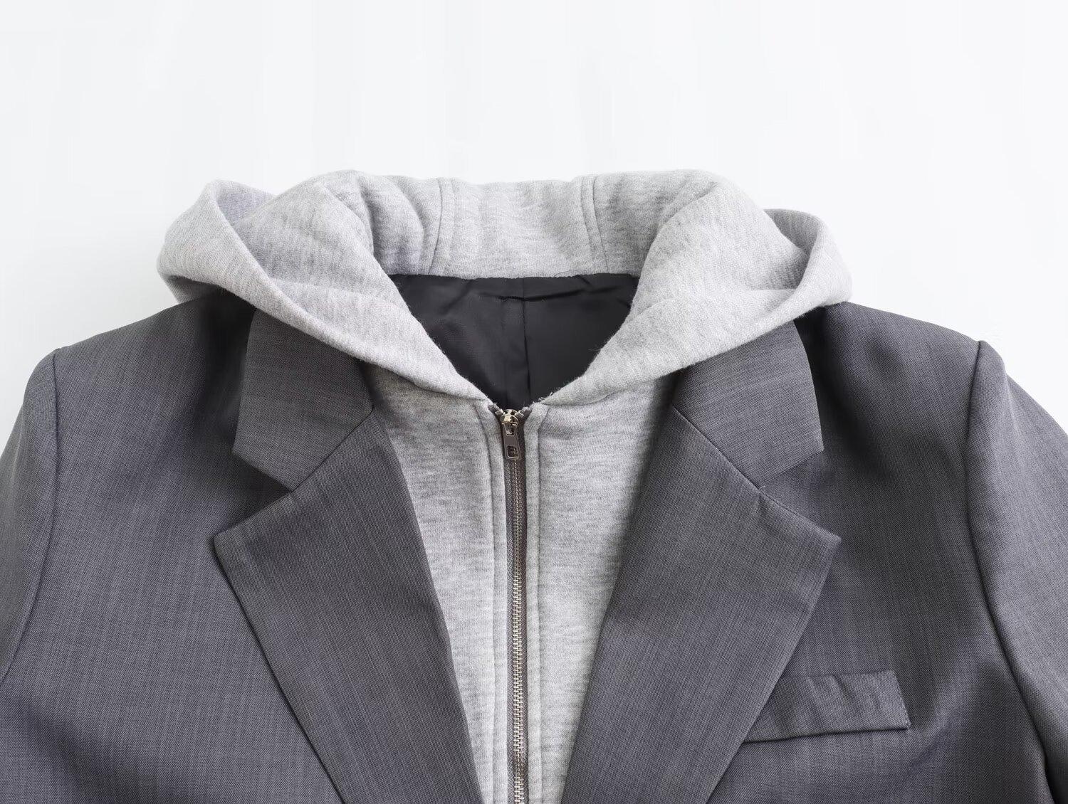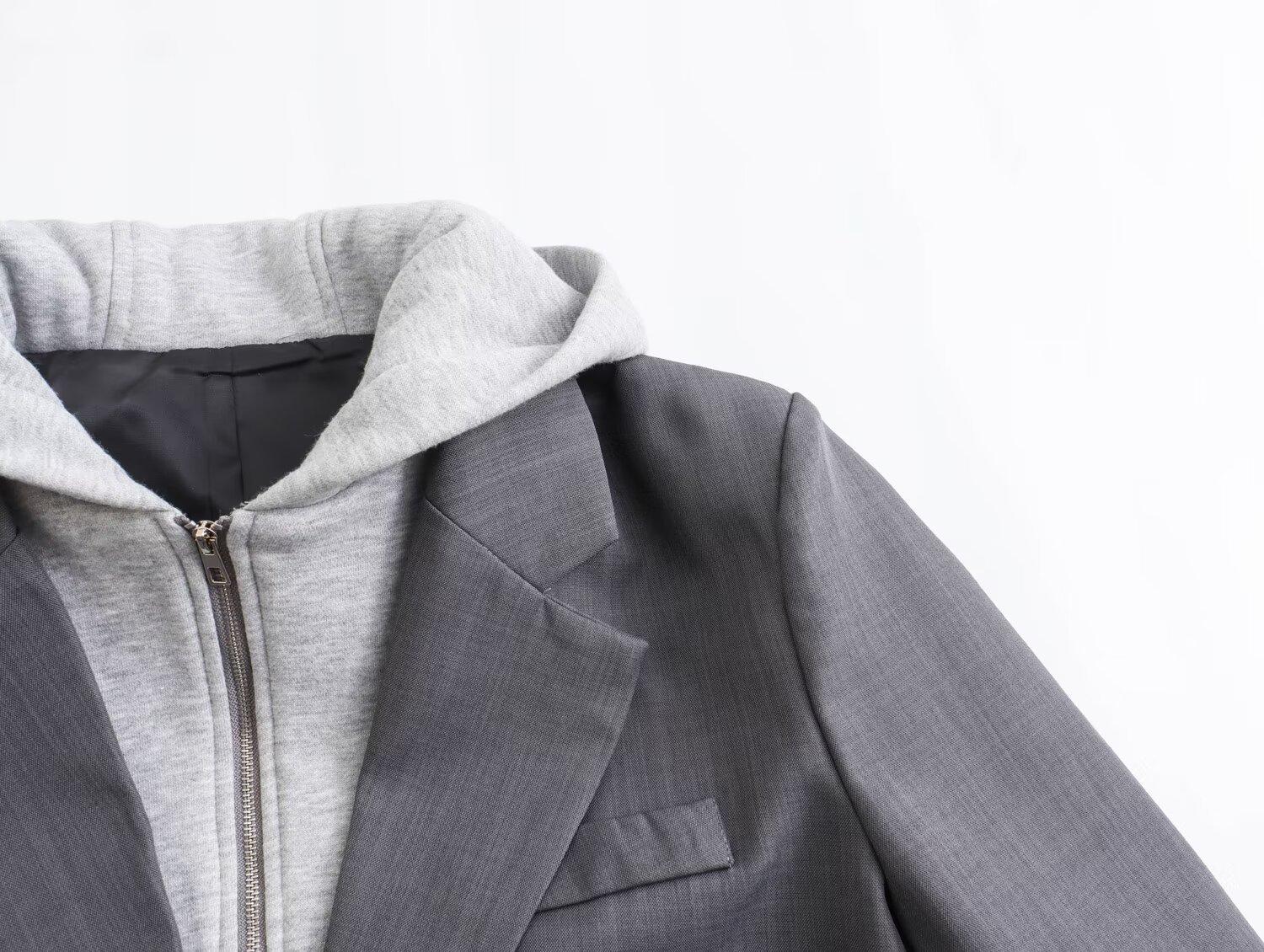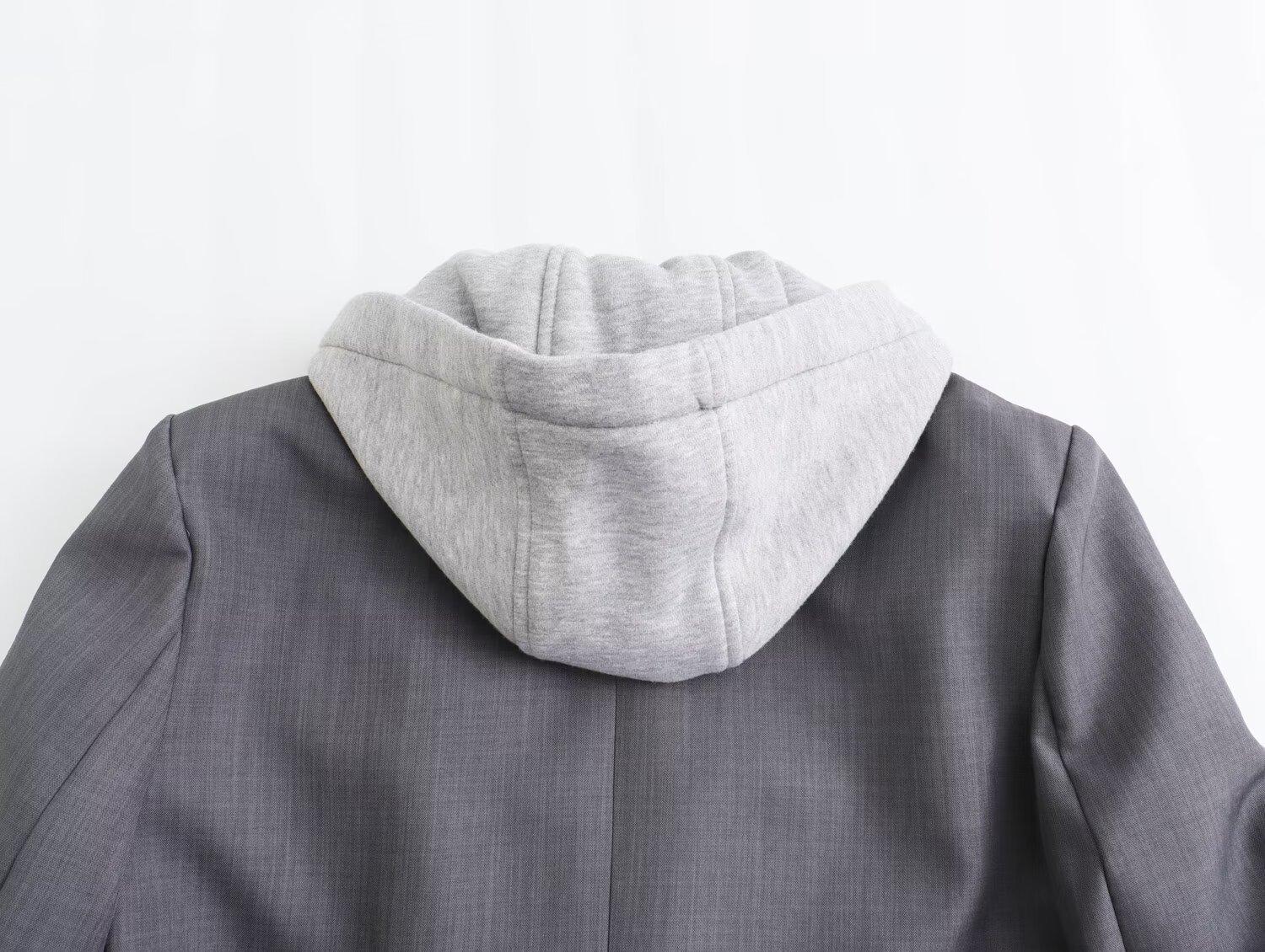 2024 primavera nova europeia e americana roupas femininas transfronteiriças moda de rua com capuz costura paletó w021 81178