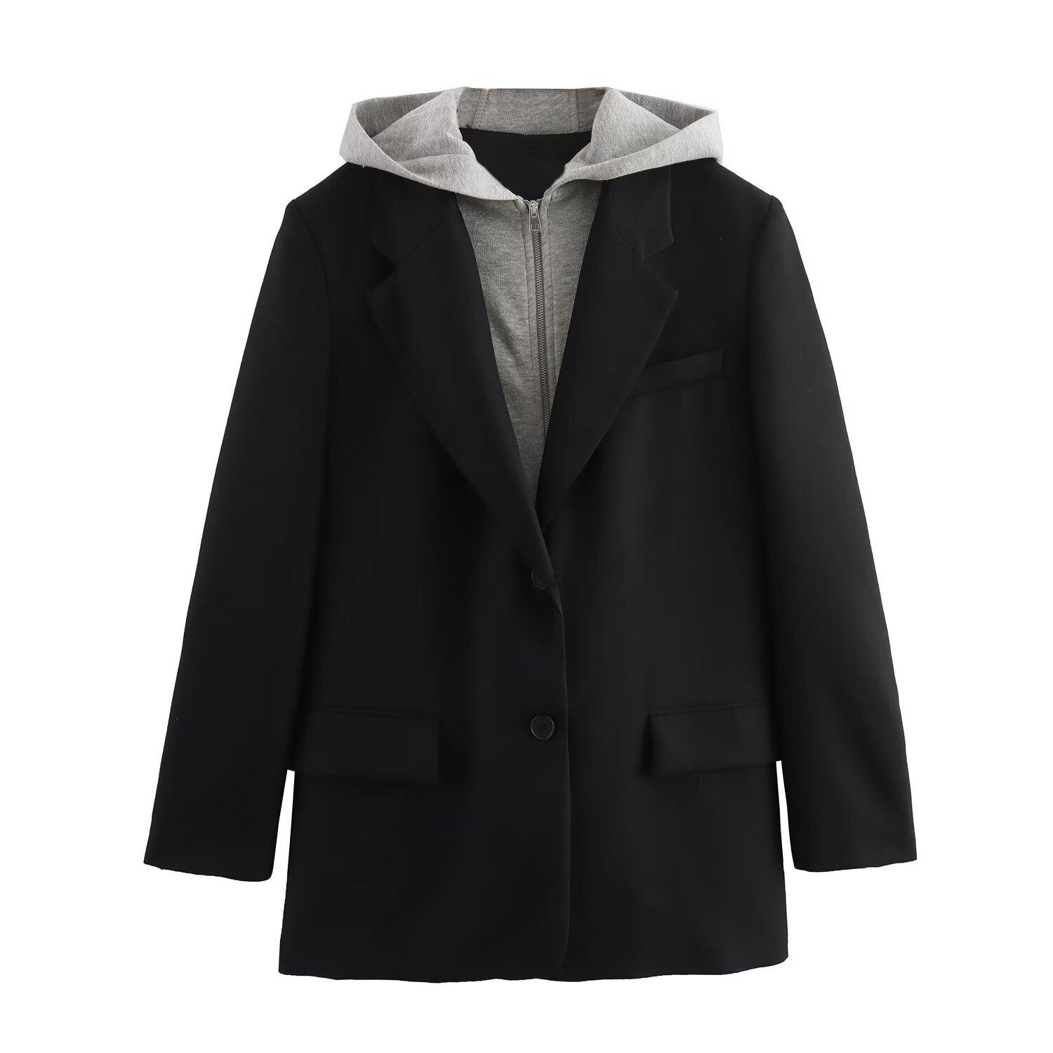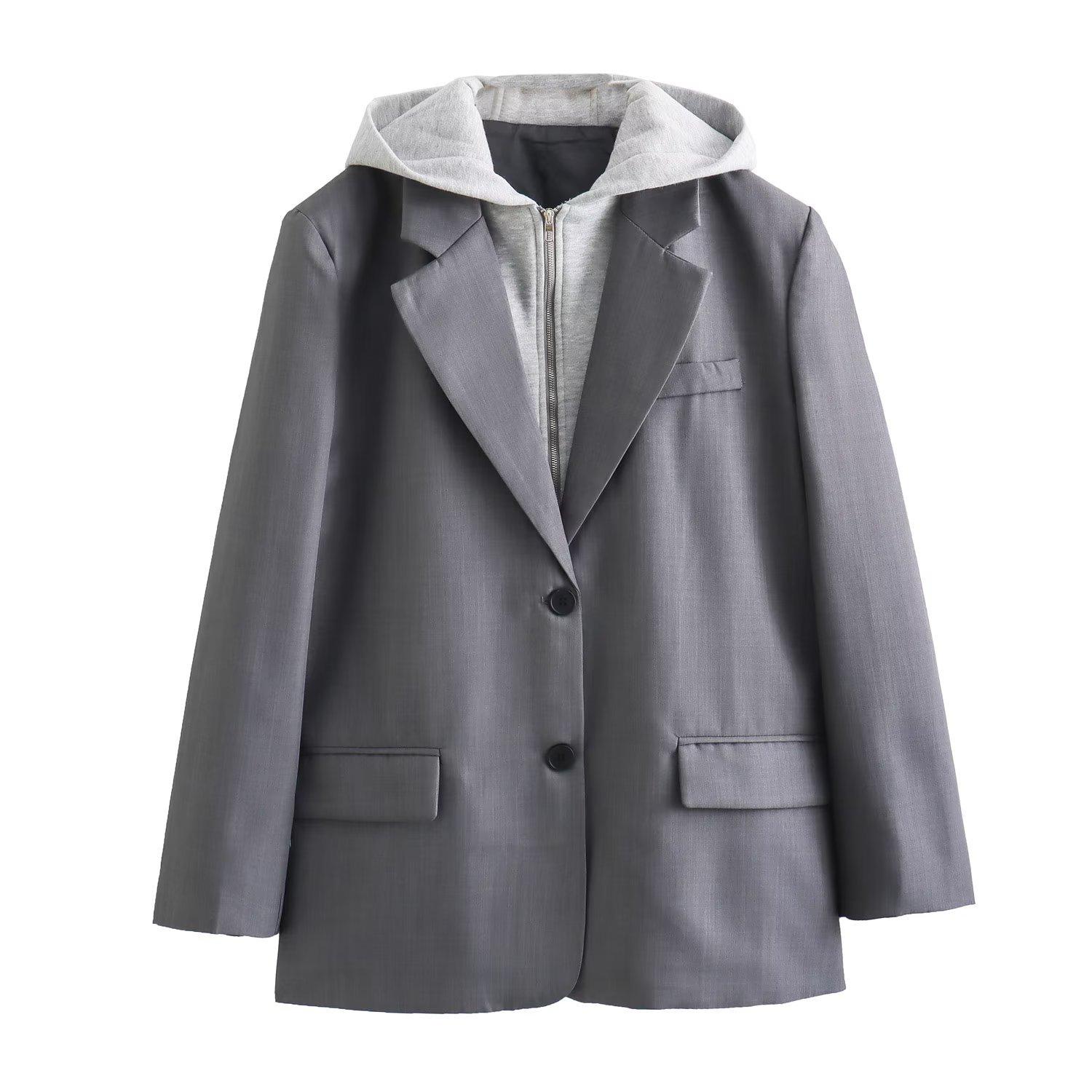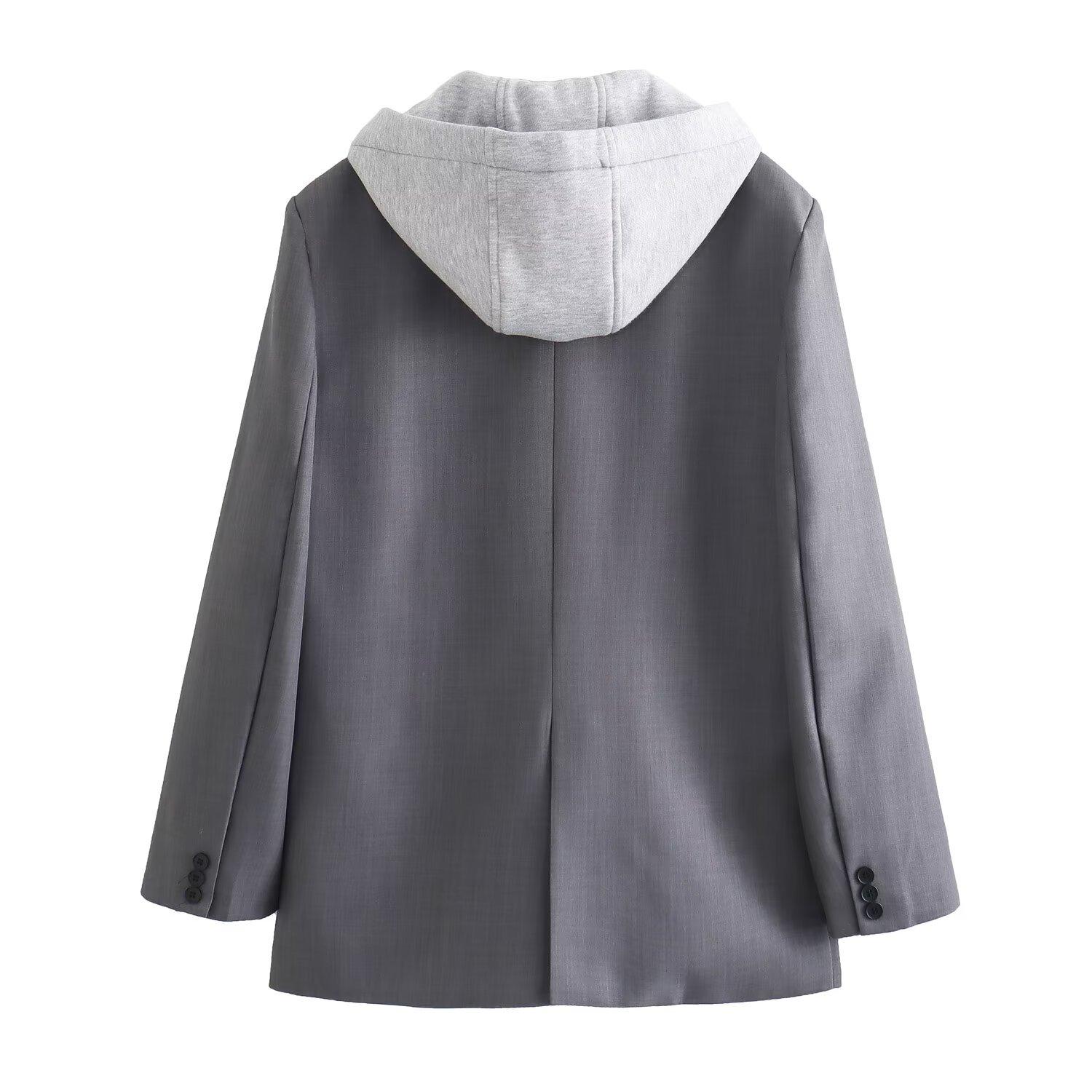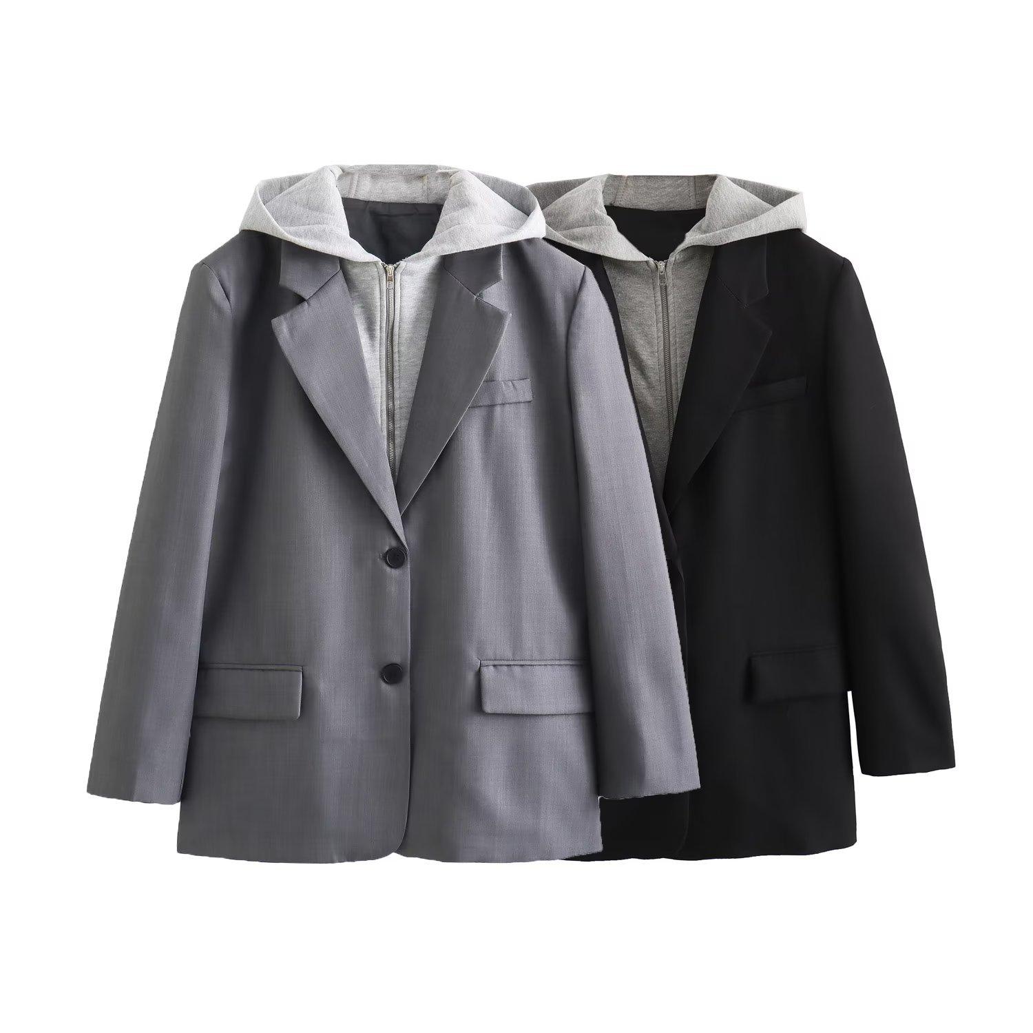 2024 primavera nova europeia e americana roupas femininas transfronteiriças moda de rua com capuz costura paletó w021 81178