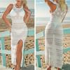 Ropa de Mujer Transfronteriza, Patchwork Tejido a Mano con Borlas Largas, Top Halter con Lazo al Cuello, Camisola Sexy Calada, Cubre Playa para Mujer 200319