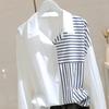 Camisa de Gasa de Punto Suelto de Color Puro con Manga Campana y Cuello en V Nueva Primavera y Verano 2025 Estilo Coreano para Mujer Talla Grande