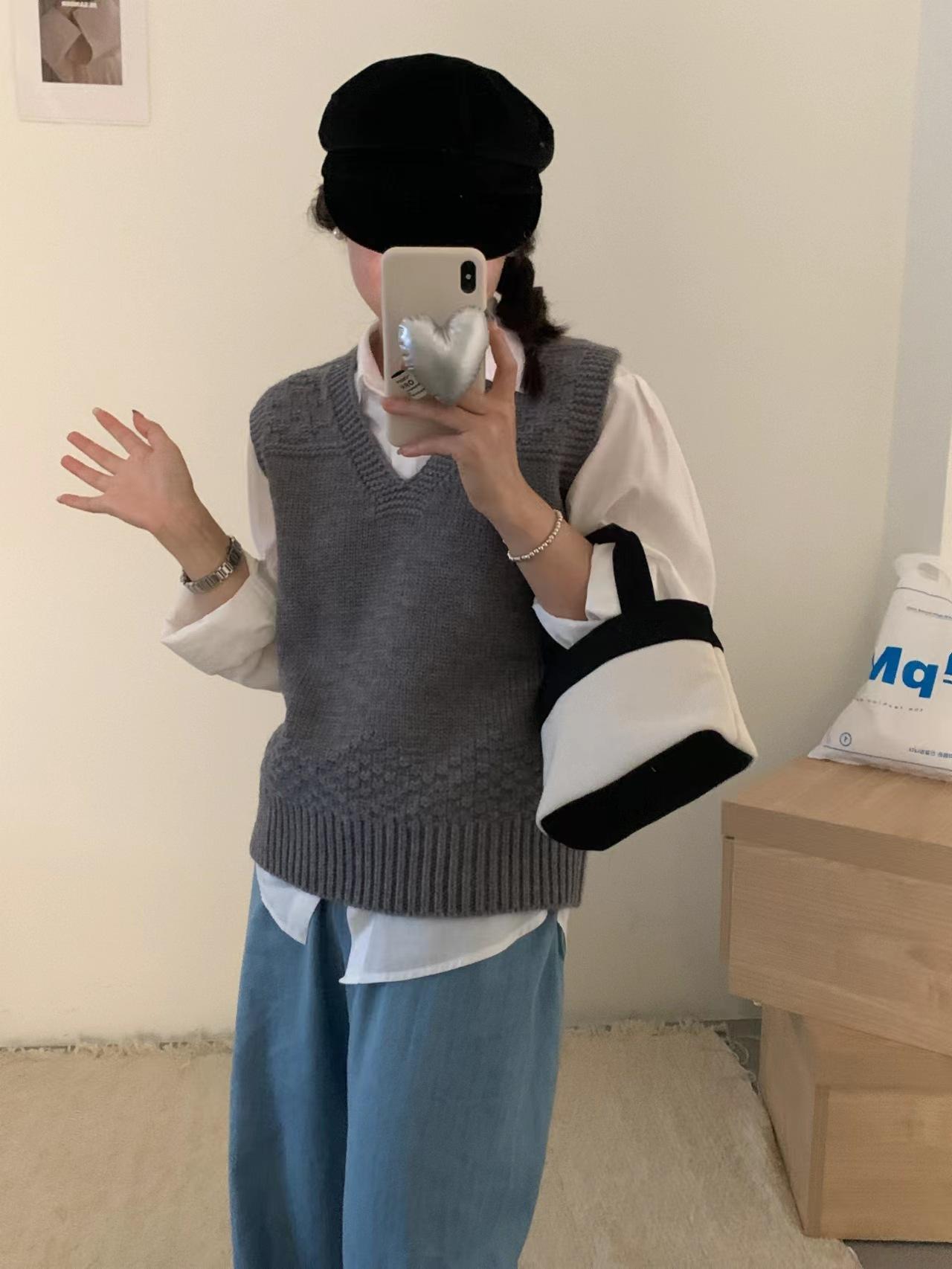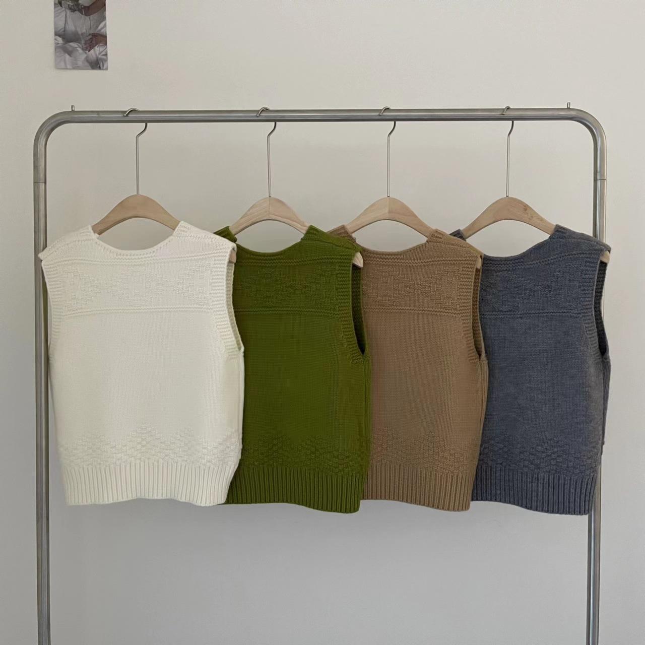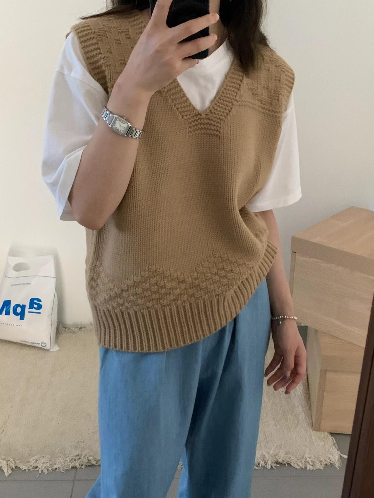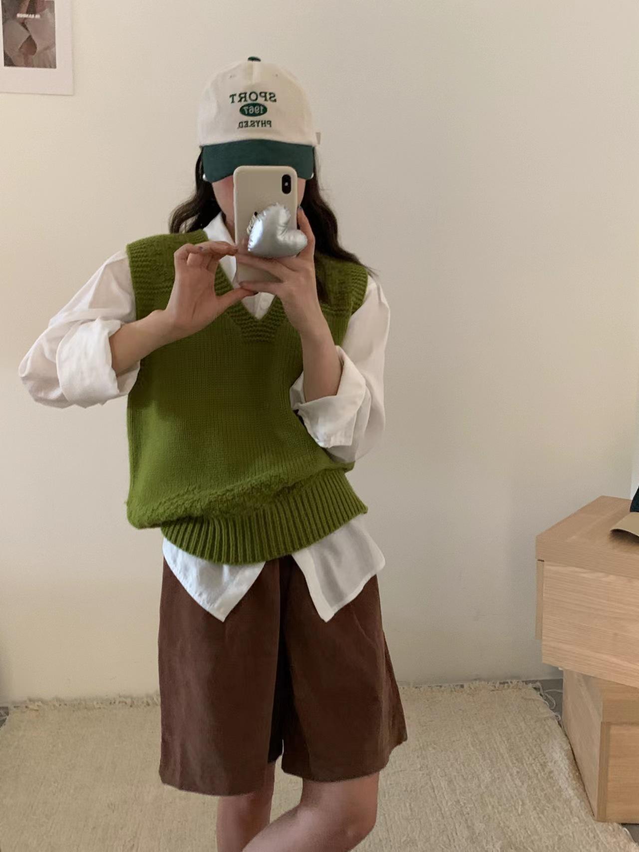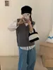 Chaleco de punto de color sólido con cuello en V para mujer otoño 2023 estilo coreano simple para combinar con todo chaleco de mujer top sin mangas
