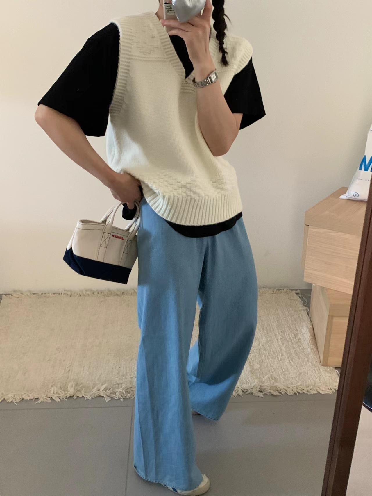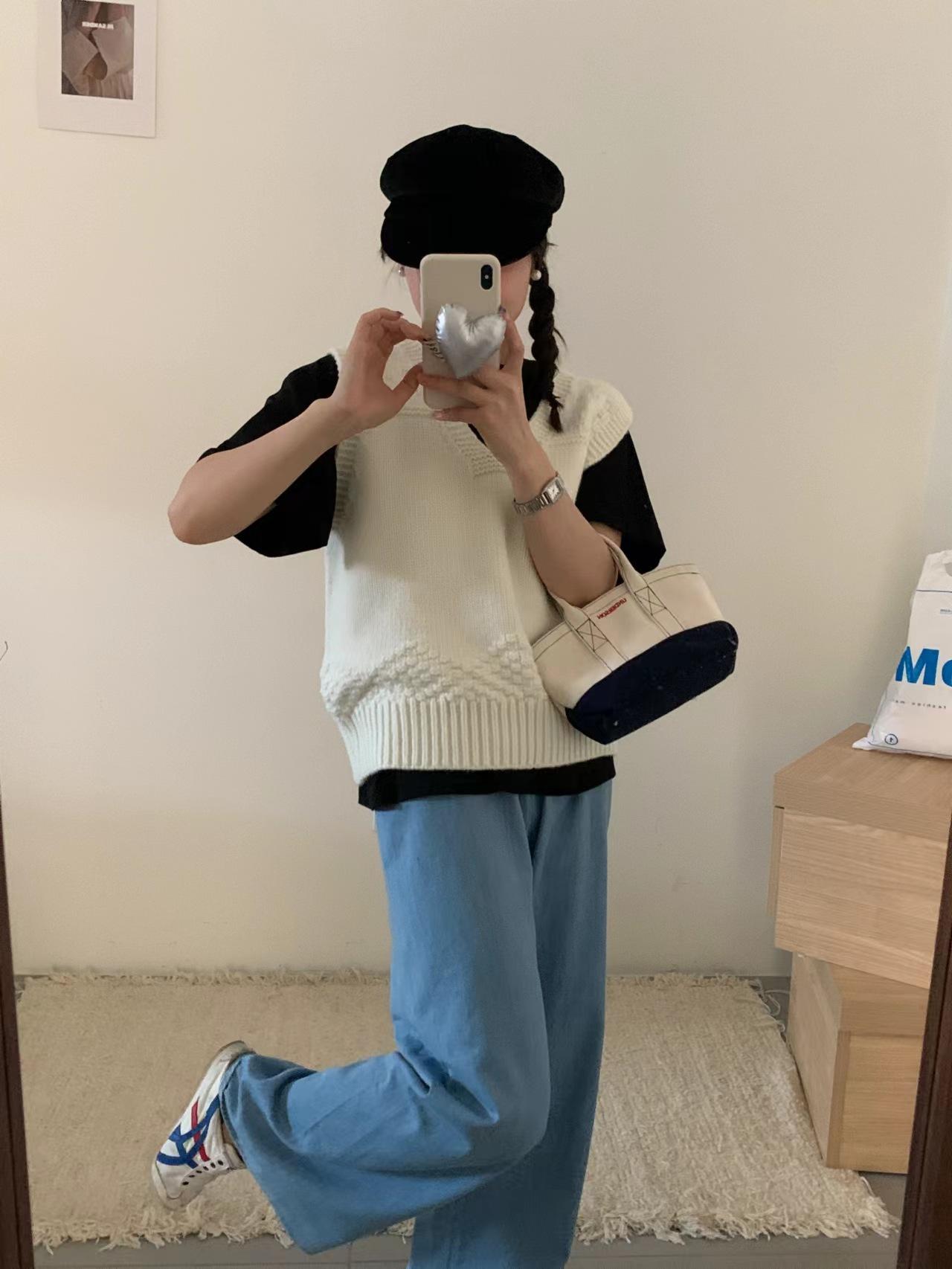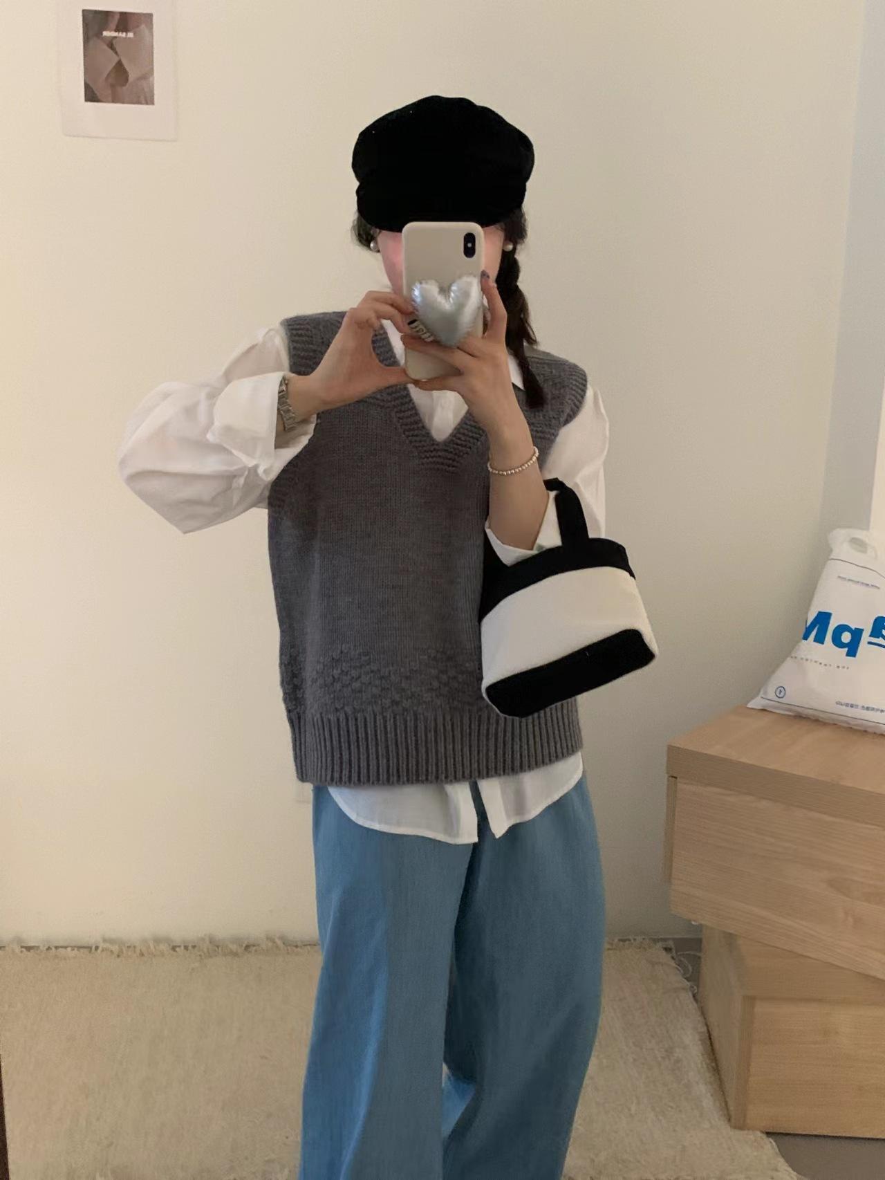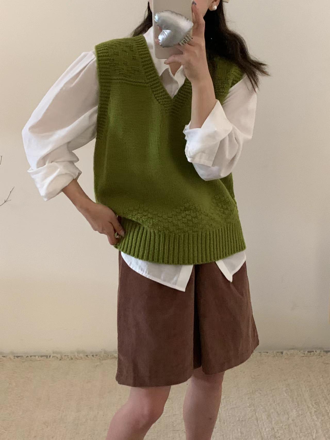 Chaleco de punto de color sólido con cuello en V para mujer otoño 2023 estilo coreano simple para combinar con todo chaleco de mujer top sin mangas