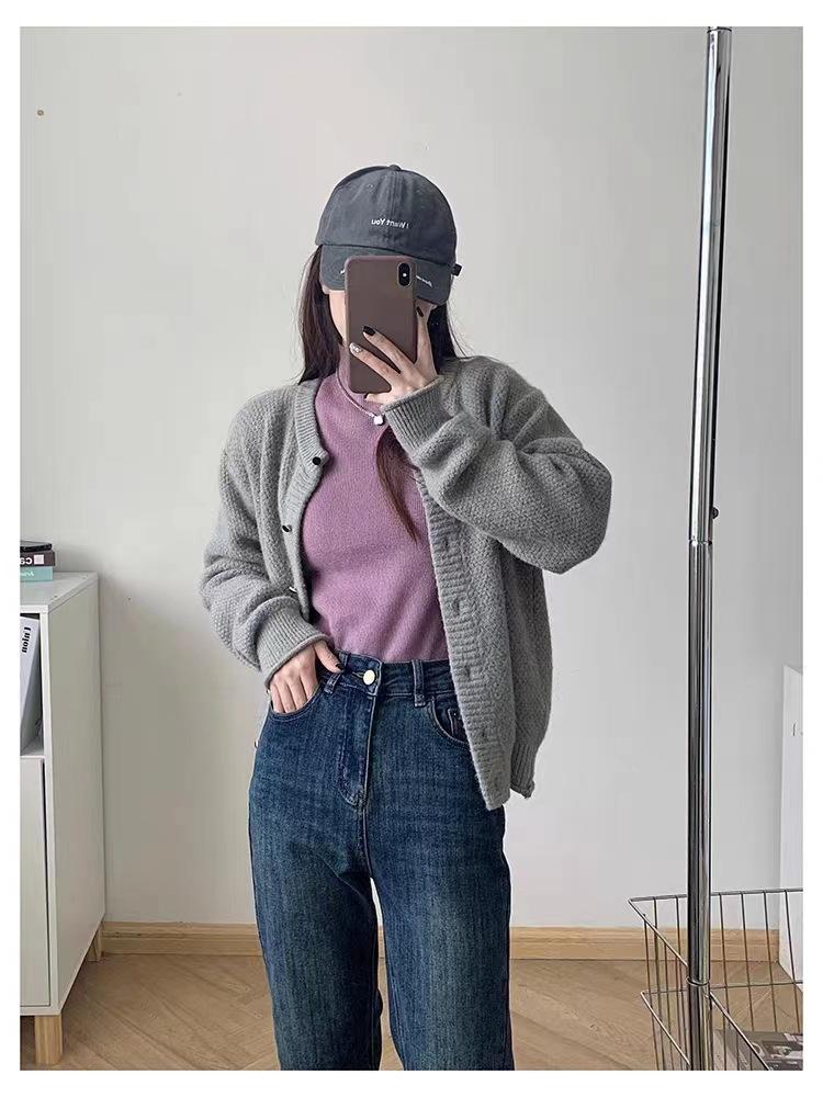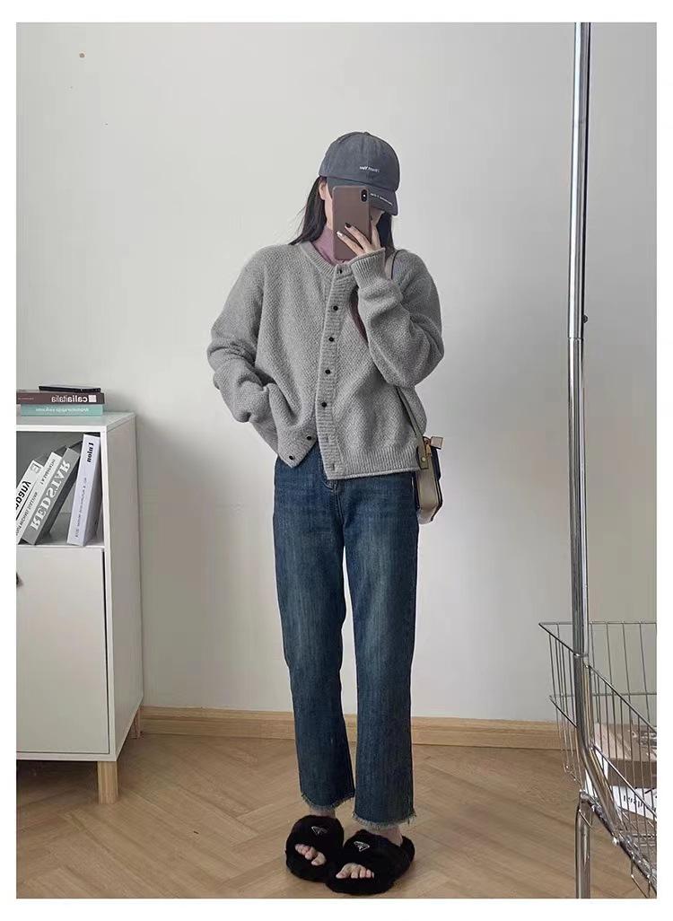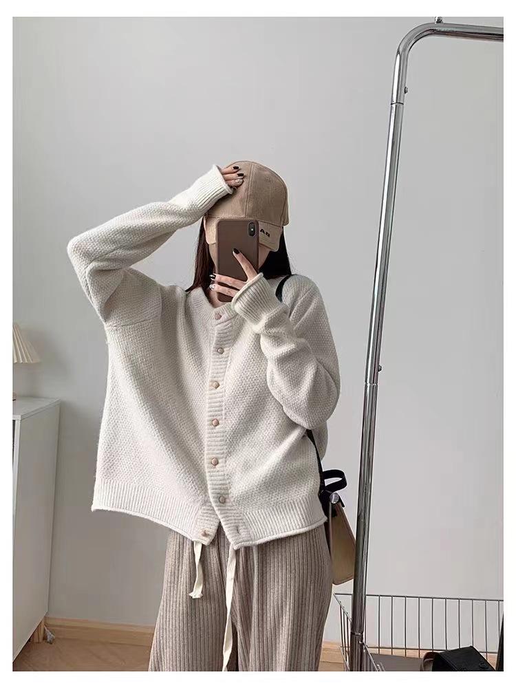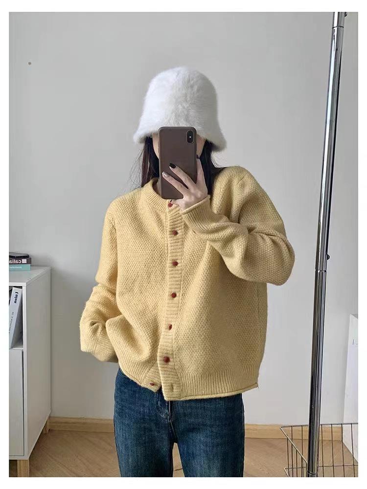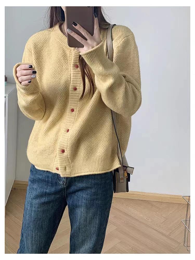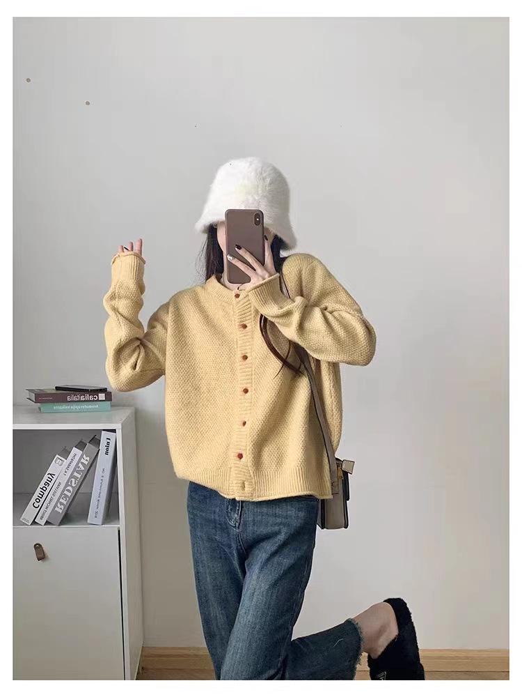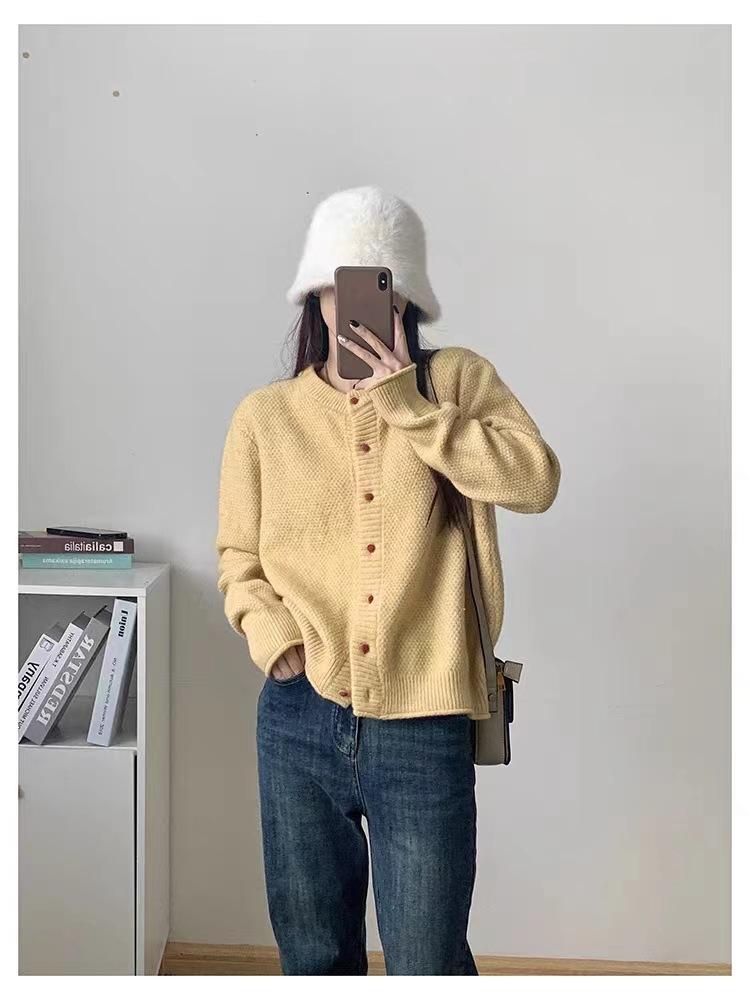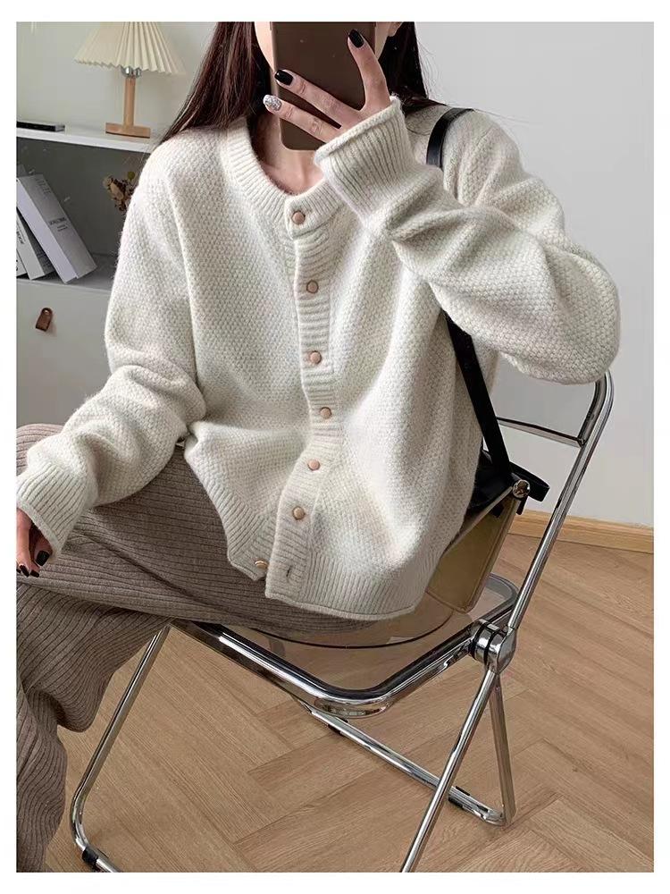 Suéter de punto con cuello redondo de estilo perezoso para mujer, diseño de primavera y otoño, cárdigan de punto de nicho con parte superior pequeña.