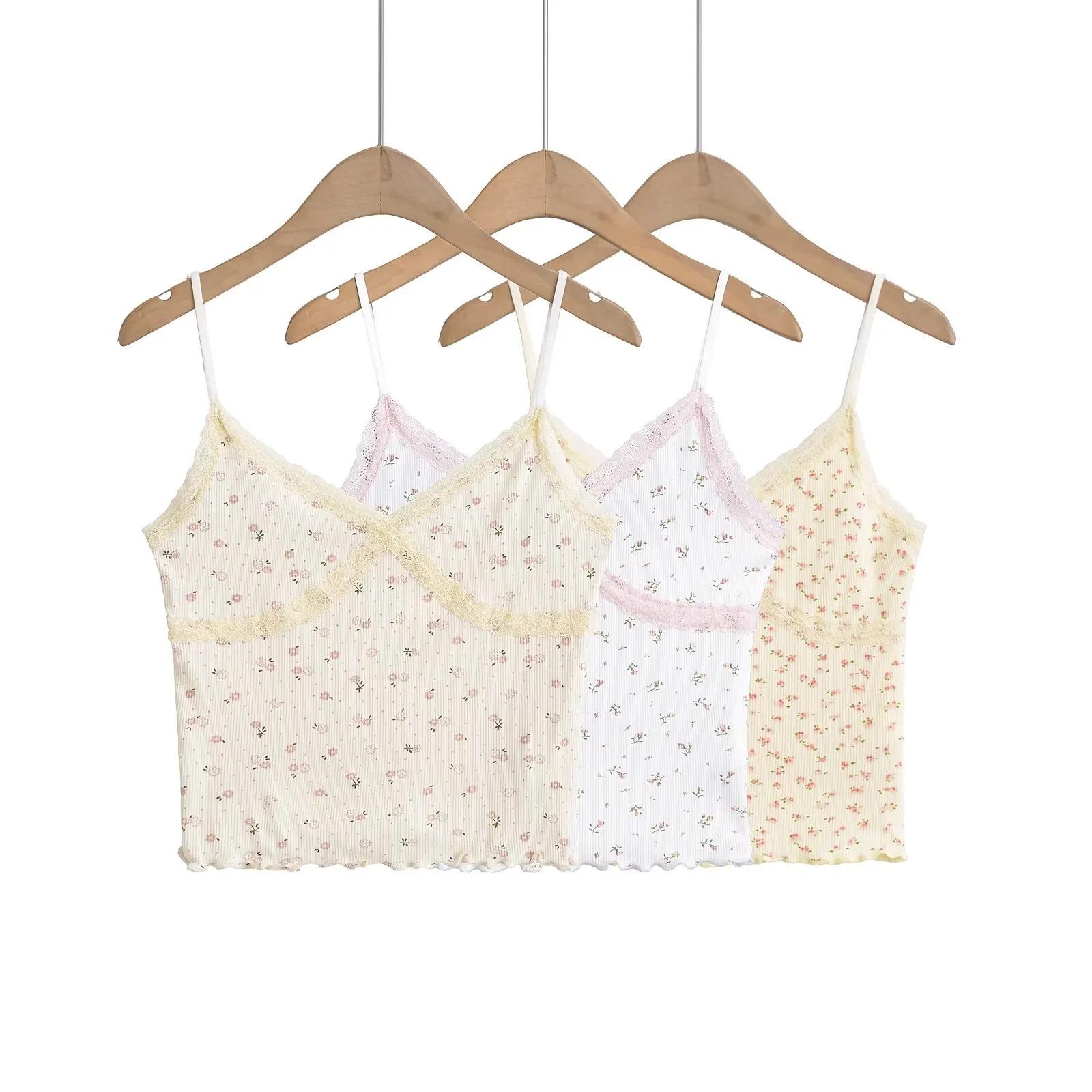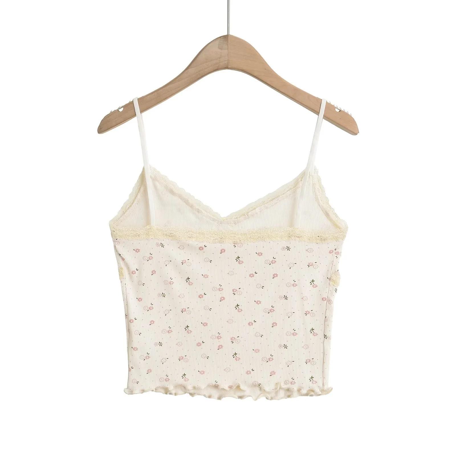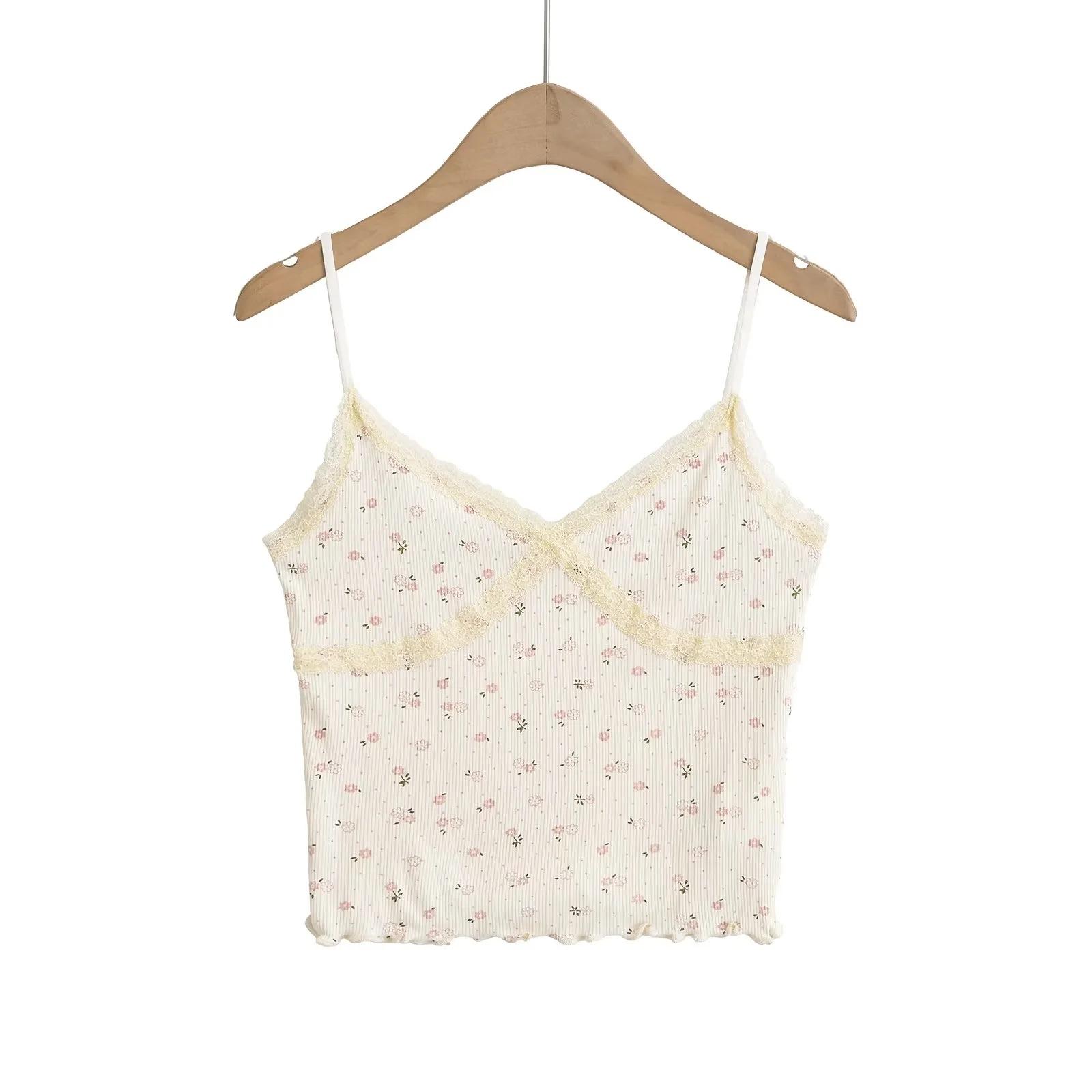 Chaleco sexy para chica sexy con tirantes interiores para mujer, novedad de verano 2024, top con tirantes de encaje con orejas de madera estampadas