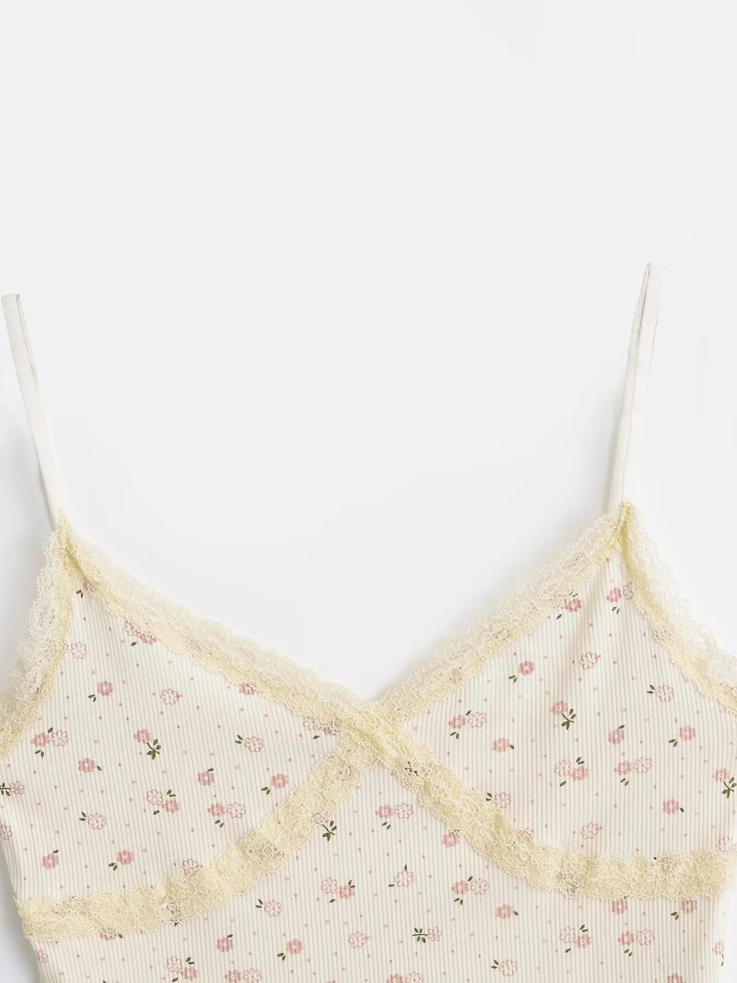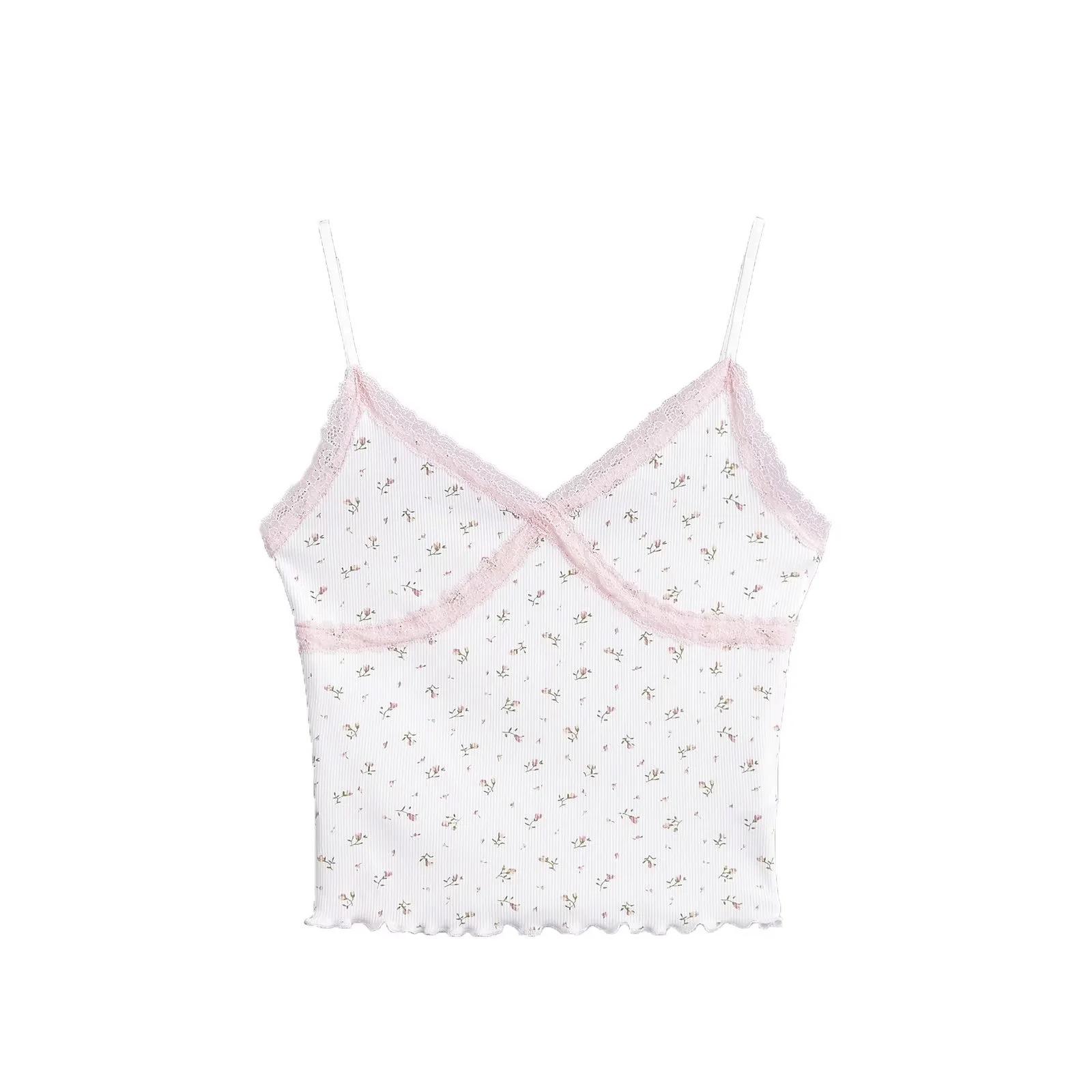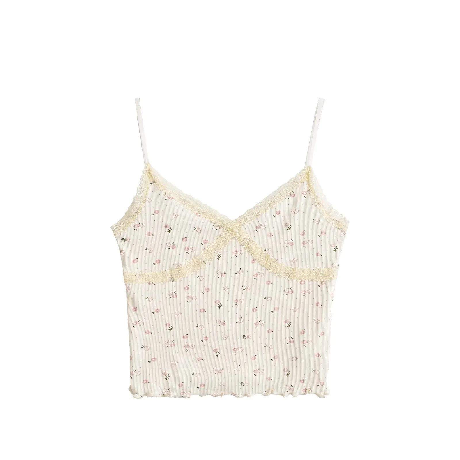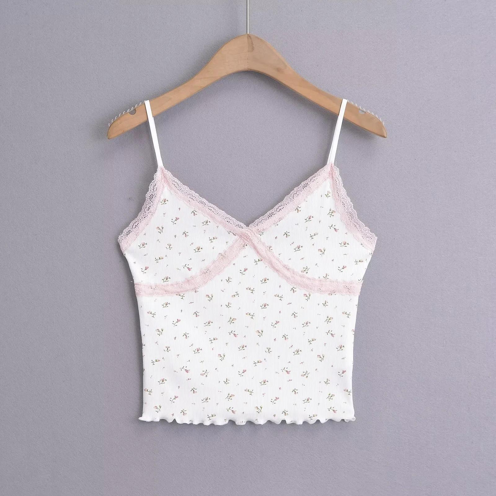Chaleco sexy para chica sexy con tirantes interiores para mujer, novedad de verano 2024, top con tirantes de encaje con orejas de madera estampadas