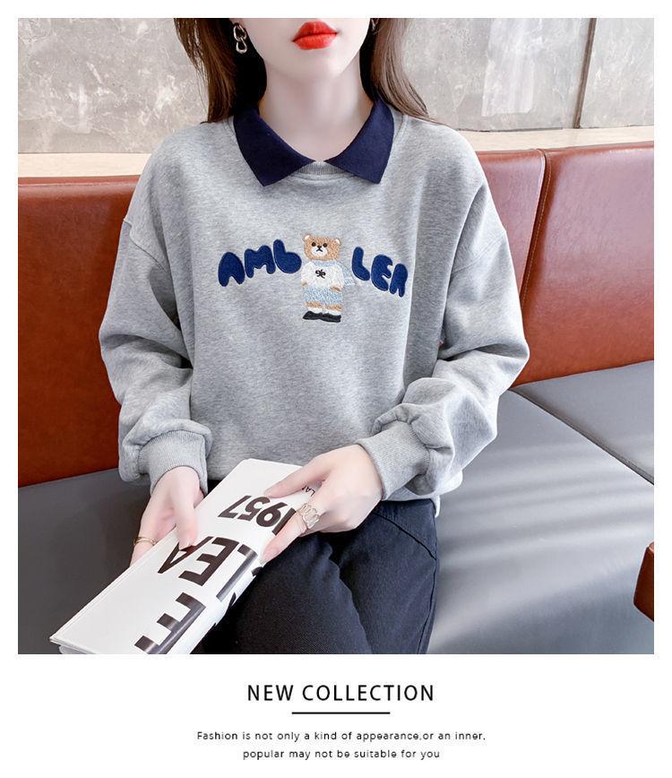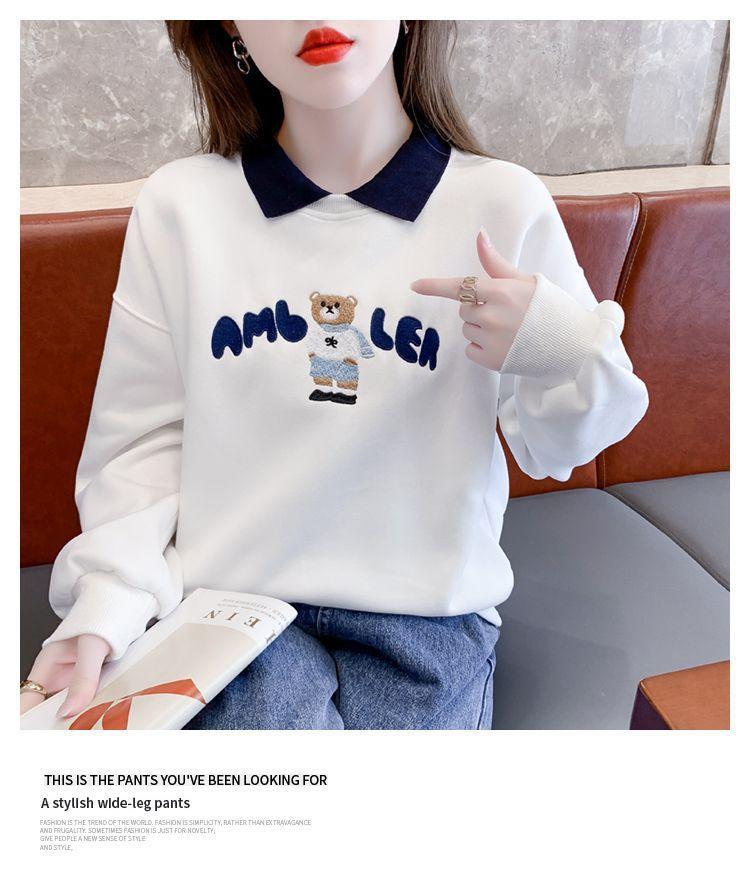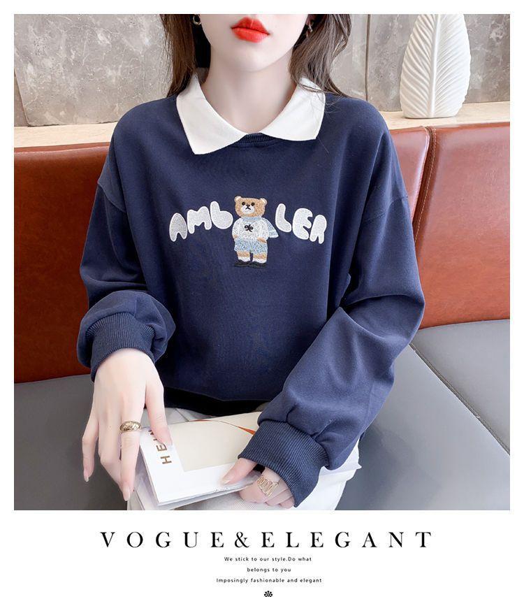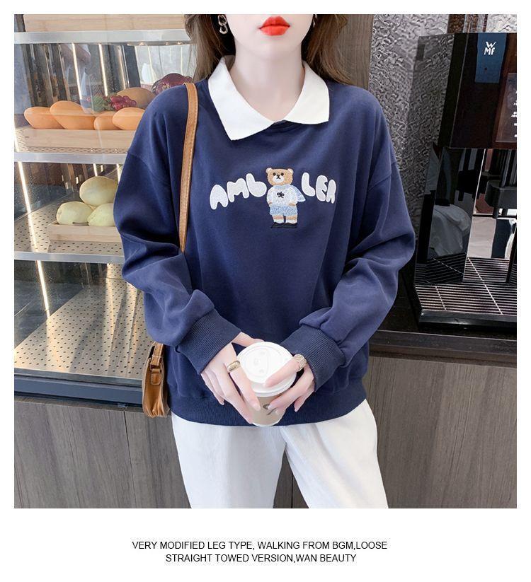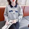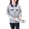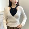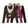 Camiseta de manga larga para mujer, estilo Hong Kong, con un toque chic, diseño pequeño, suelto, perezoso, suéter falso de dos piezas, top de moda para mujer.