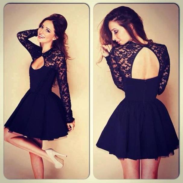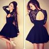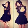 Ebay AliExpress Explosiones Europeo y Americano Nuevo Hueco Espalda Descubierta Encaje Manga Larga Vestido Sexy