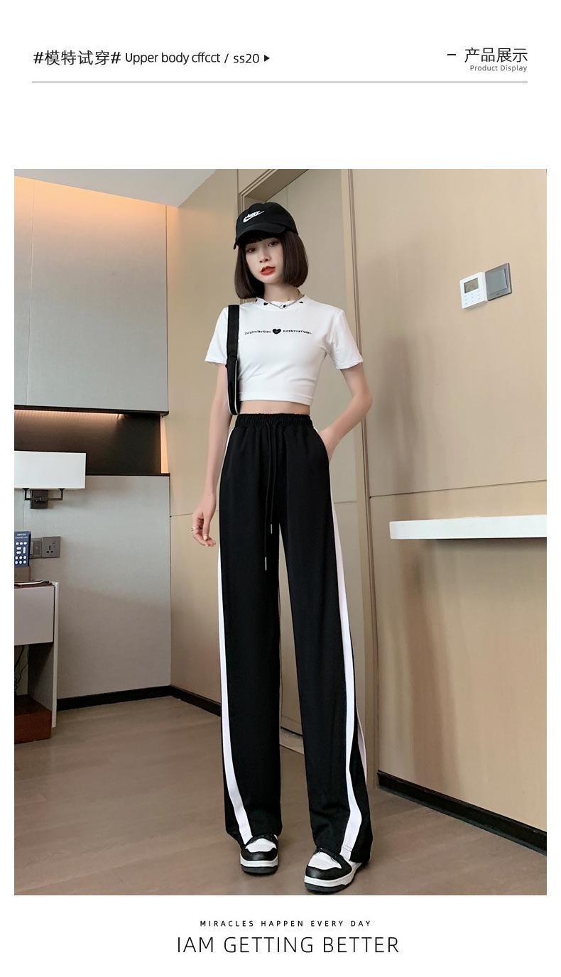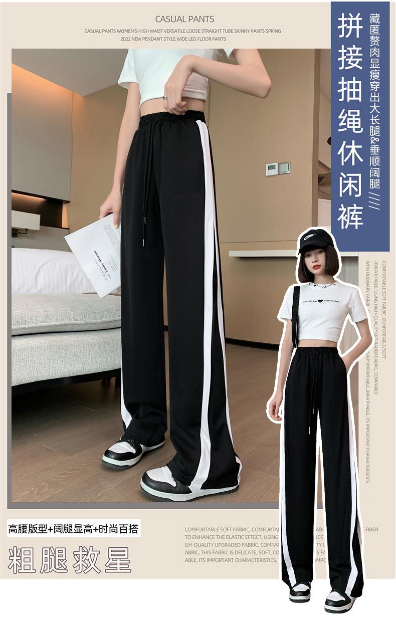 Pantalones casuales de verano 2022 de pierna ancha rectos adelgazantes talla grande cintura alta drapeados mop pantalones deportivos para mujer chica gordita delgada
