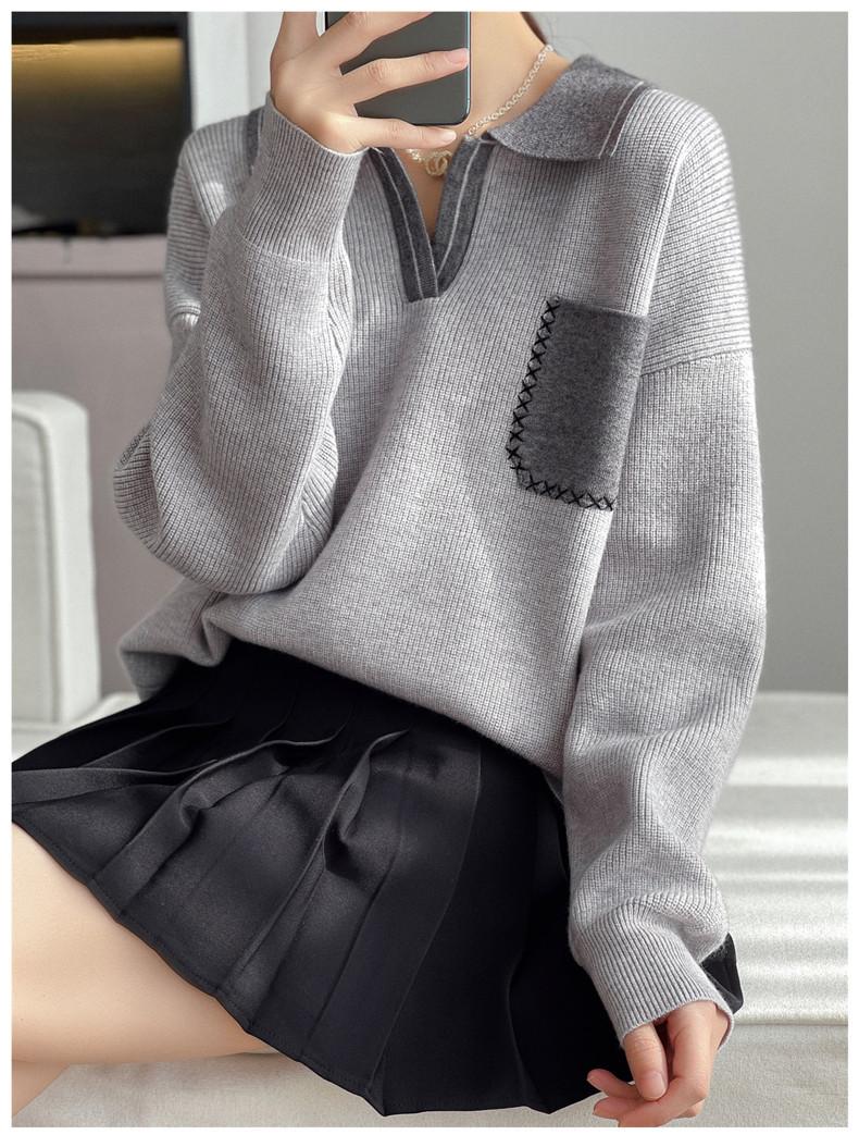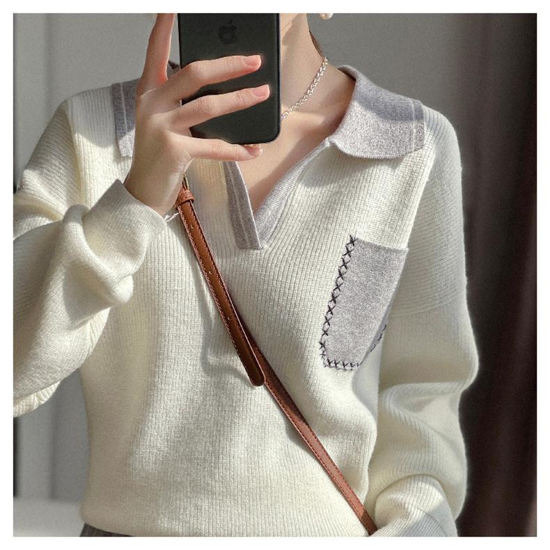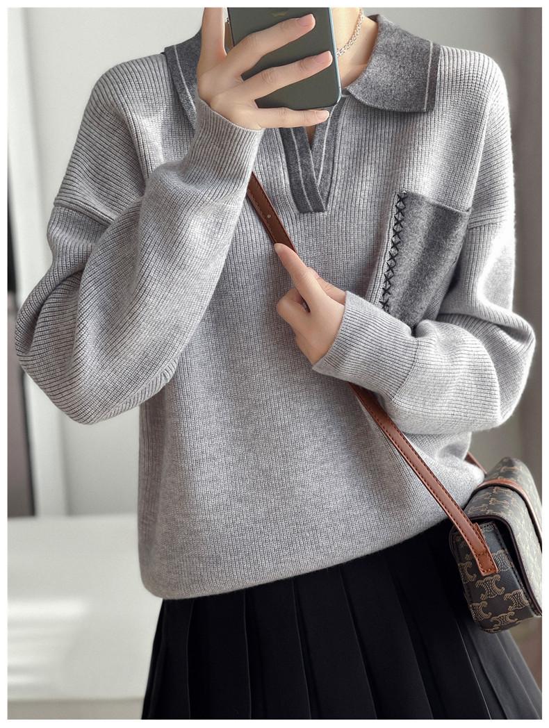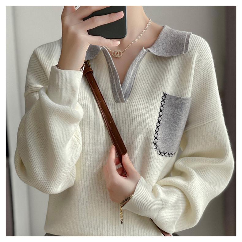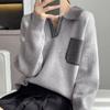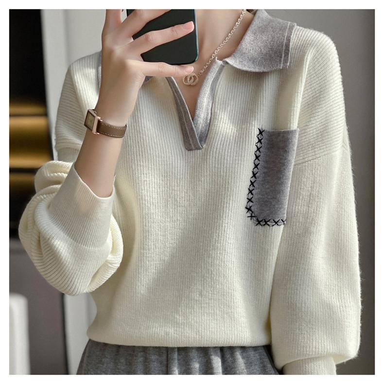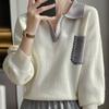 Estación Europea 2024 Nuevo Suéter de Lana de Cuello en V con Solapa para Mujer de Estilo Europeo Otoño e Invierno Tendencia de Estilo Holgazán