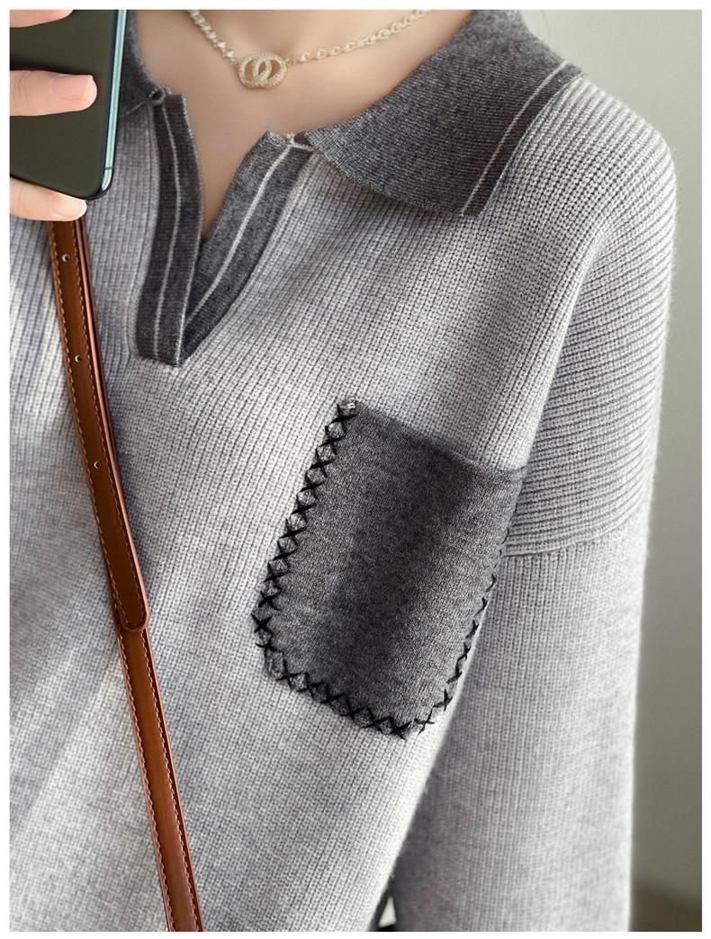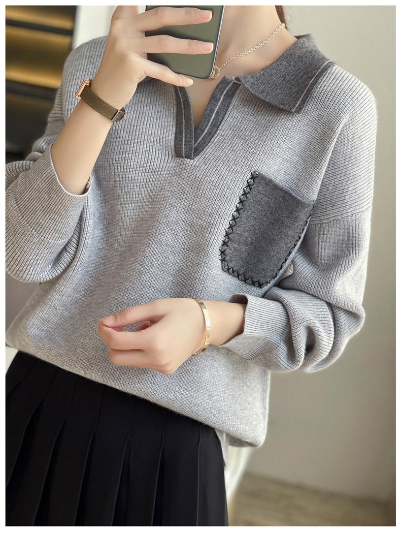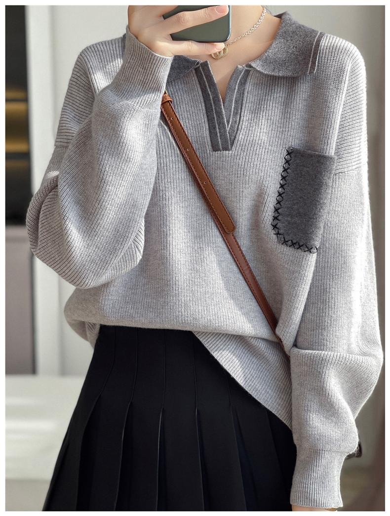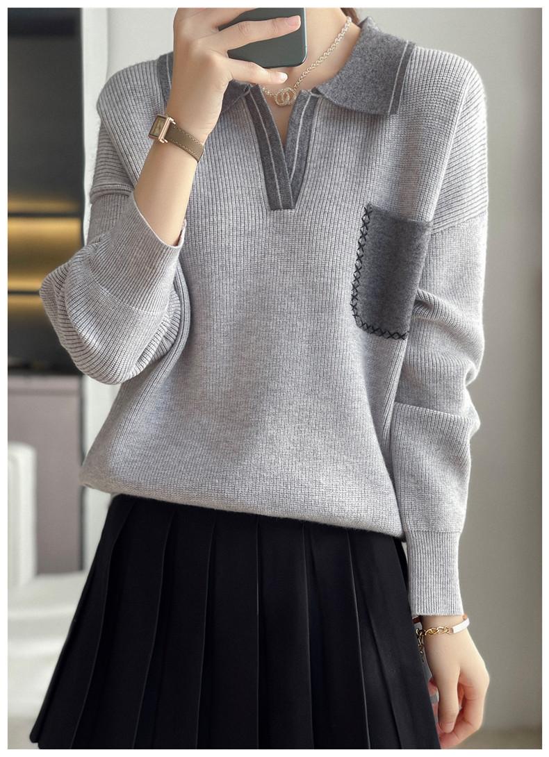 Estación Europea 2024 Nuevo Suéter de Lana de Cuello en V con Solapa para Mujer de Estilo Europeo Otoño e Invierno Tendencia de Estilo Holgazán