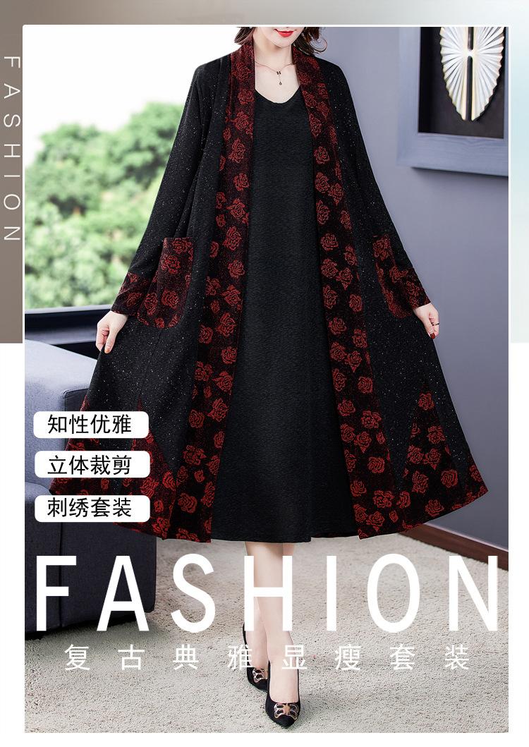 Nuevo otoño traje de madre de boda estilo occidental de señora rica madre gorda más talla grande vestido de mediana edad y anciana conjunto de dos piezas