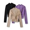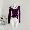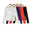 Camisa básica ajustada y sexy de manga larga con cuello redondo, antideslizamiento, de talla grande, para mujer, de otoño, de color sólido europeo y americano
