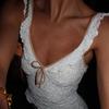 Top corto con cordones y cuello alto estilo europeo y americano para mujer, novedad de verano 2024, chaleco adelgazante plisado ajustado sin mangas sexy