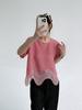 Sentido del Diseño Chic Camiseta de Manga Corta para Mujer Verano Nueva Hilo Elástico Manga Corta Camiseta Plisada Elegante con Cintura Ajustada