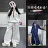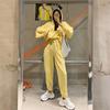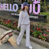 Traje deportivo casual de terciopelo de estilo coreano nuevo de primavera y otoño 2025, sudadera con capucha tipo jersey, pantalones de pierna holgada, conjunto de dos piezas