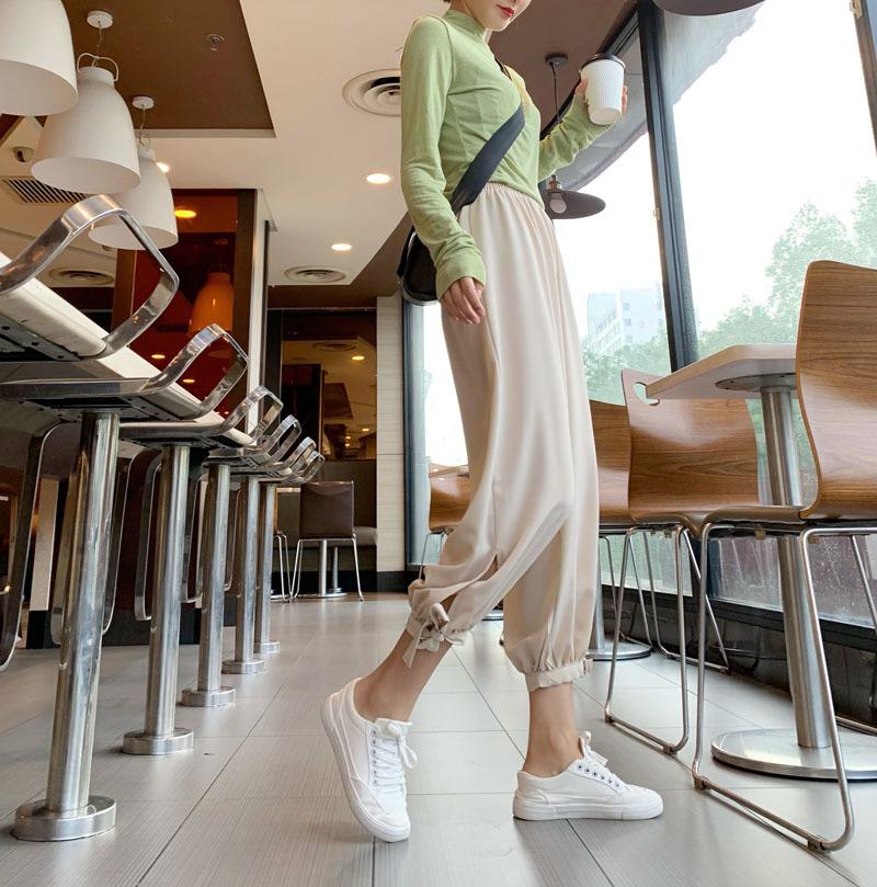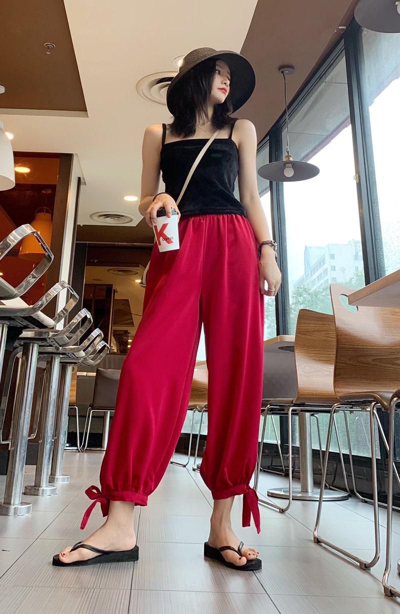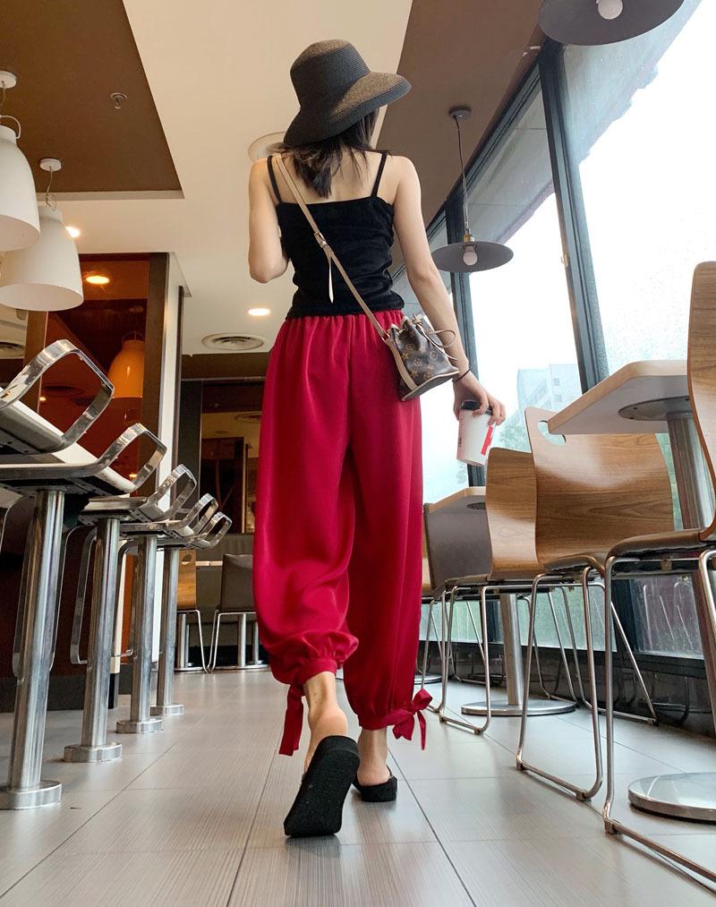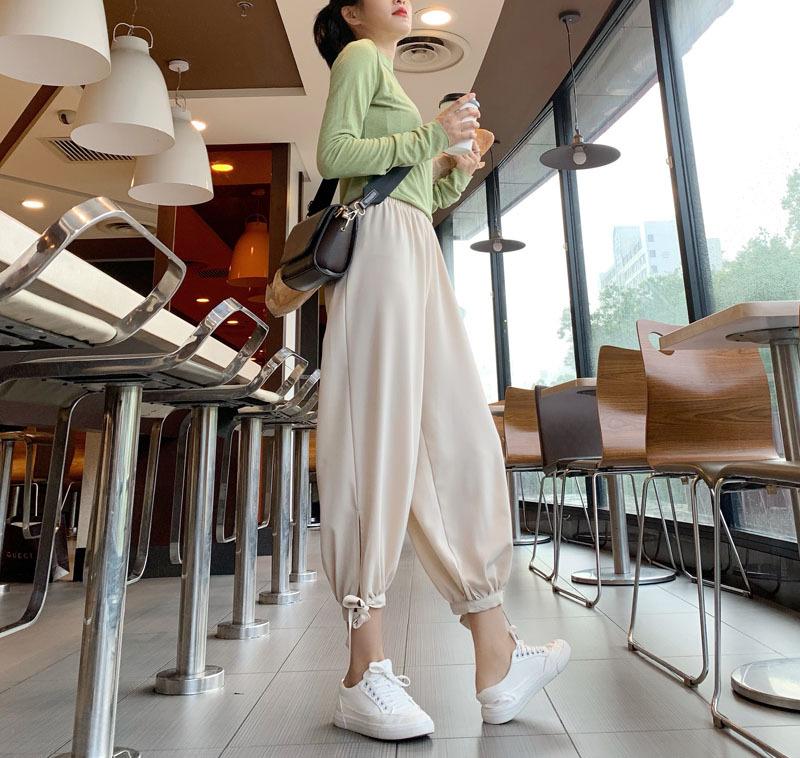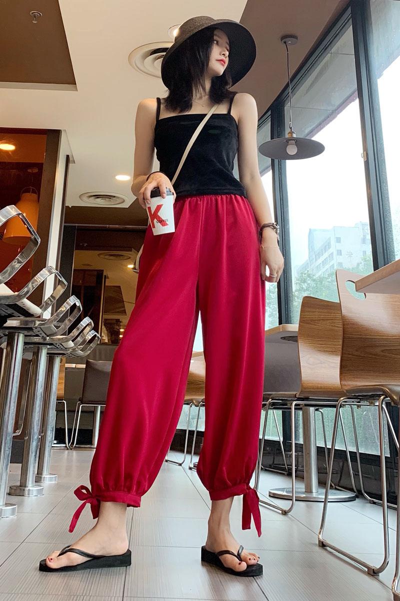 Pantalones bombachos de gasa de seda helada para mujer, de verano, finos, antimosquitos, de cintura alta, holgados y de pierna ancha.