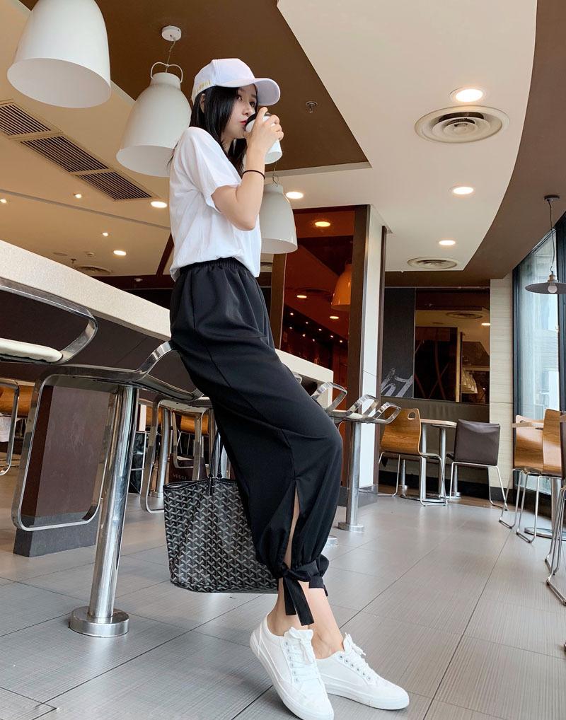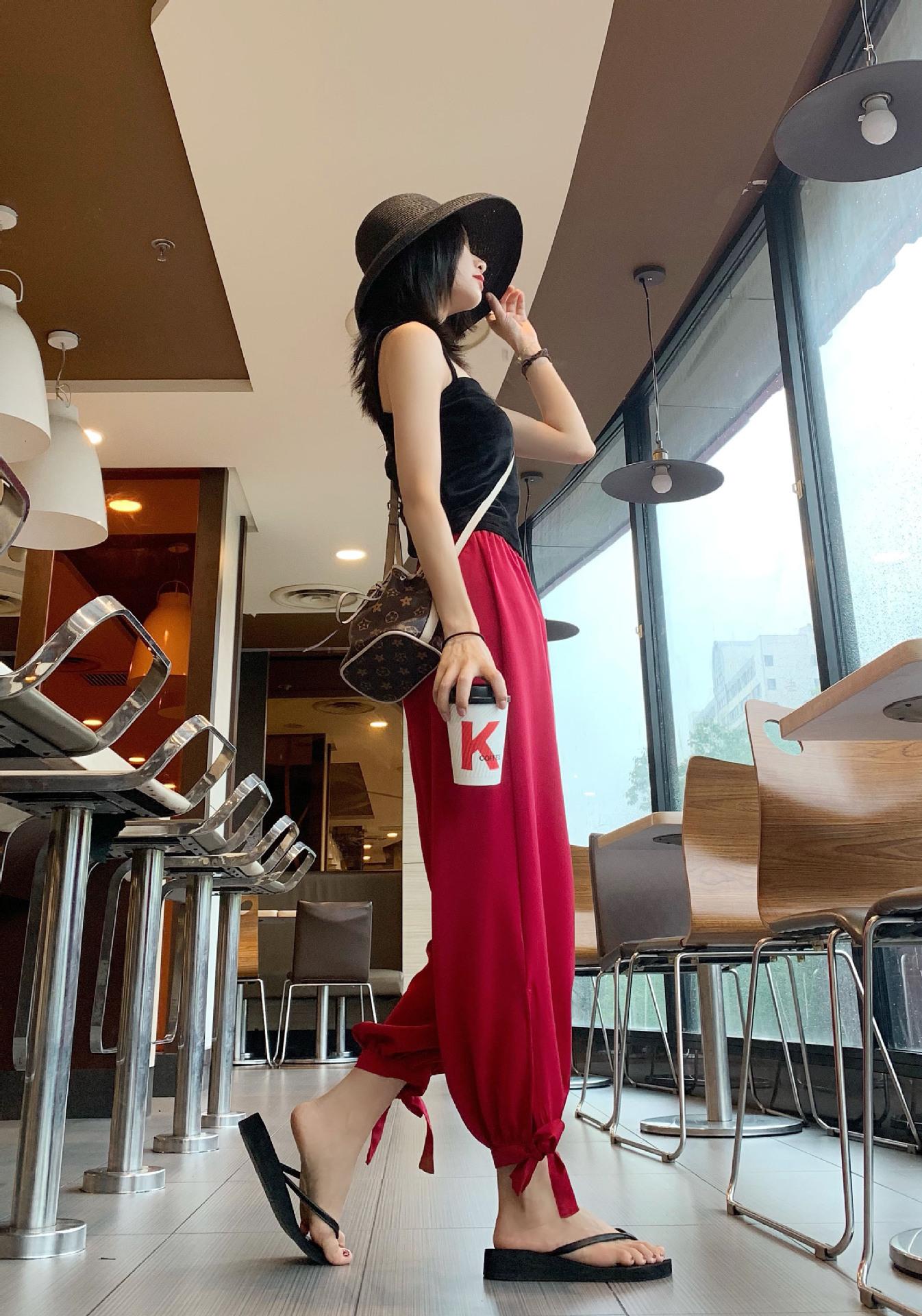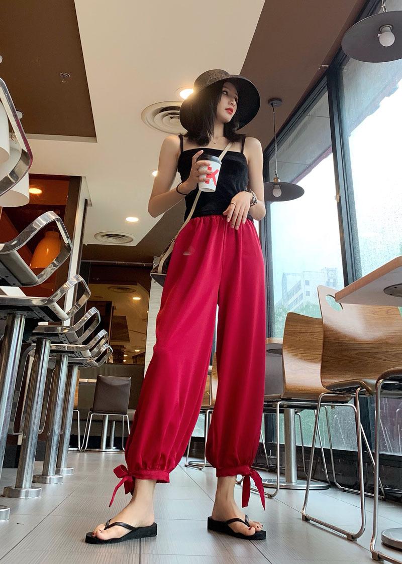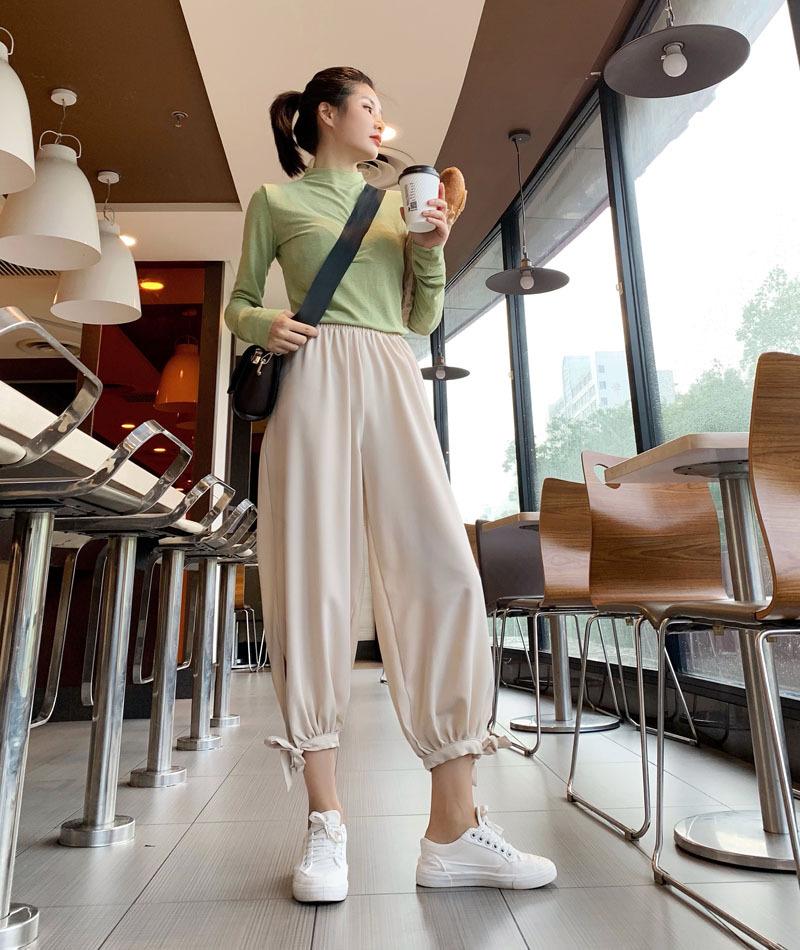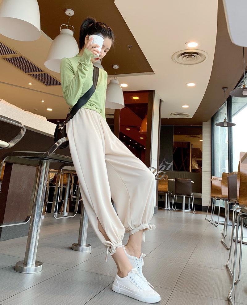 Pantalones bombachos de gasa de seda helada para mujer, de verano, finos, antimosquitos, de cintura alta, holgados y de pierna ancha.