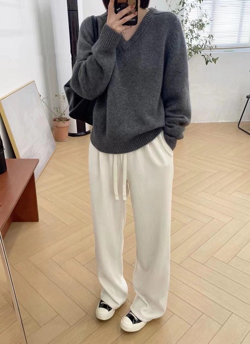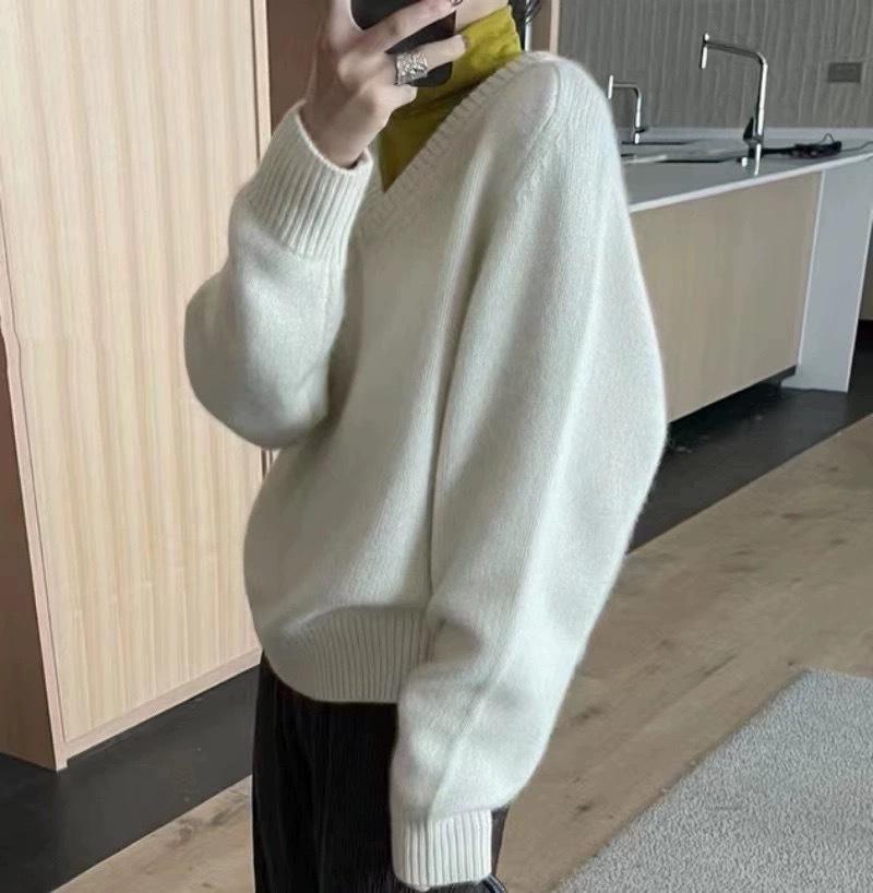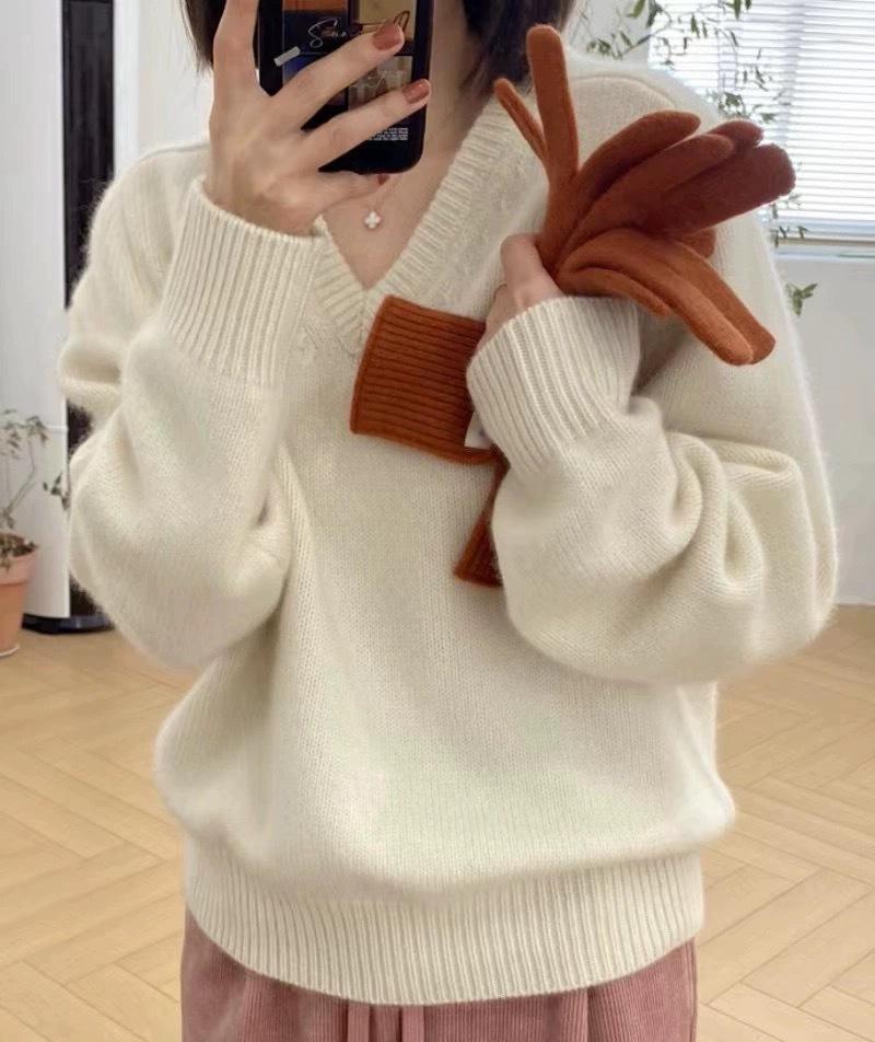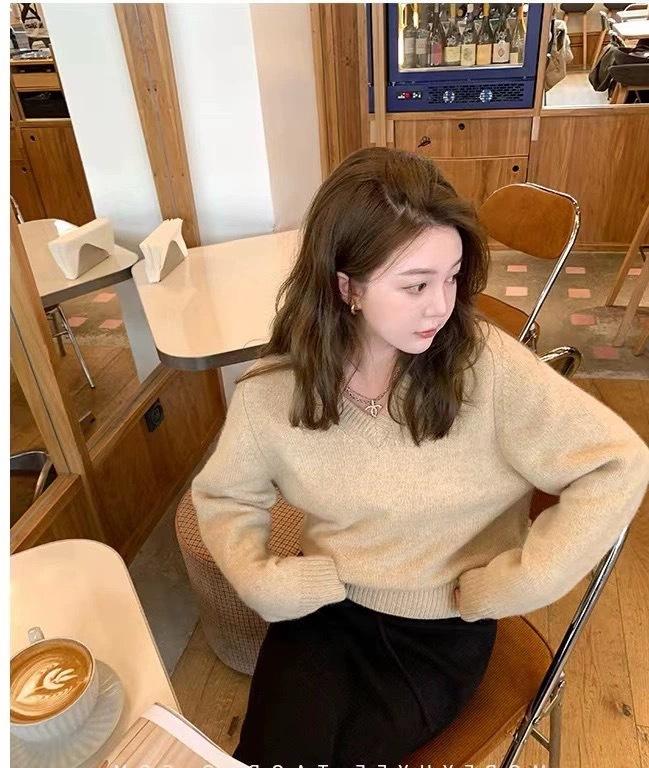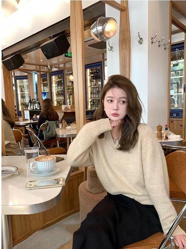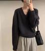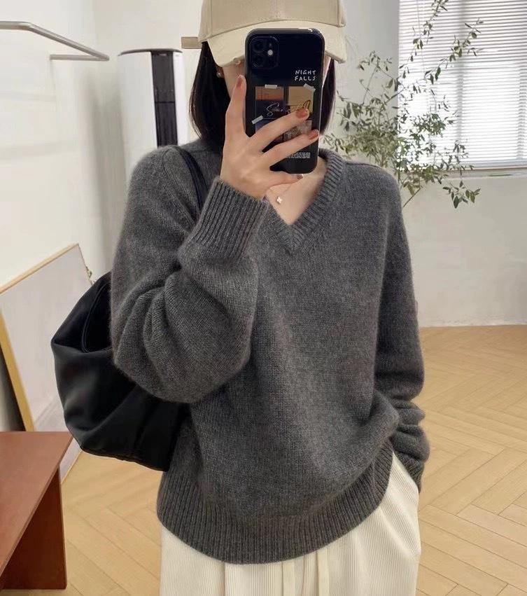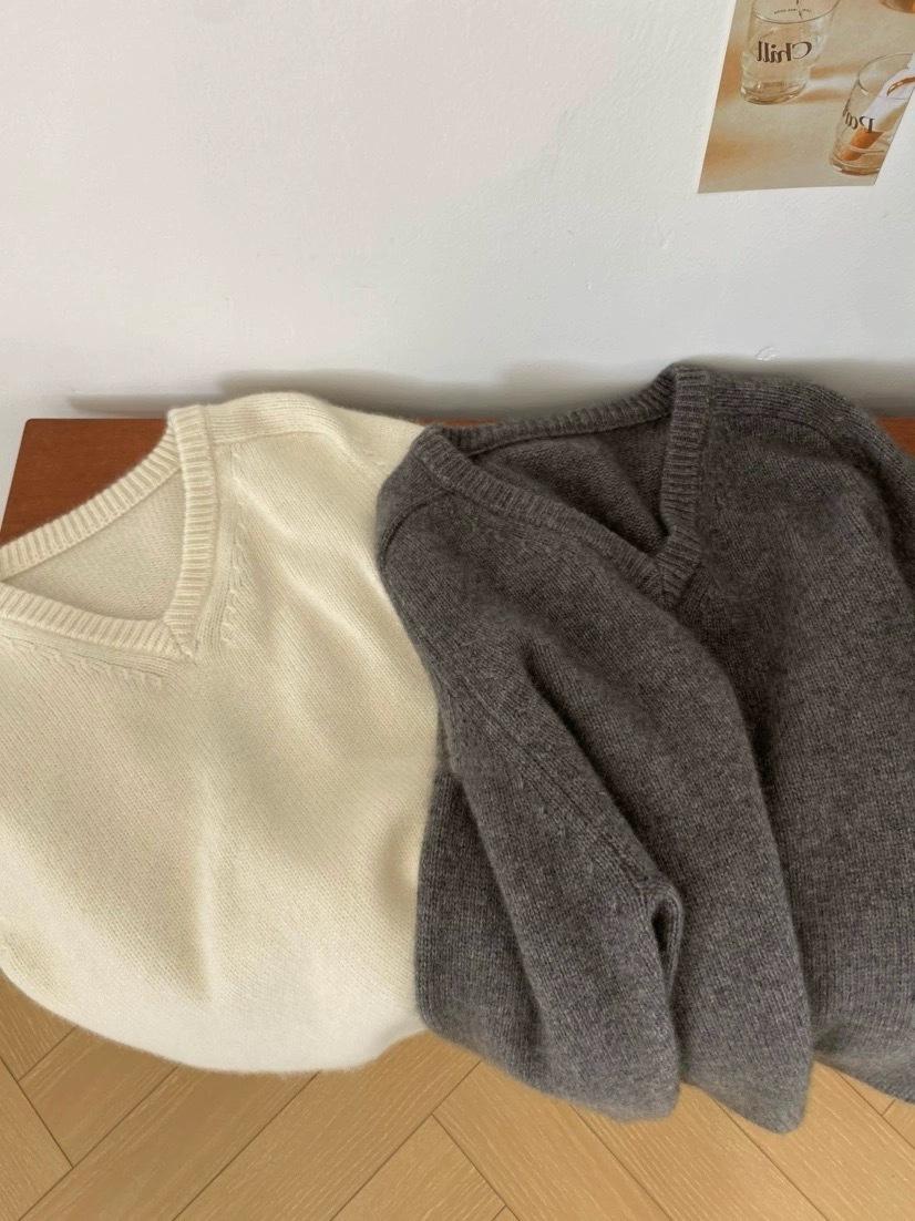 Suéter holgado de manga larga con cuello en V de pura lana de estilo coreano para mujer, otoño e invierno de 2023