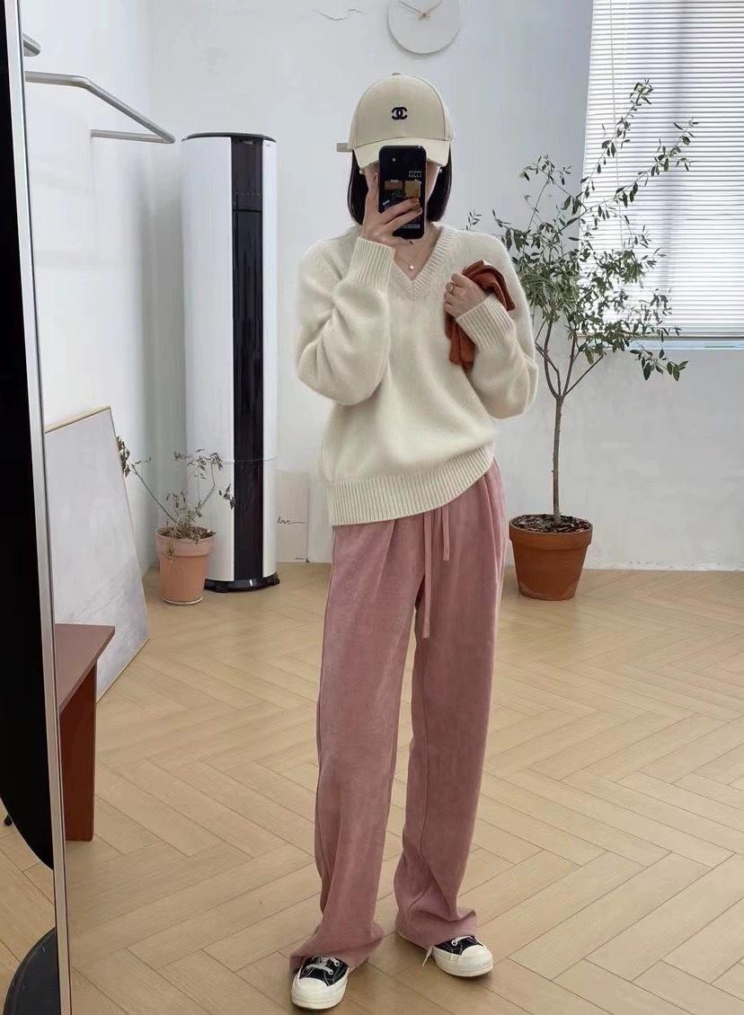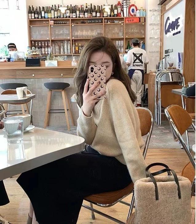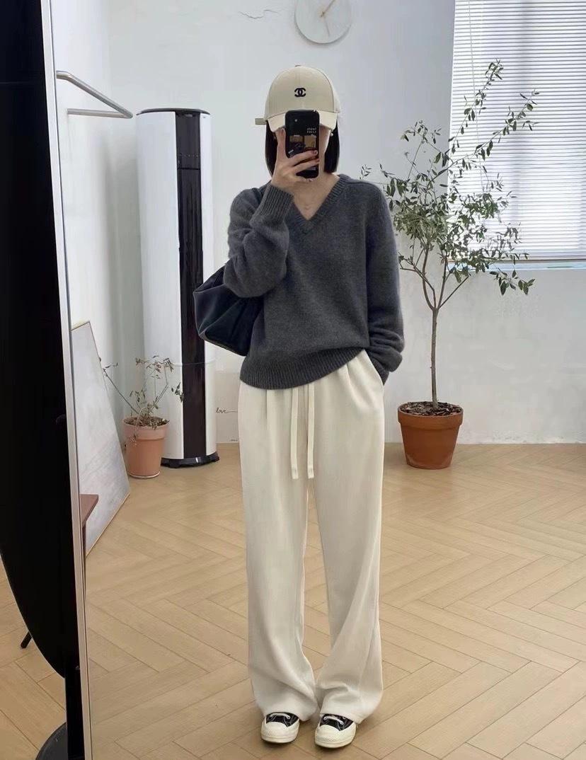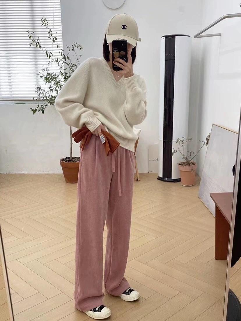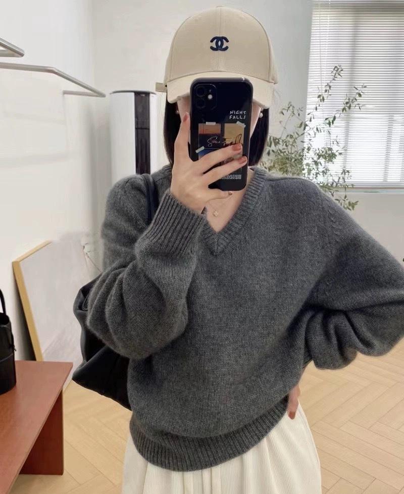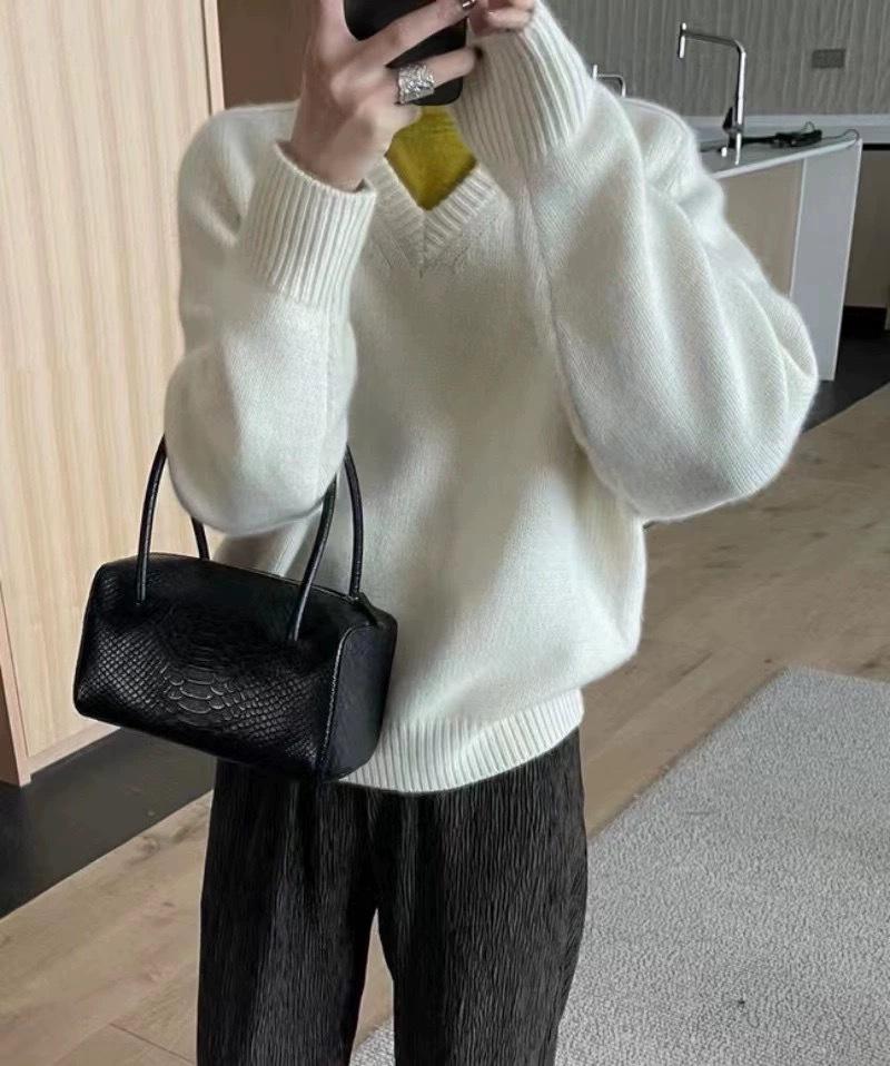 Suéter holgado de manga larga con cuello en V de pura lana de estilo coreano para mujer, otoño e invierno de 2023