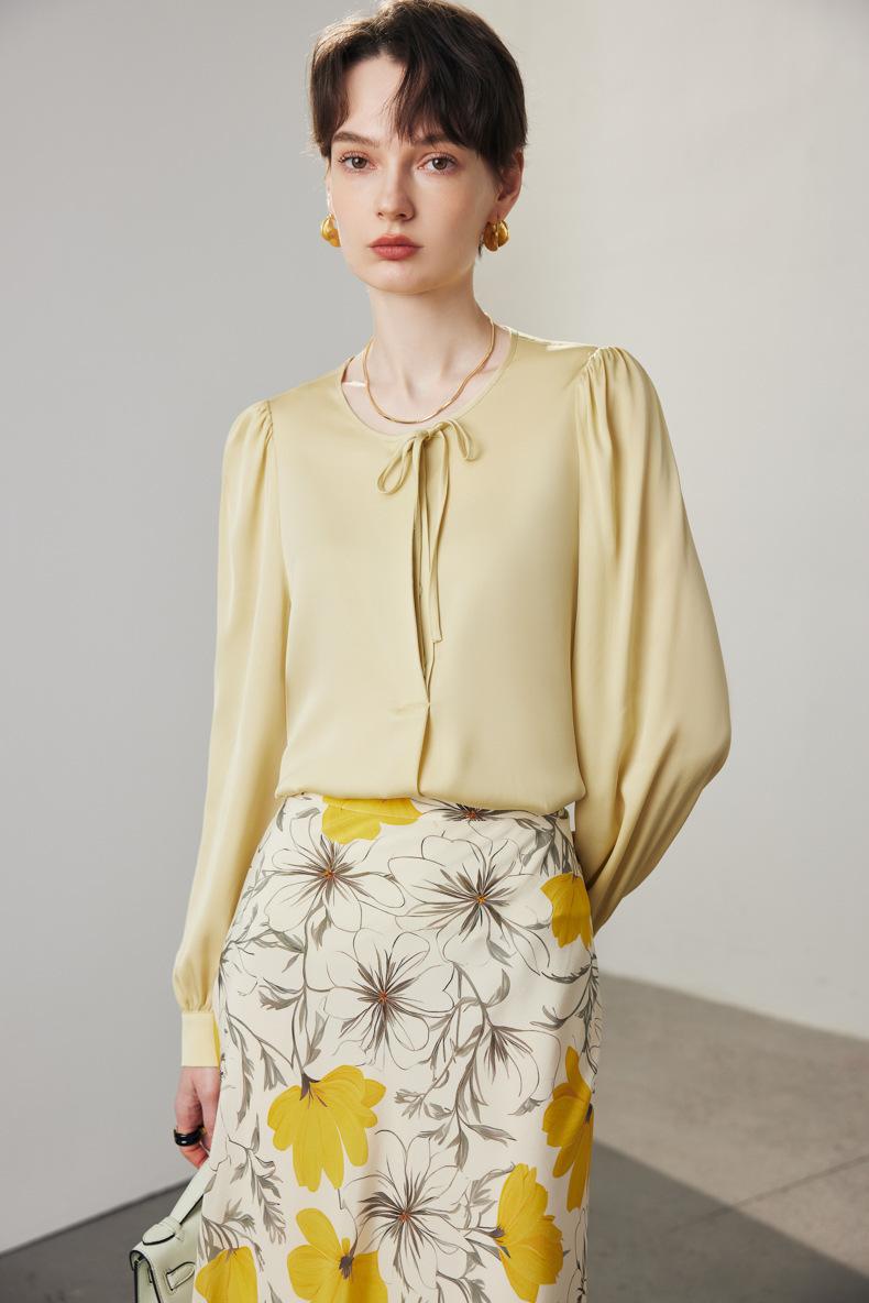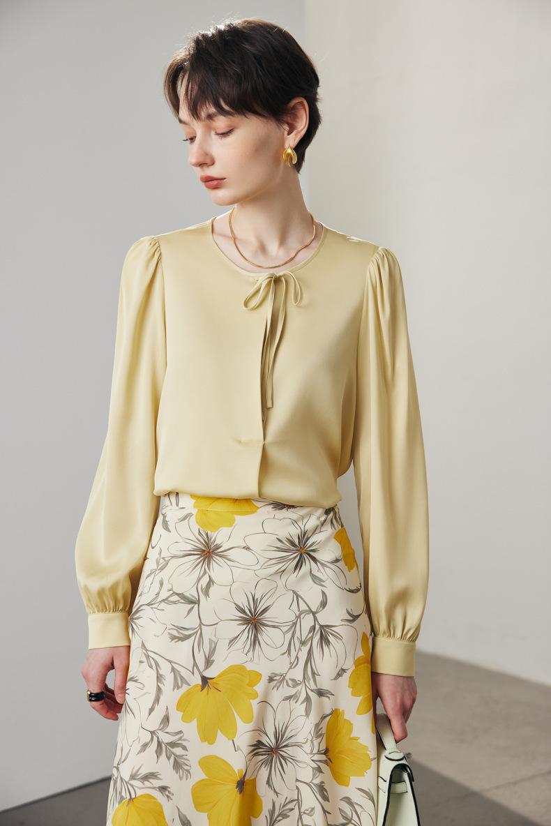 Camisa de Seda para Mujer Primavera y Verano 2025 Nueva 19mm Elástica Doble Qiao Nueva Chinoiserie Estilo Nacional Manga Larga Camisa de Seda de Morera