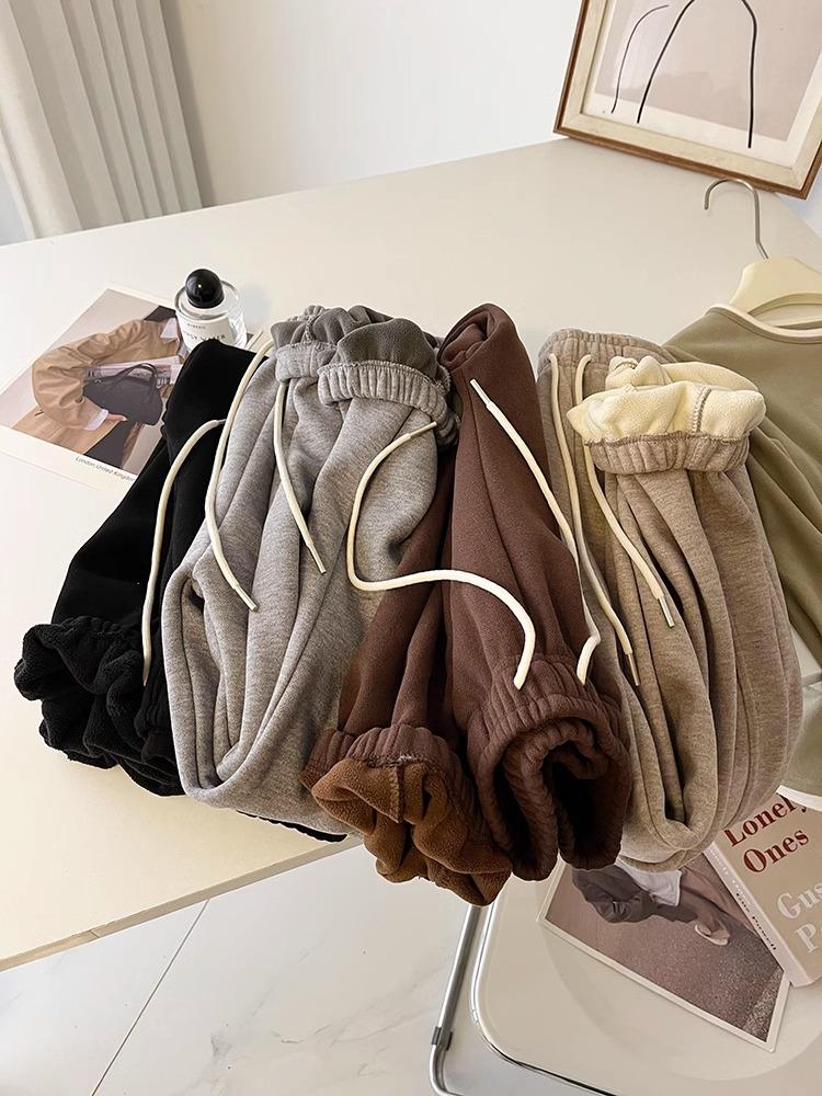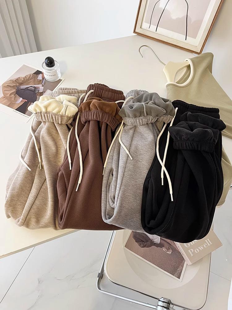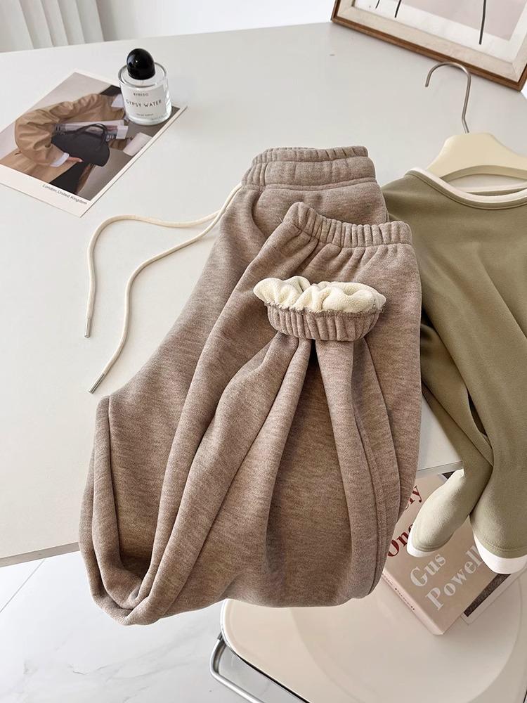 ¡Pantalones deportivos casuales de cachemira gruesa con cordón! Leggings Deportivas Cálidas con Forro Polar de Cintura Alta, Corte Suelto y Efecto Adelgazante para Mujer en Otoño e Invierno