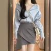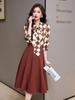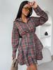 Traje Estampado a Cuadros para Mujer 2025 Primavera Nuevo Estilo Elegante a la Moda Top de Manga Larga Falda Recta Conjunto de Dos Piezas