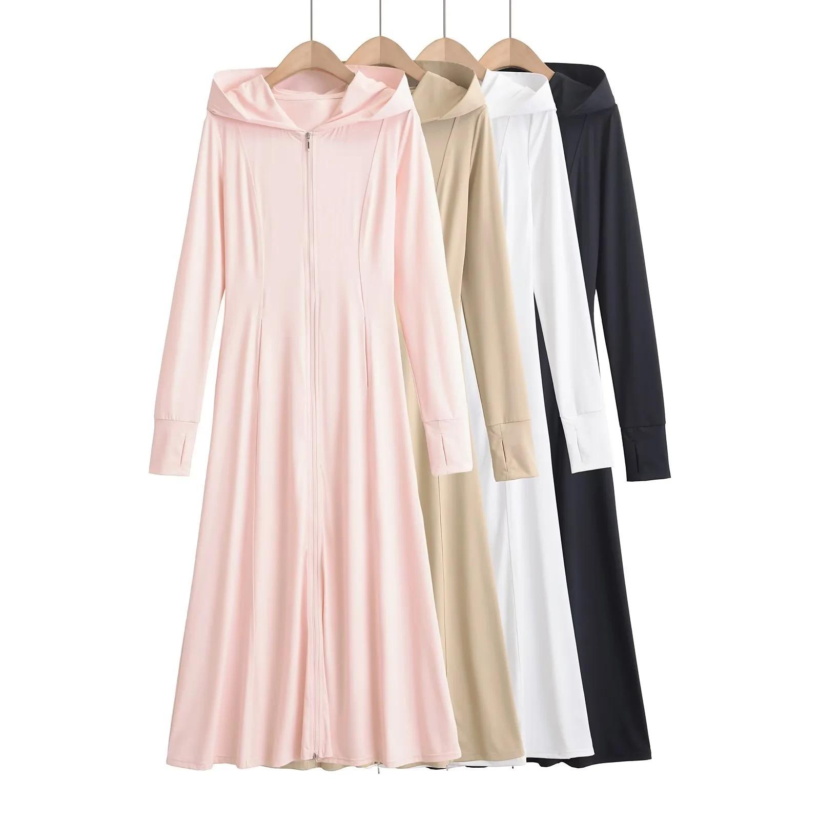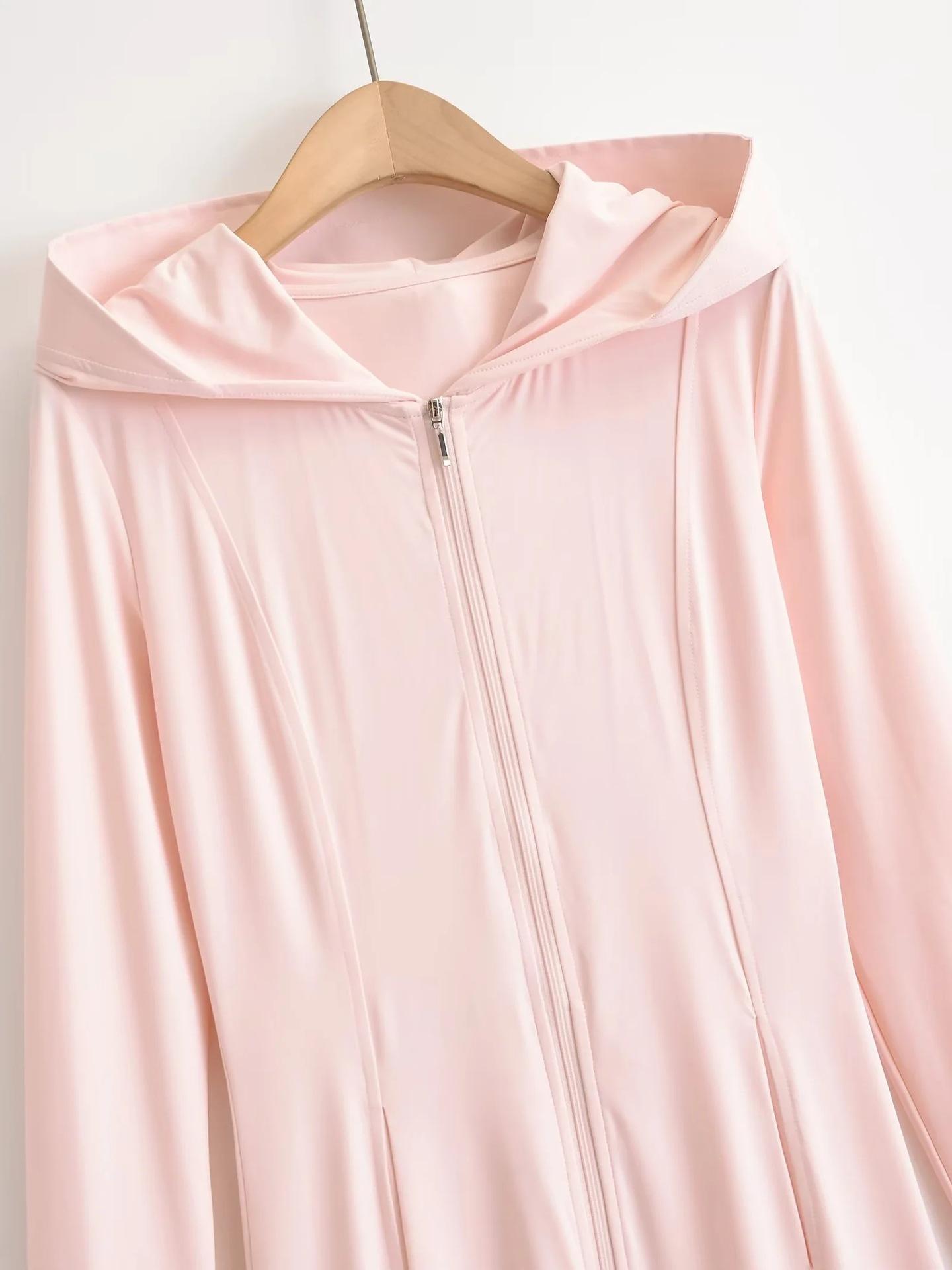 Ropa de protección solar de seda helada de verano para mujer, transpirable, fina, anti-UV, sombrero, chaqueta tipo cárdigan larga