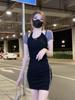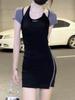 Vestido estilo francés sexy con cuello halter y costuras de colores contrastantes, nuevo diseño de verano, falda tubo adelgazante irregular
