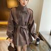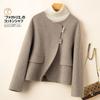 Abrigo grueso de estilo coreano de otoño e invierno de alta gama de 2024, de doble cara, clásico, retro, cruzado, largo, de tweed de doble cara