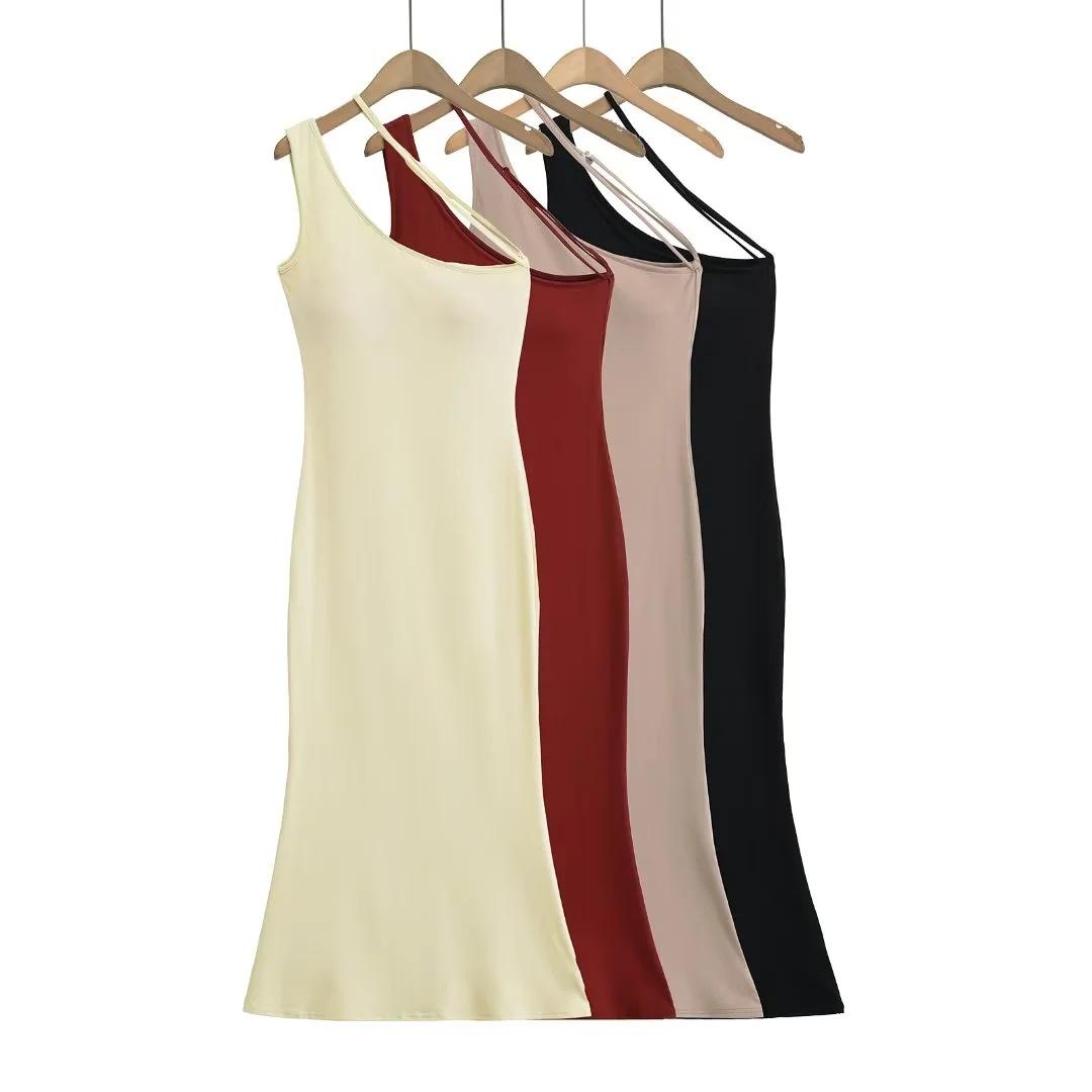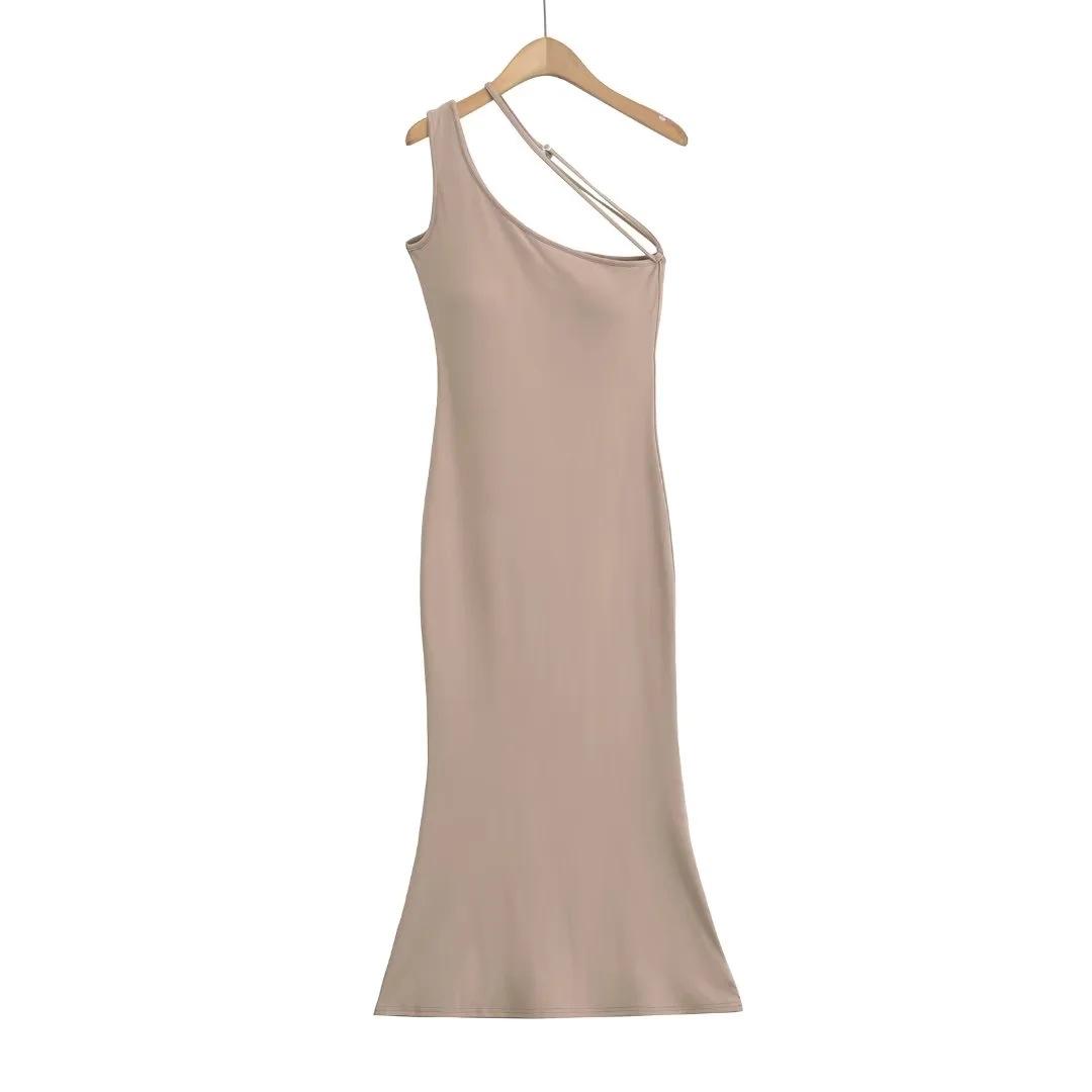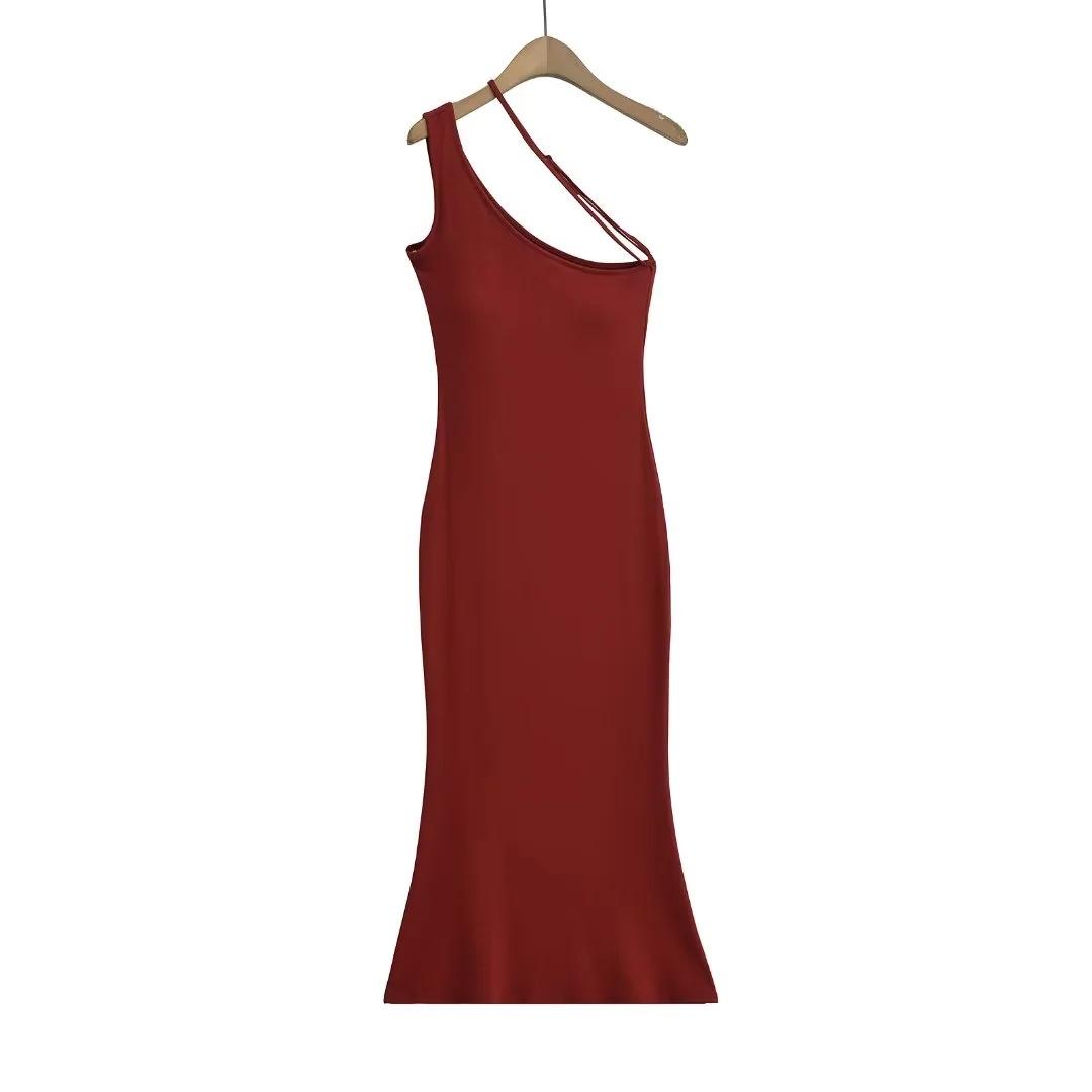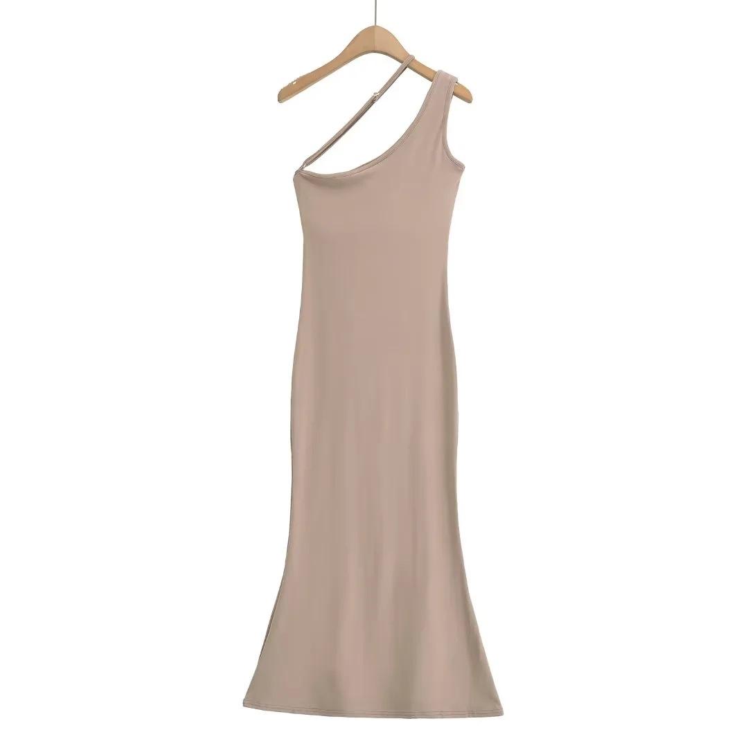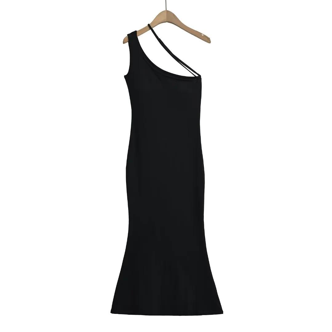 Vestido de verano sexy con cola de pez y almohadillas para el pecho, nuevo estilo 2024, hombros inclinados, cintura ajustada, vestido tipo chaleco ajustado a la cadera.