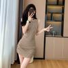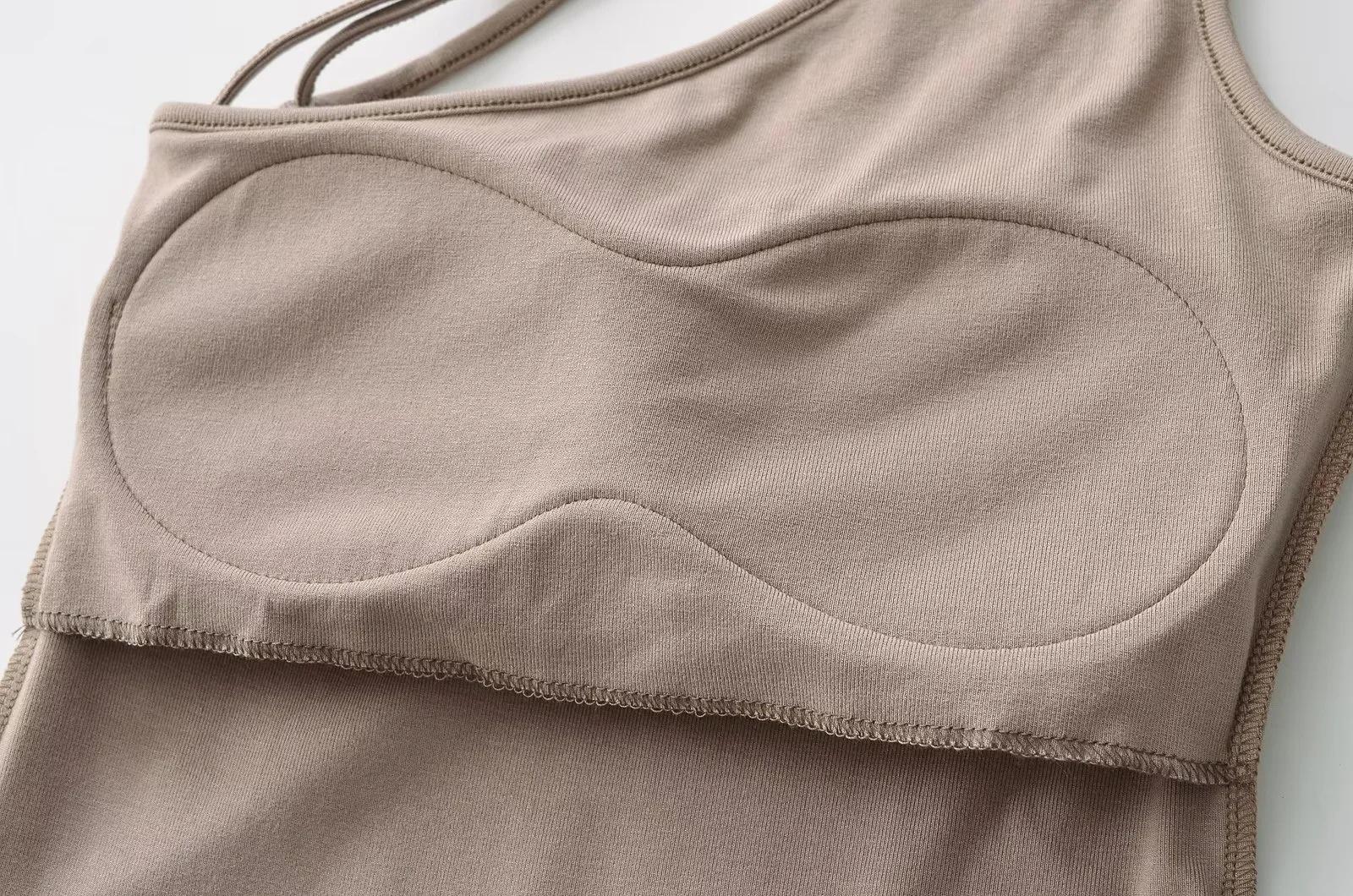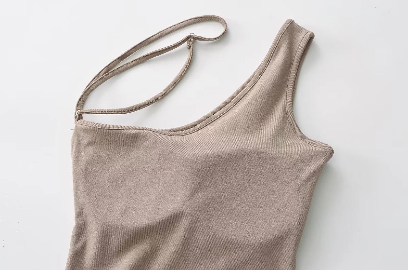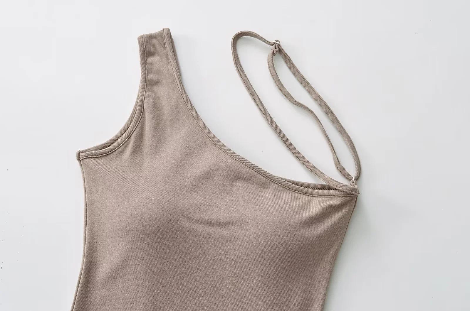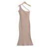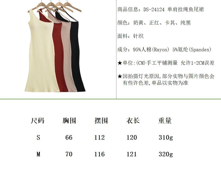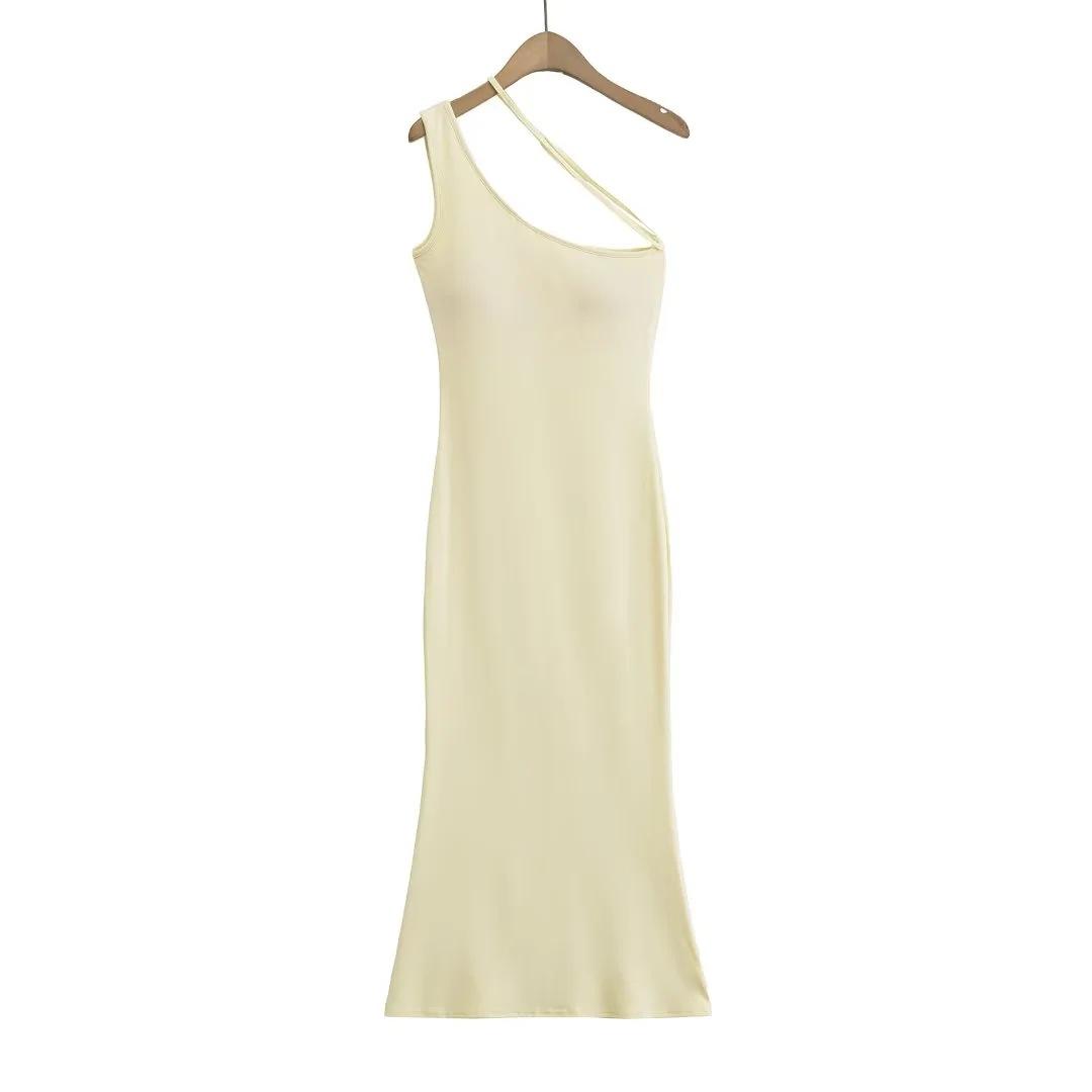 Vestido de verano sexy con cola de pez y almohadillas para el pecho, nuevo estilo 2024, hombros inclinados, cintura ajustada, vestido tipo chaleco ajustado a la cadera.
