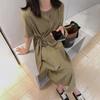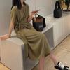 2025 Nuevo Vestido de Moda de Verano para Mujer Francés Retro con Cinturón de Cintura Diseño de Falda Midi Vestido Camisero