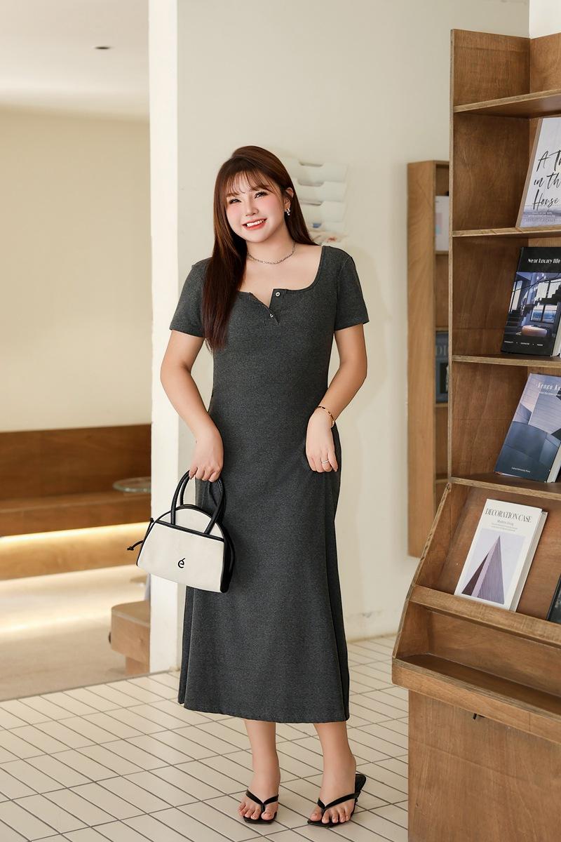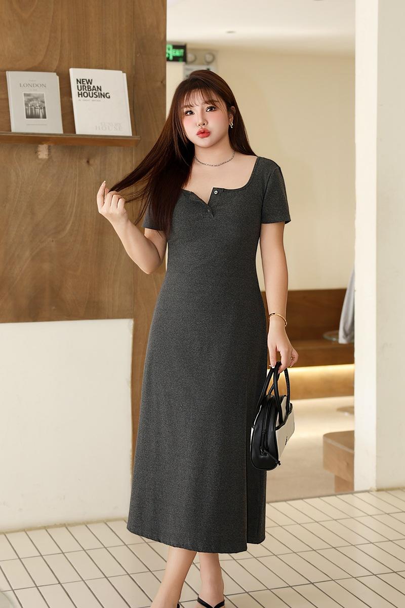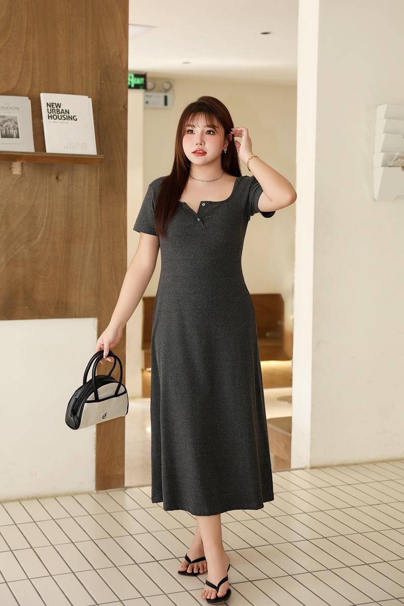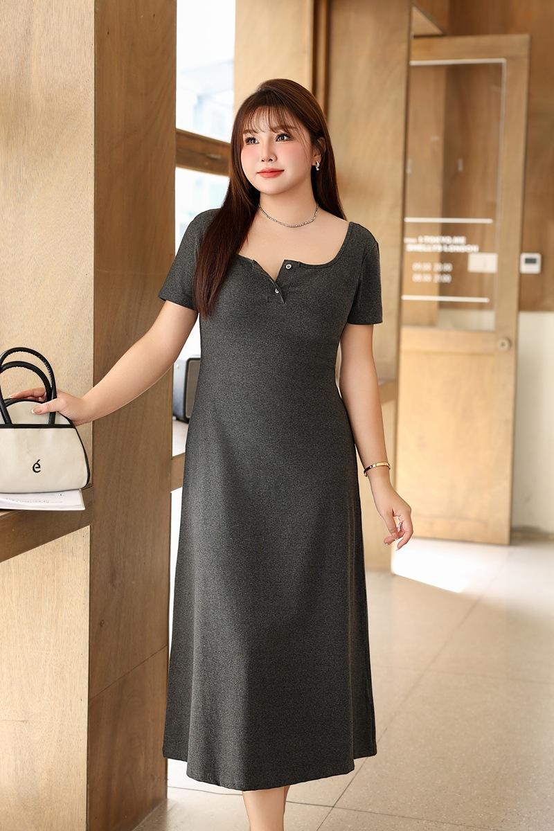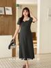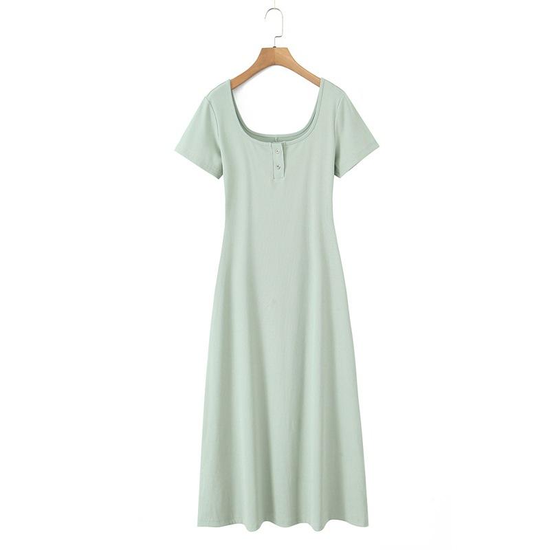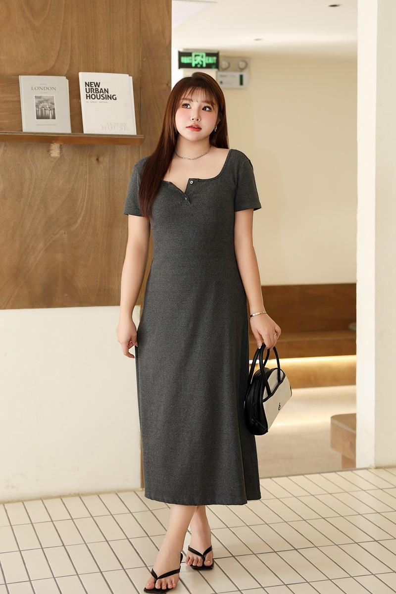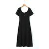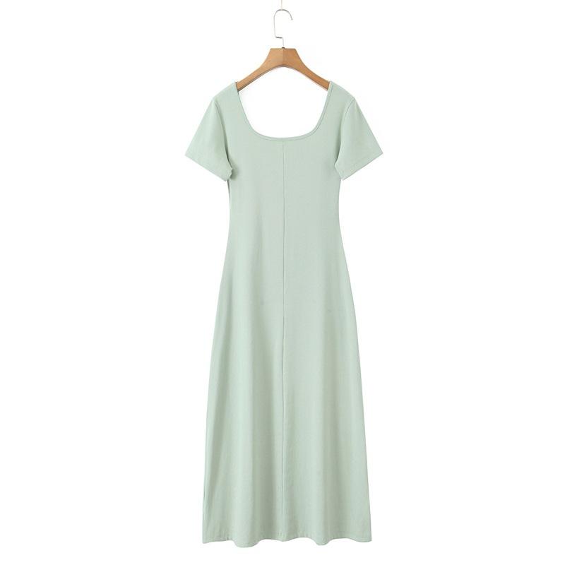 Vestido Largo de Cita con Cuello Cuadrado Borracho Ajustado Hidratante 8912 Talla Grande Estilo Hermana Real Ajustado Estilo Sencillo