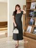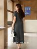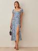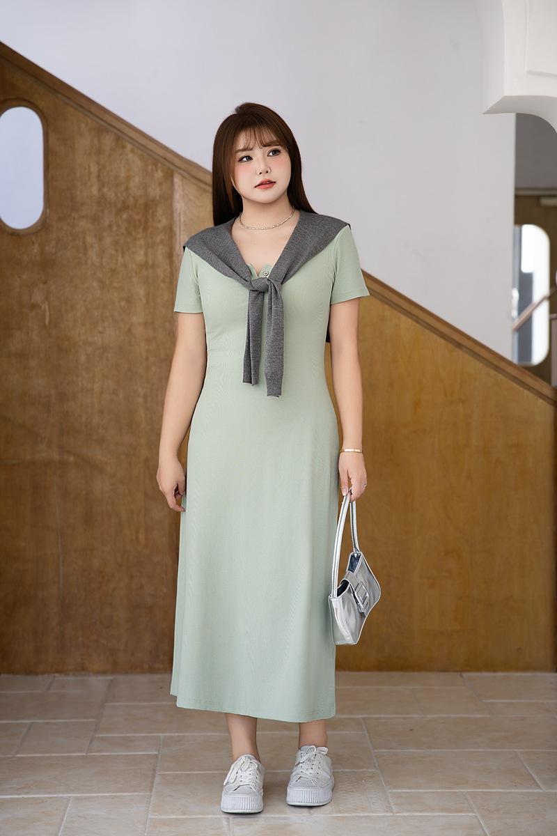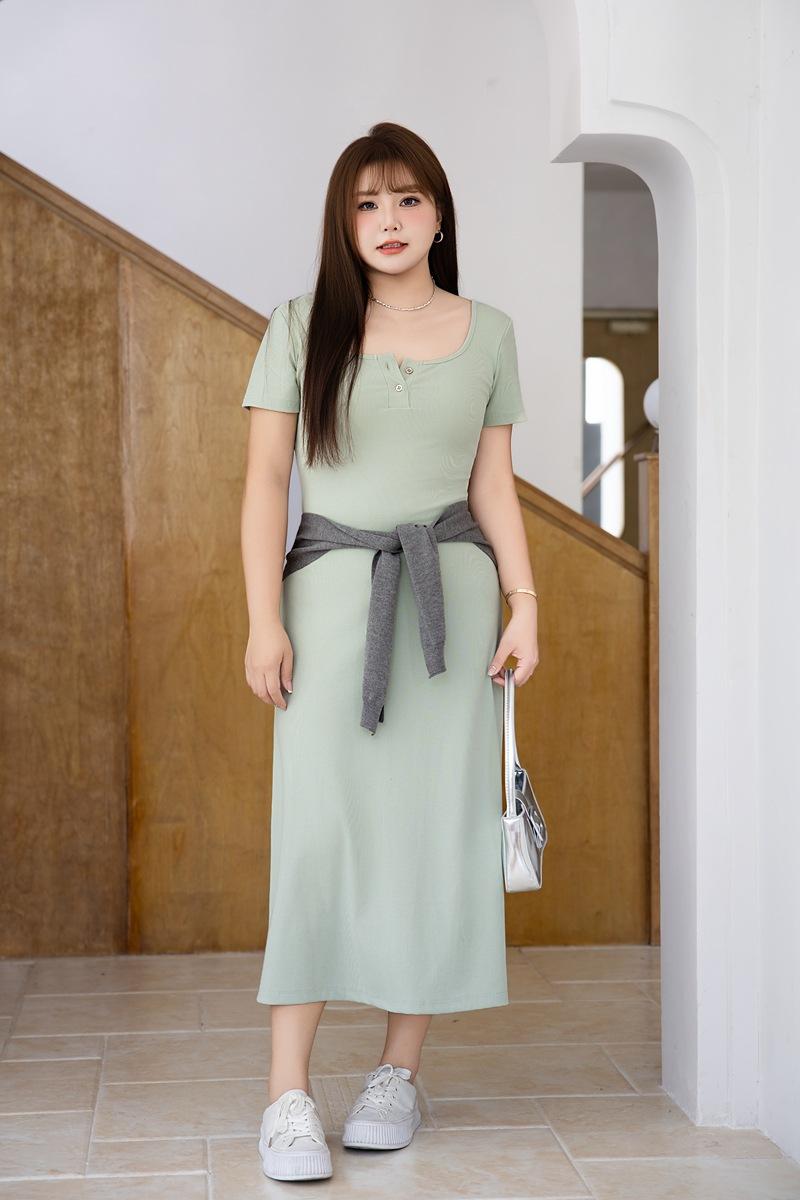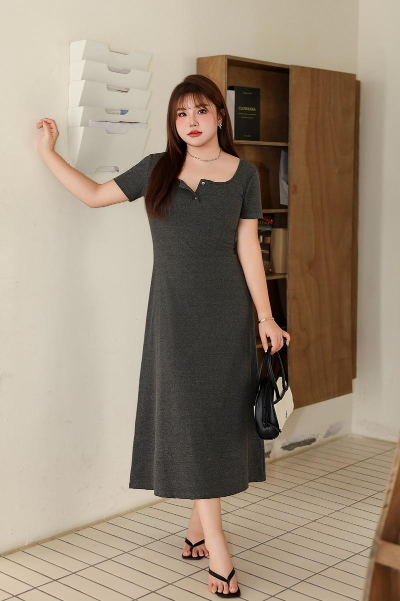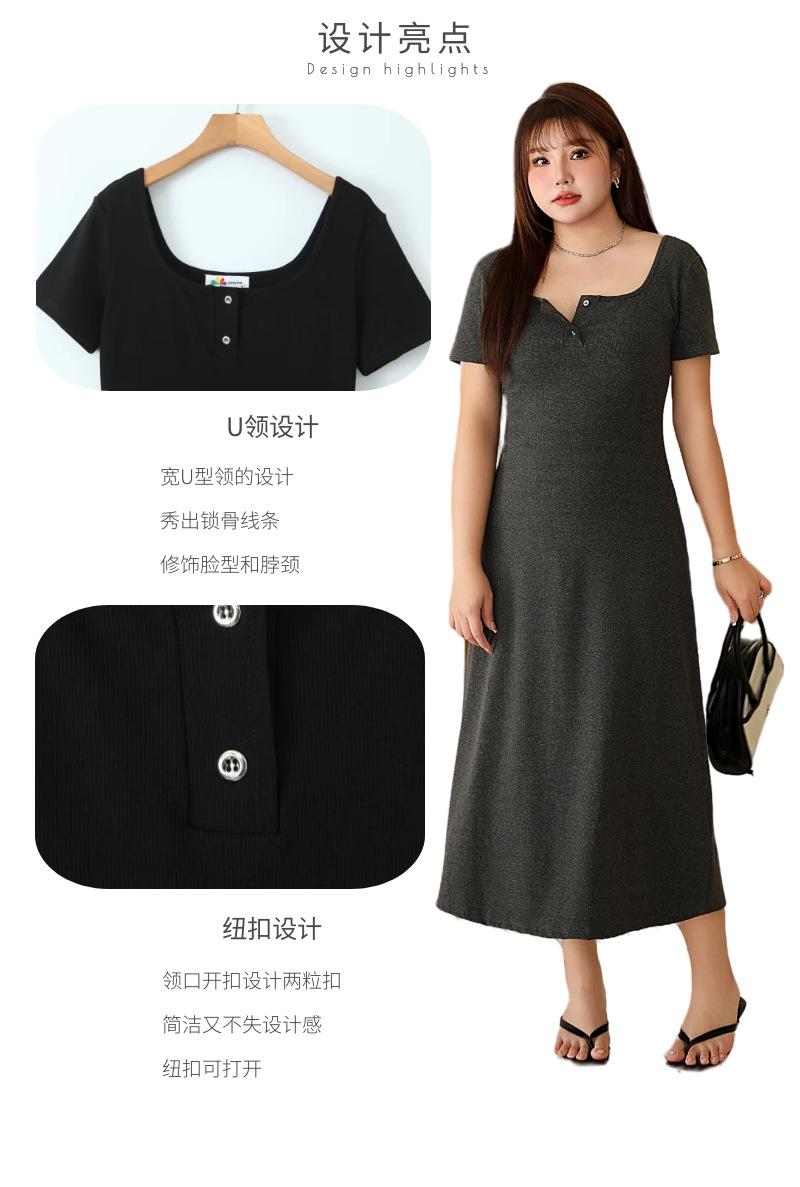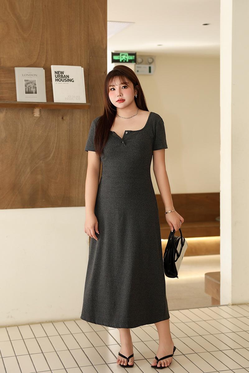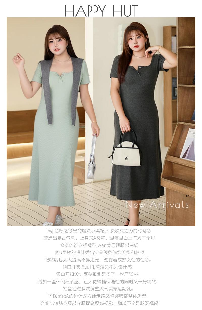 Vestido Largo de Cita con Cuello Cuadrado Borracho Ajustado Hidratante 8912 Talla Grande Estilo Hermana Real Ajustado Estilo Sencillo