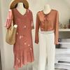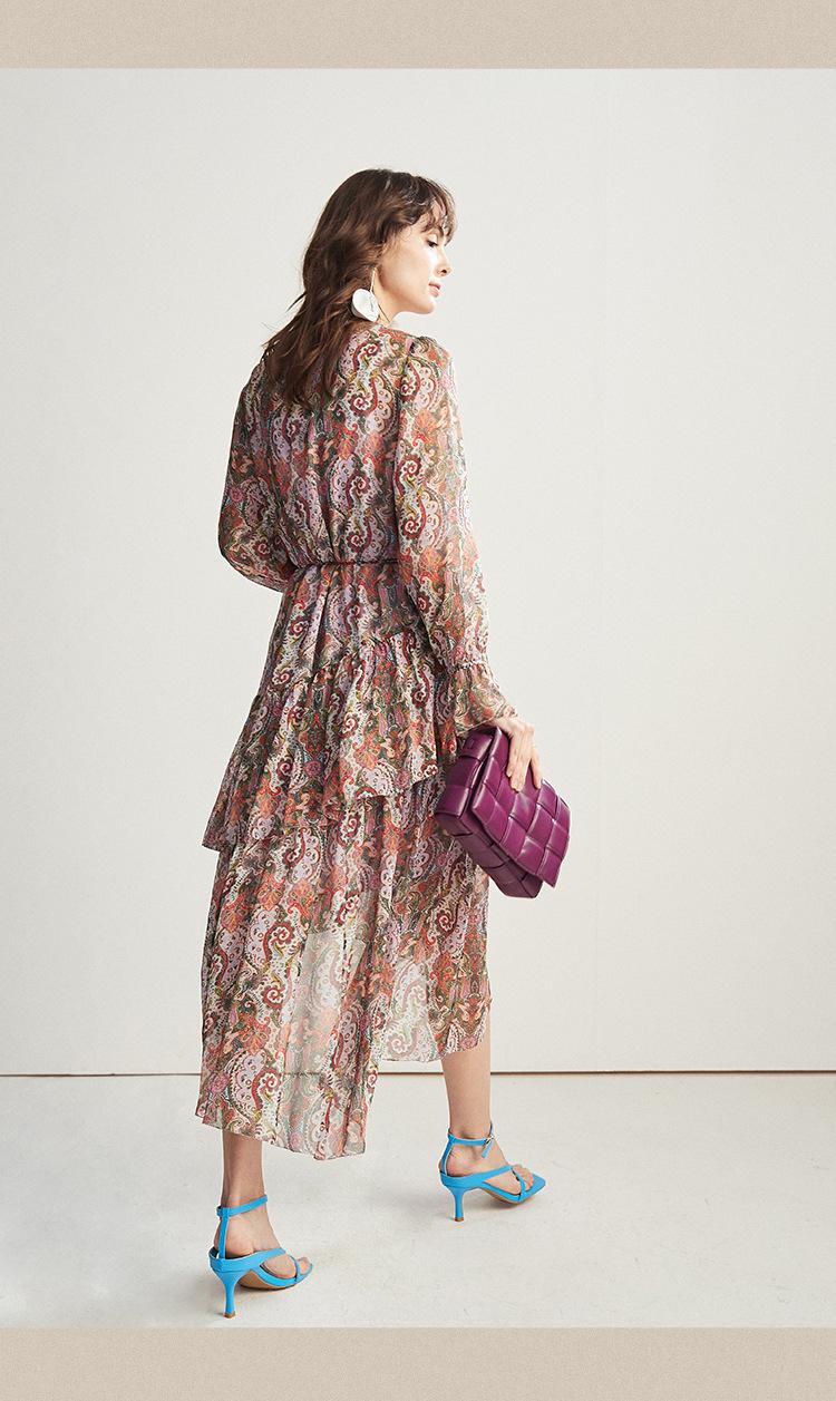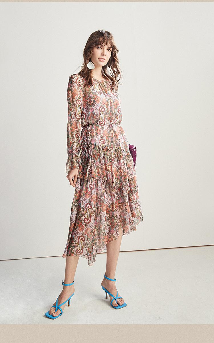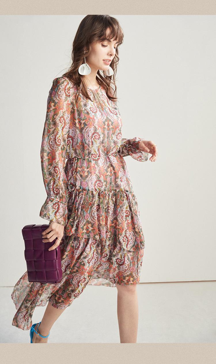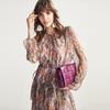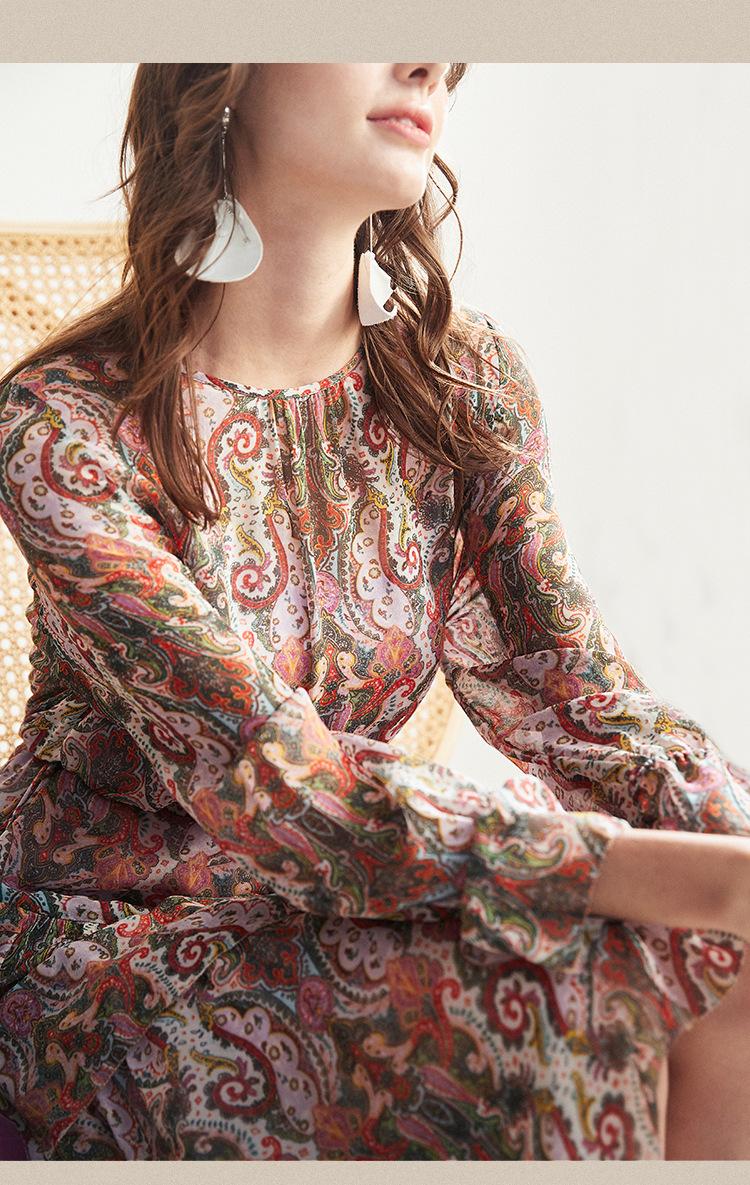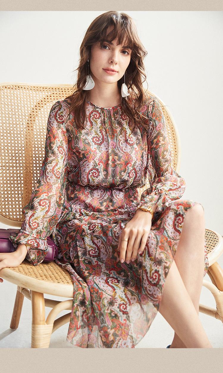 Vestido de seda para mujer, seda morera, primavera y verano 2023, nuevo, manga larga, estilo festivo de hadas, falda floral de longitud media