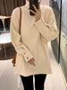 Camisa de terciopelo con cuello alto y medio para mujer, camiseta de manga larga de longitud media holgada interior de otoño e invierno, top informal de moda