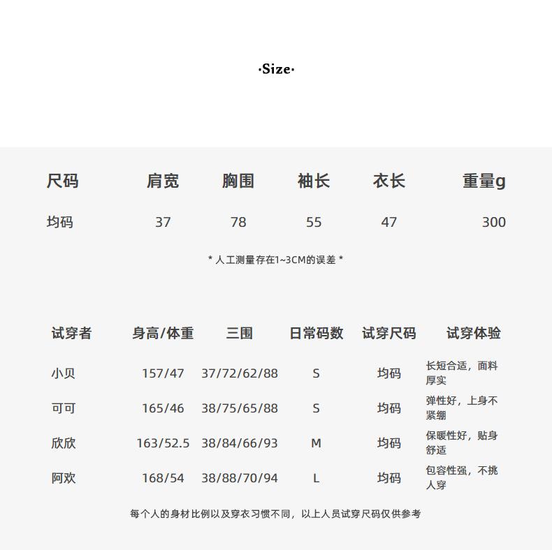 Pink, Gray, Black, Apricot, Lake blue, Pickles green, Creamy yellow, Green, Size chart
