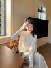 [Ge Ming] Cárdigan de Punto Suéter Chaqueta para Mujer 2025 Otoño Nuevo Estilo Suave Manga Larga Top W636H