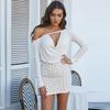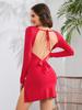 Vestido de otoño e invierno 2024, nuevo, transfronterizo, sexy, sin espalda, con abertura, cuello alto, manga larga, a la cadera, para mujer europea y americana