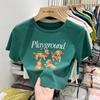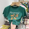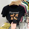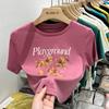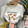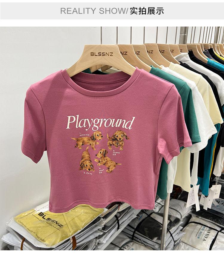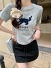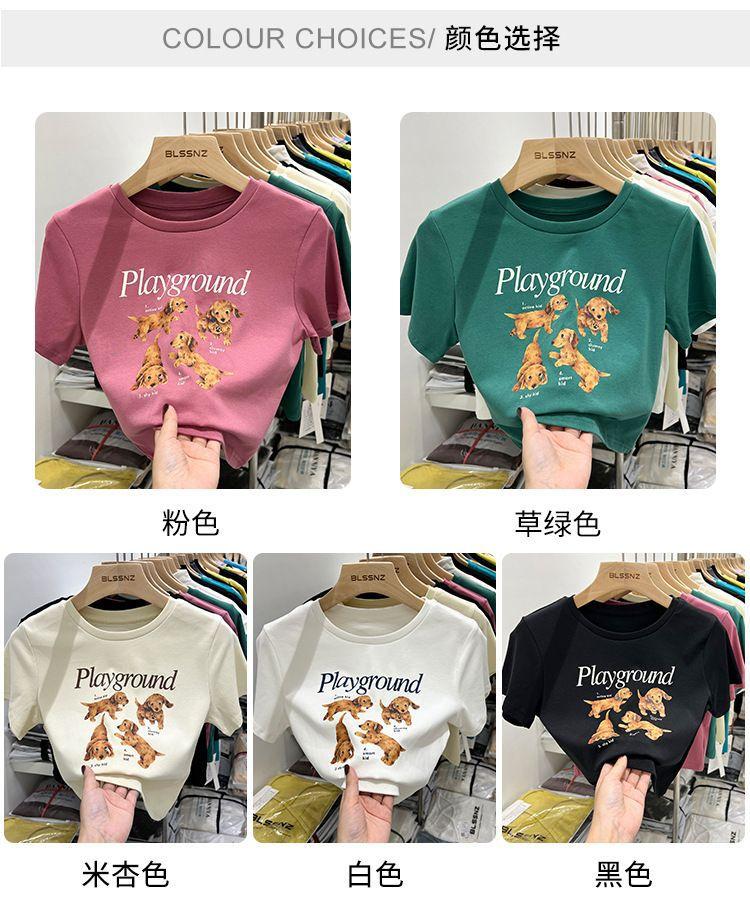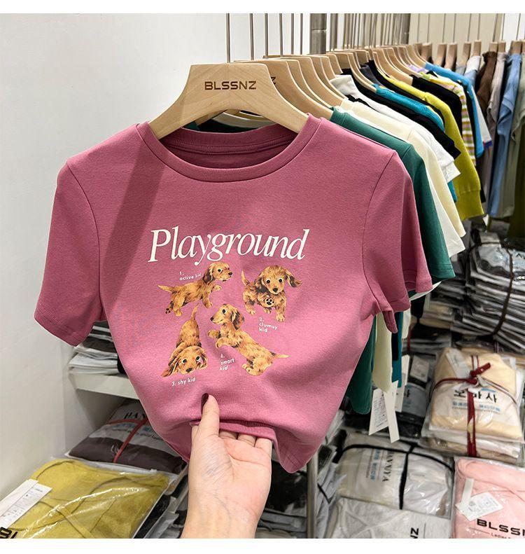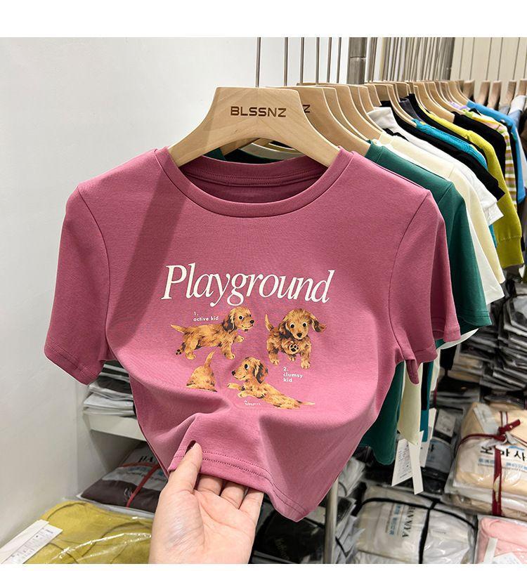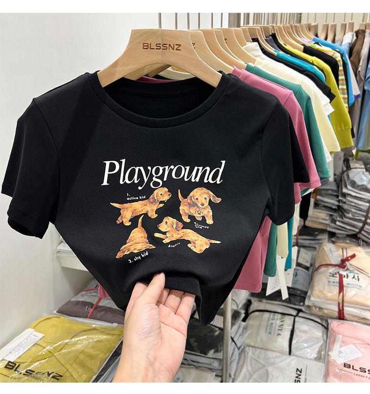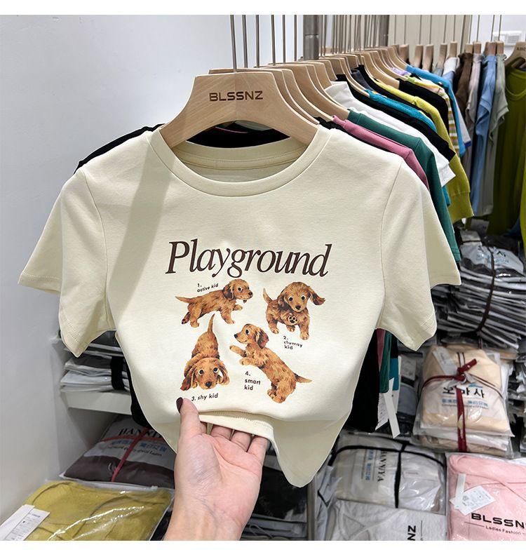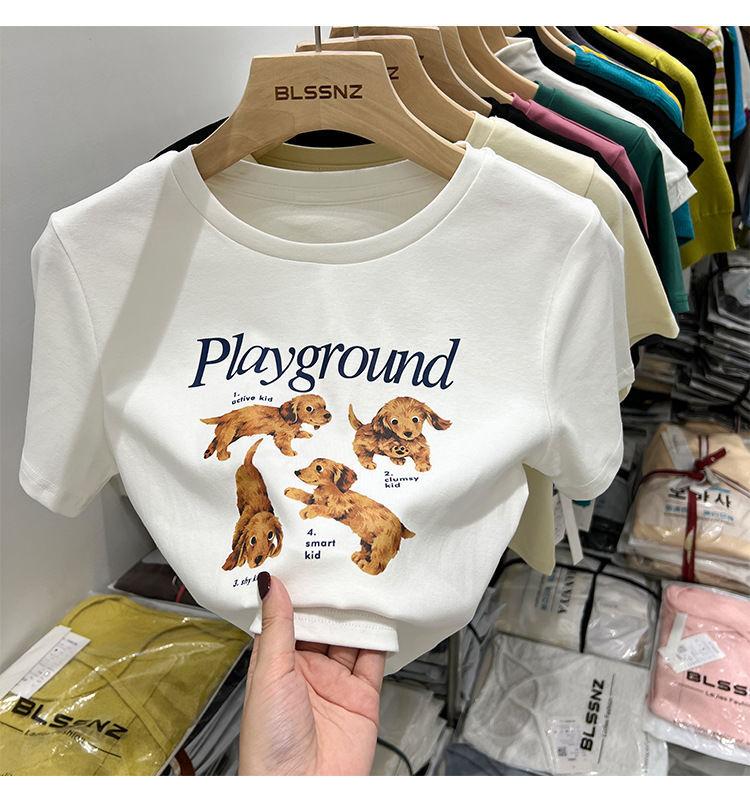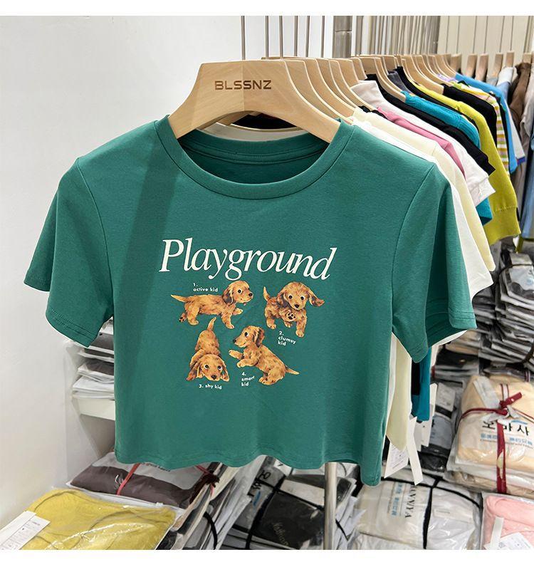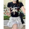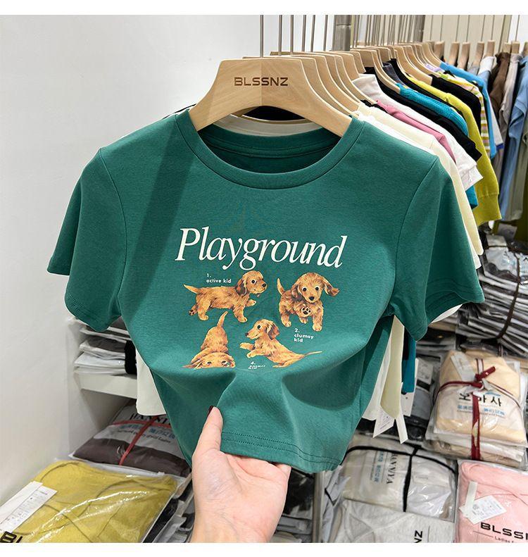 Camiseta de hombro estilo americano para mujer, de manga corta, de verano, nueva, estampada, única, elegante, moderna, adelgazante, camiseta corta
