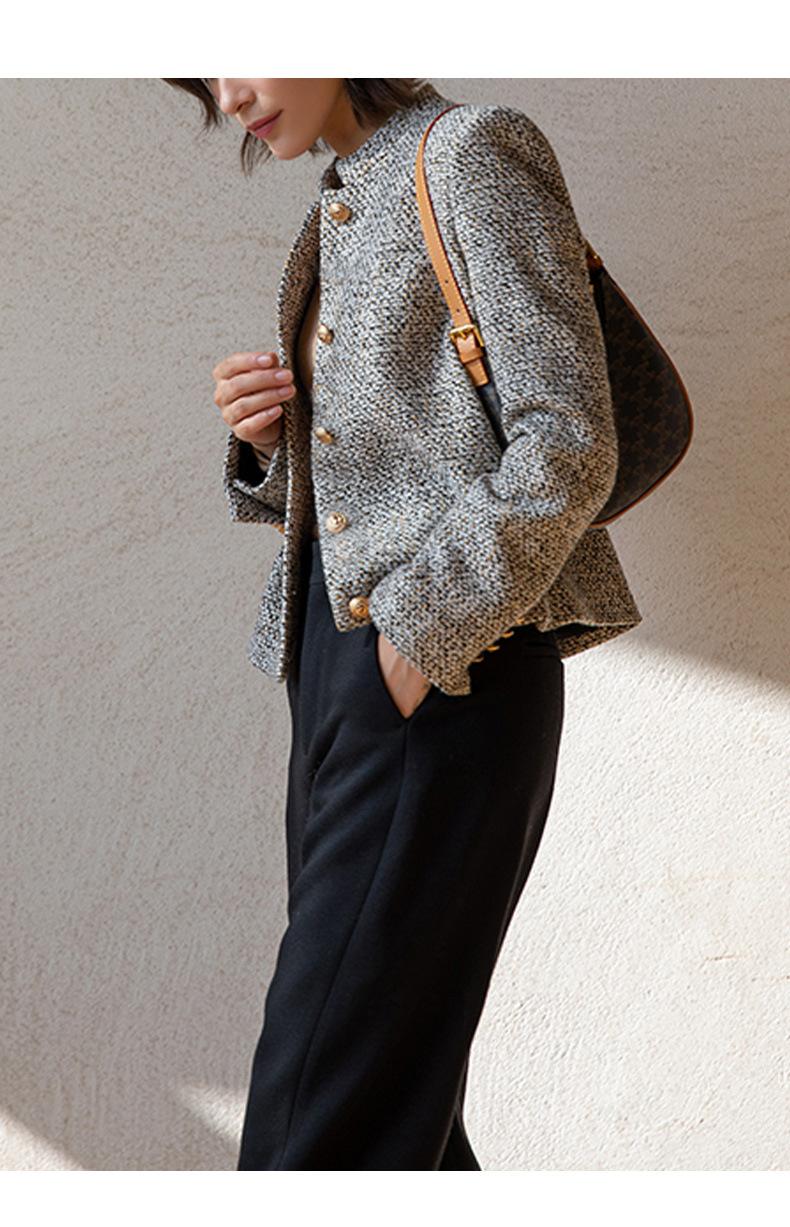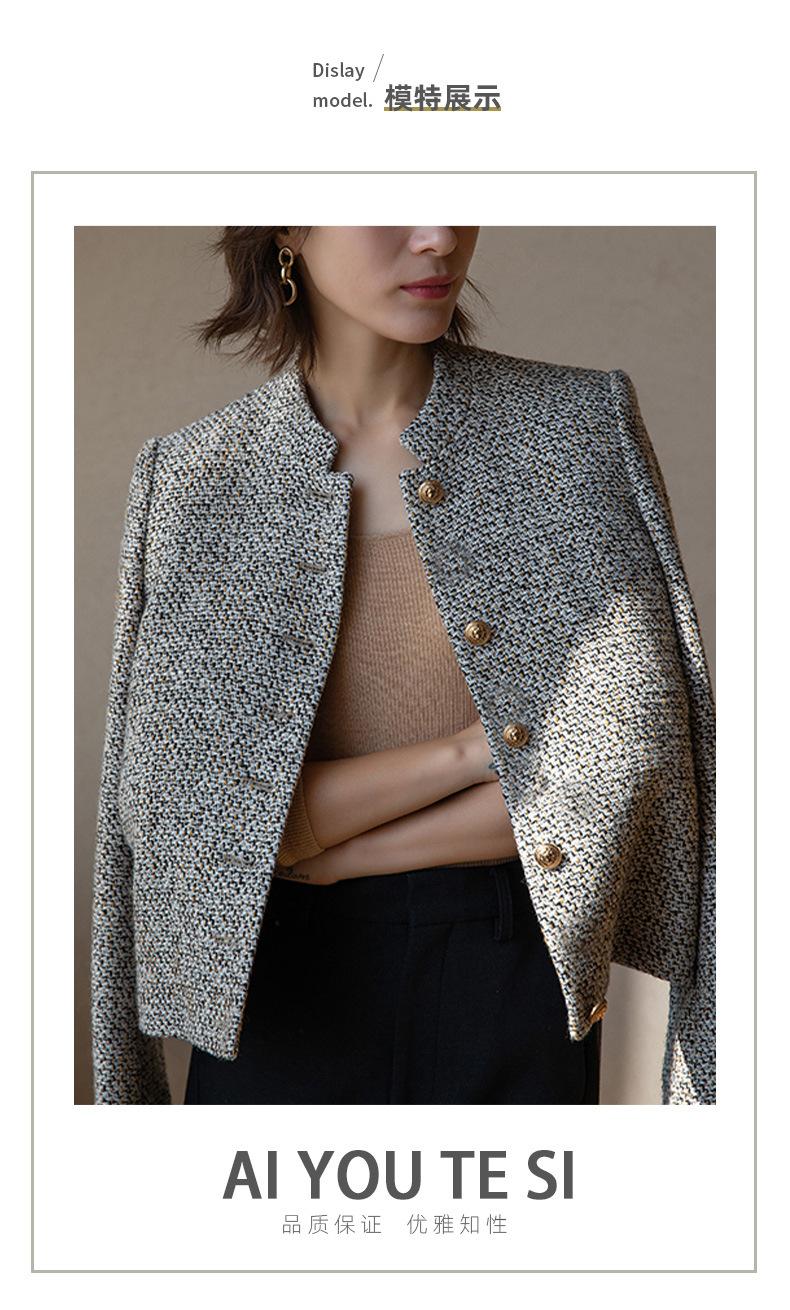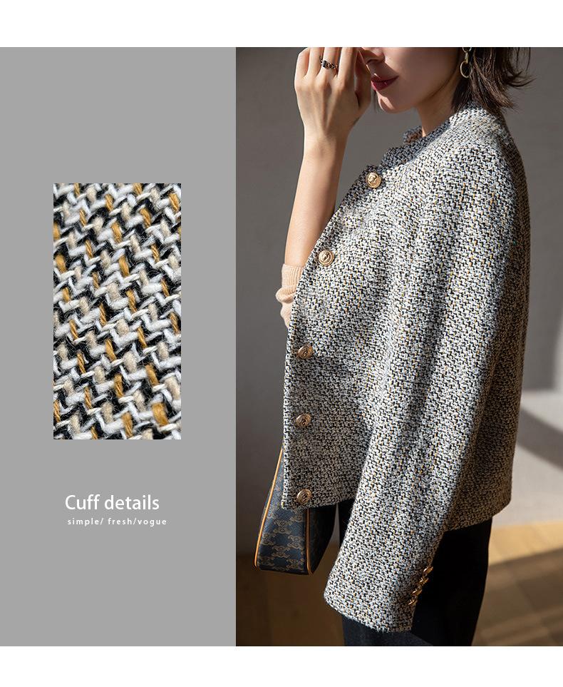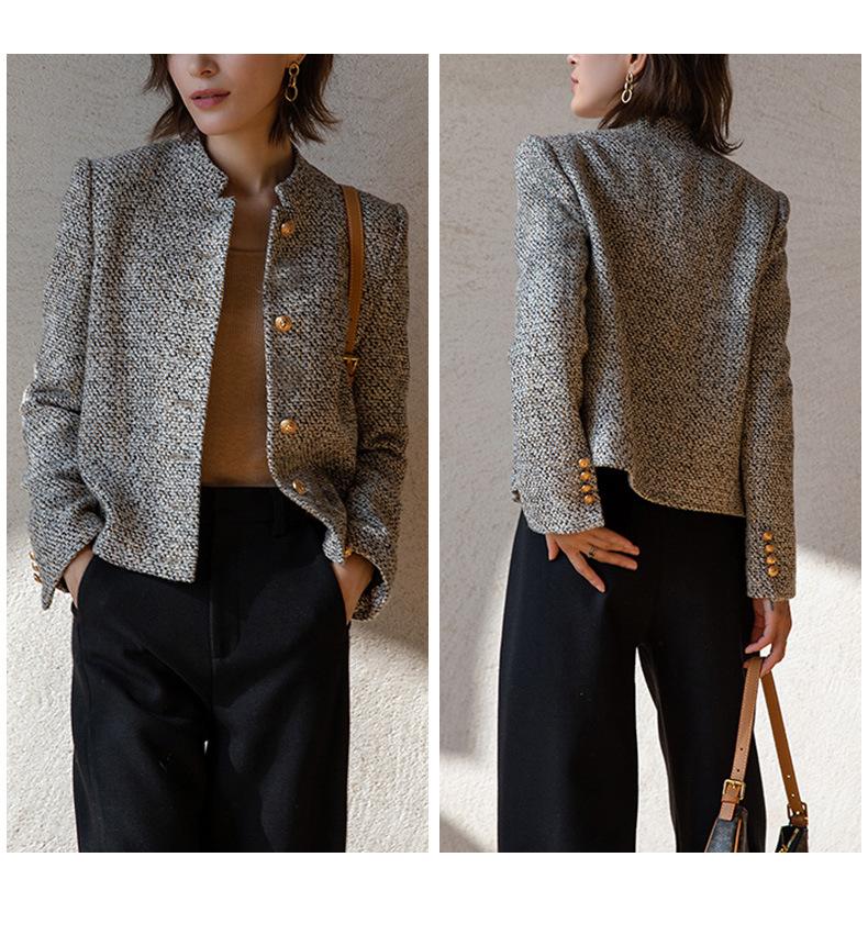 Sensación de Lana de Alta Gama, Estilo Simple, Chaqueta para Mujer Inspirada en Chanel, Ropa de Otoño para Mujer, Tweed, Estilo Corto, Top de Moda para Mujer