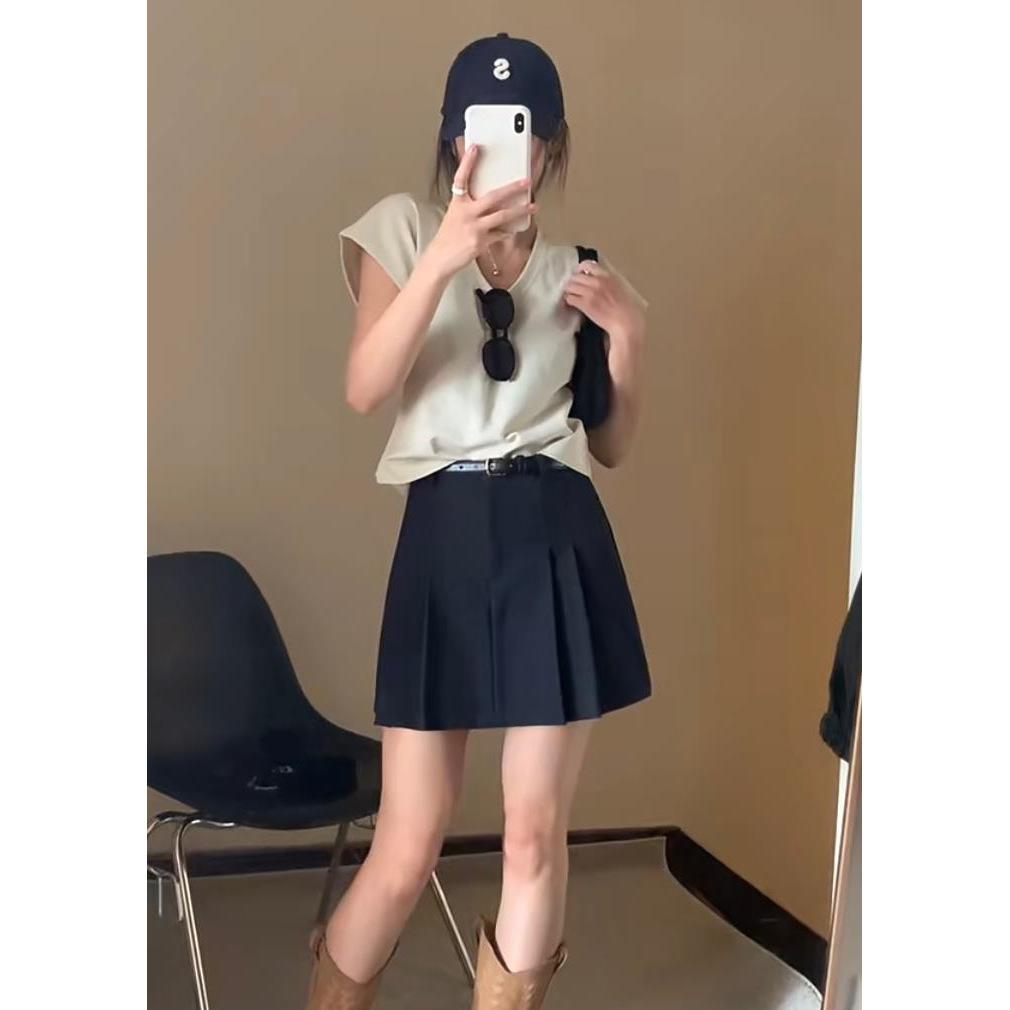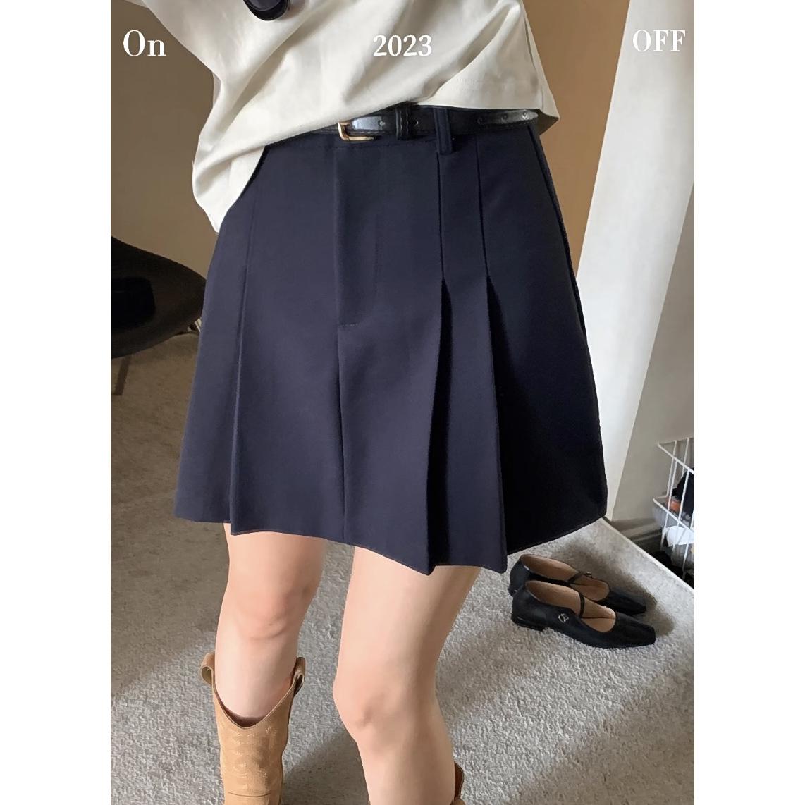 Falda plisada de estilo preppy empalmada, moderna y versátil, 2025 Verano Nuevo Falda acampanada Falda casual Culottes Trendy
