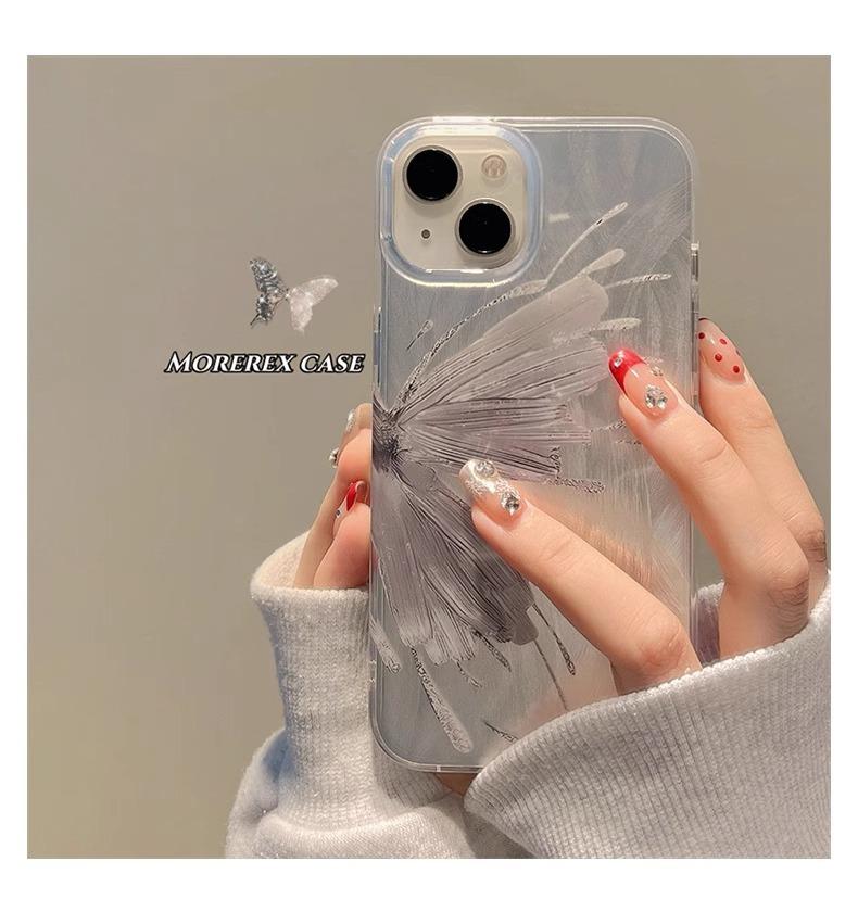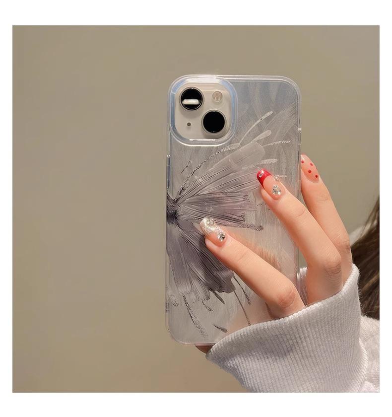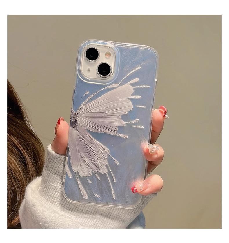 Mariposa de tinta salpicada de hilo de plumas de alta calidad adecuada para funda de teléfono móvil iPhone15promax Apple 14 de doble capa 13 resistente a caídas duras