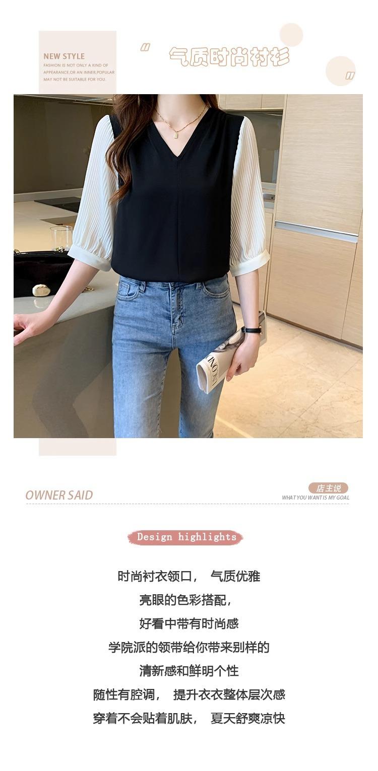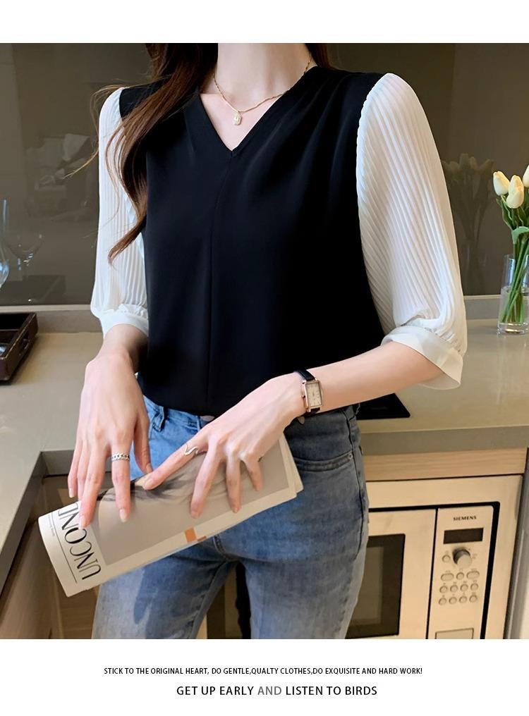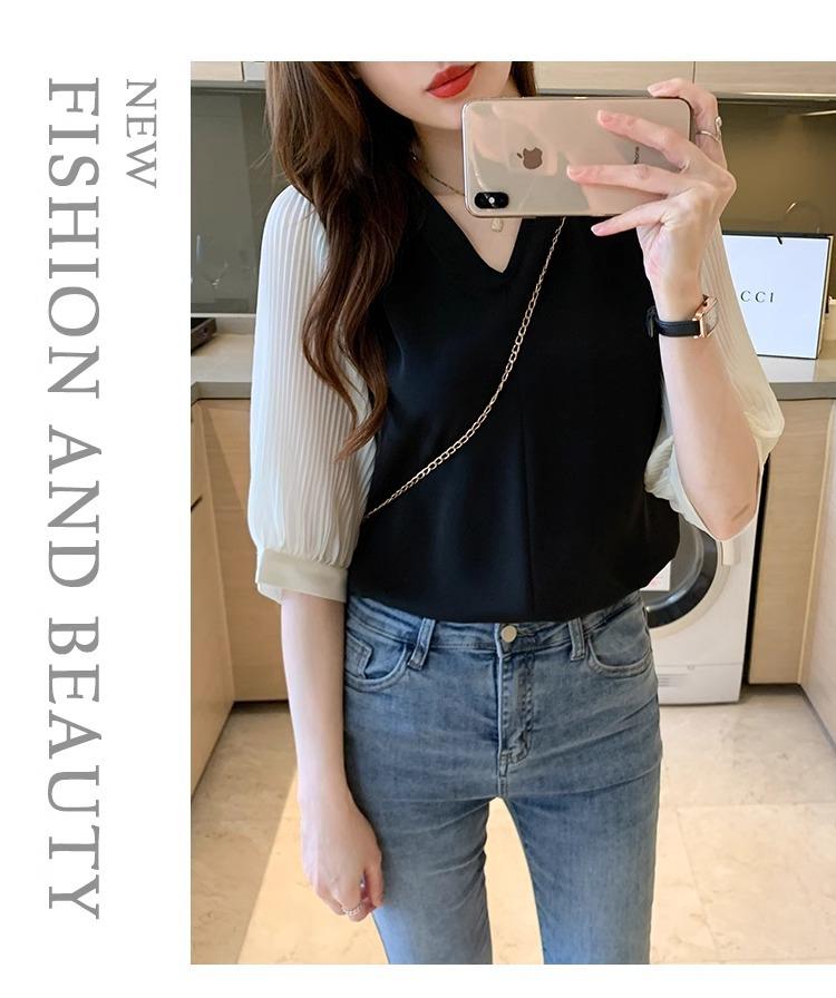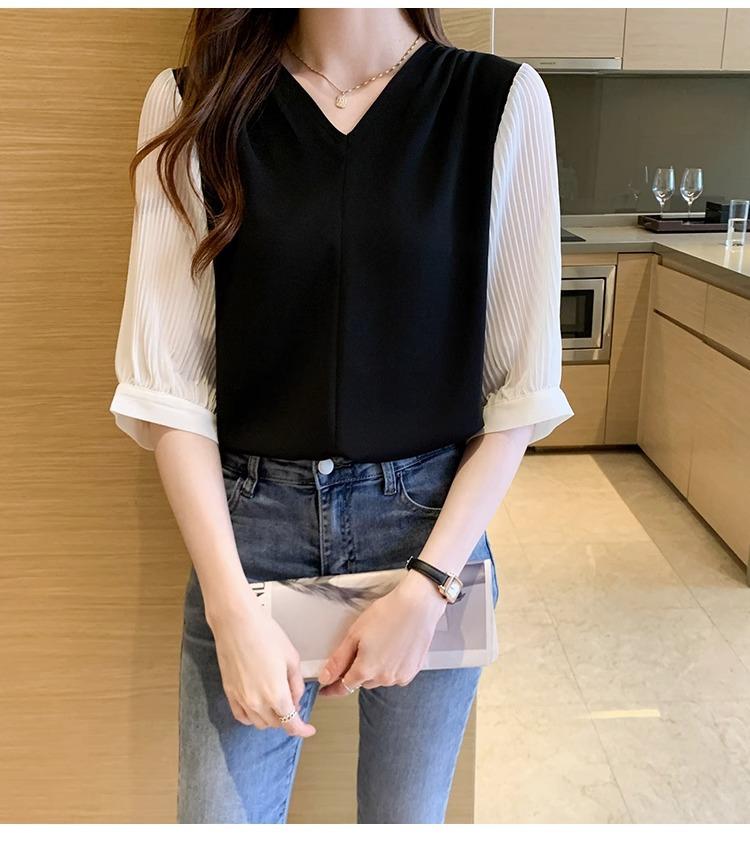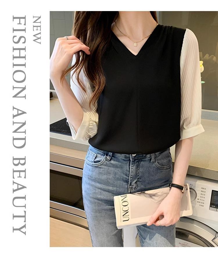 Camisa de Gasa para mujer ropa de verano 2024 nueva manga tres cuartos moda camisa pequeña top de manga corta ropa manga media moda