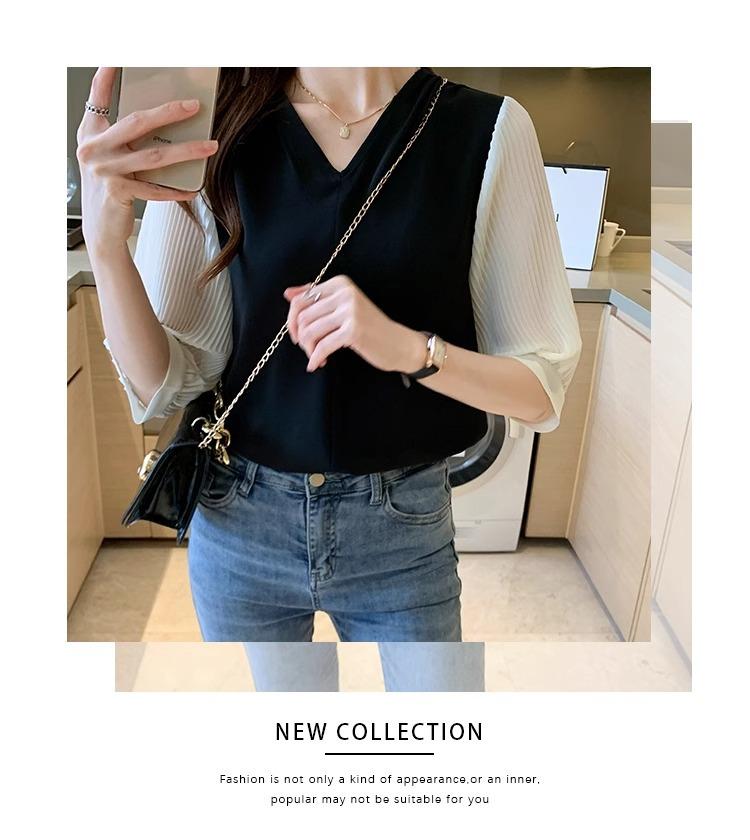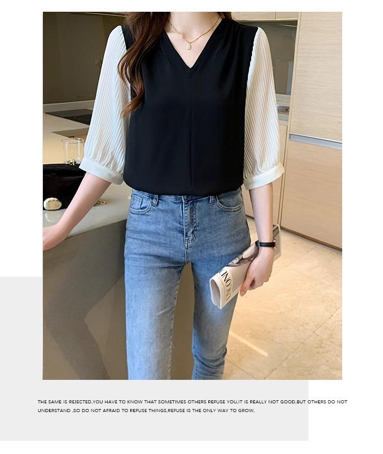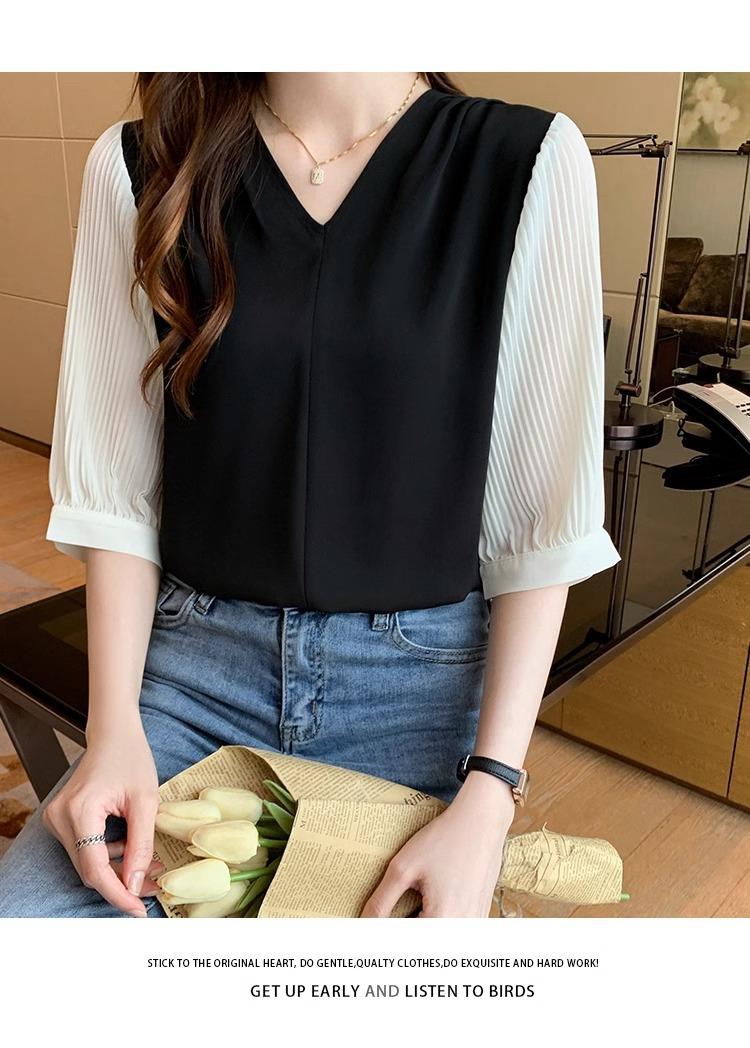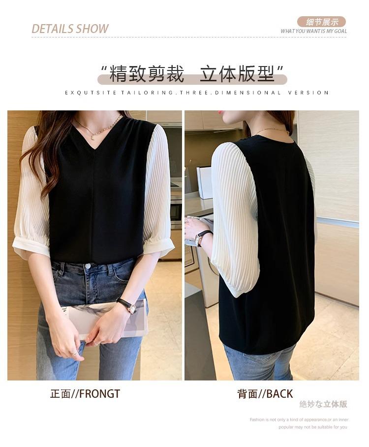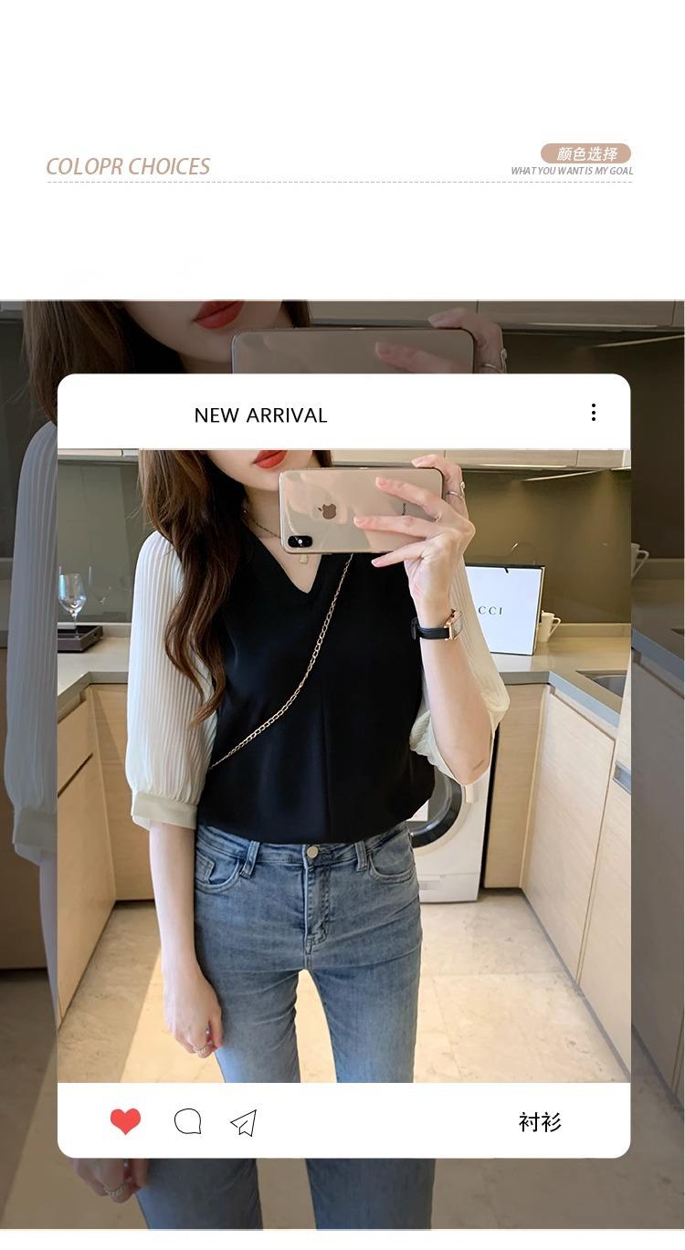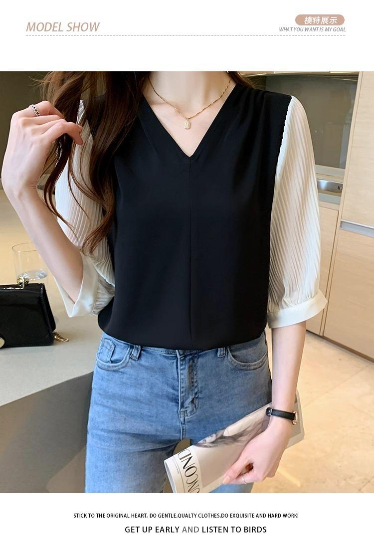 Camisa de Gasa para mujer ropa de verano 2024 nueva manga tres cuartos moda camisa pequeña top de manga corta ropa manga media moda