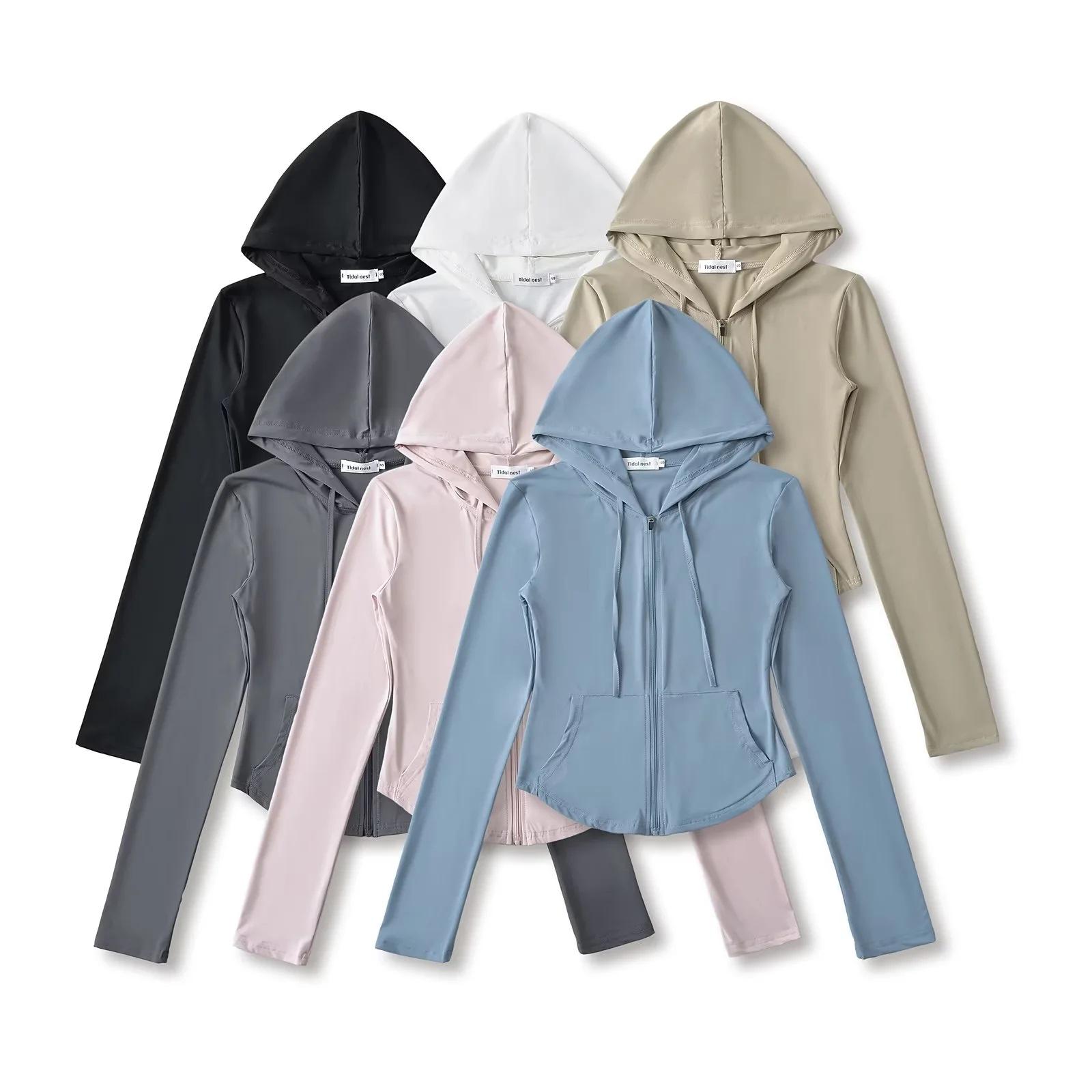 Chaqueta de manga larga para mujer, transpirable, fina, antiultravioleta, de corte ajustado, con protección solar, de hilo original, para verano