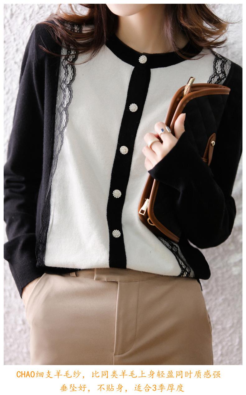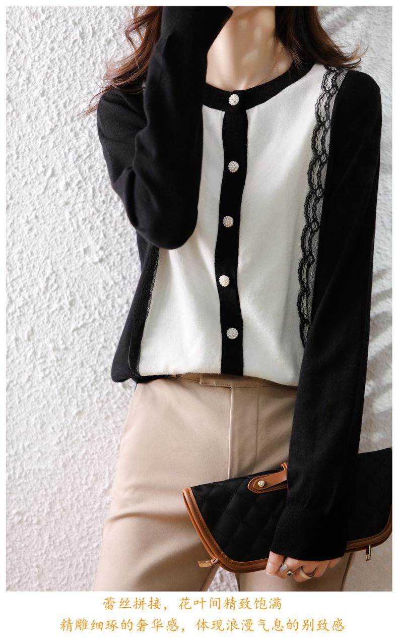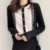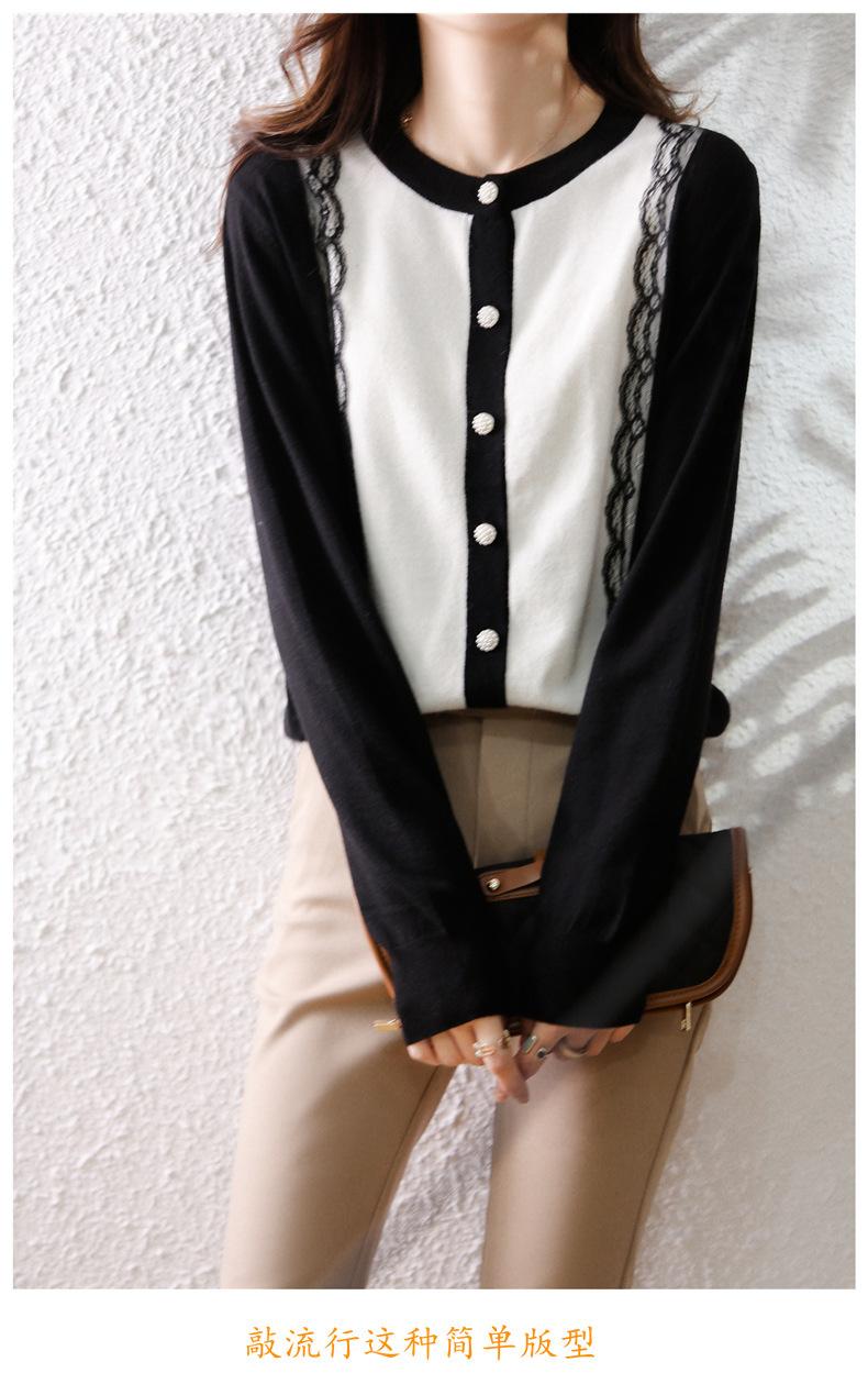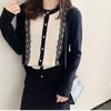 Blusa Chic Francesa para Mujer Primavera 2025 Cárdigan de Punto de Encaje a Color Contrastante Elegante Top de Manga Larga Chaqueta Estilo Pequeño Fragante